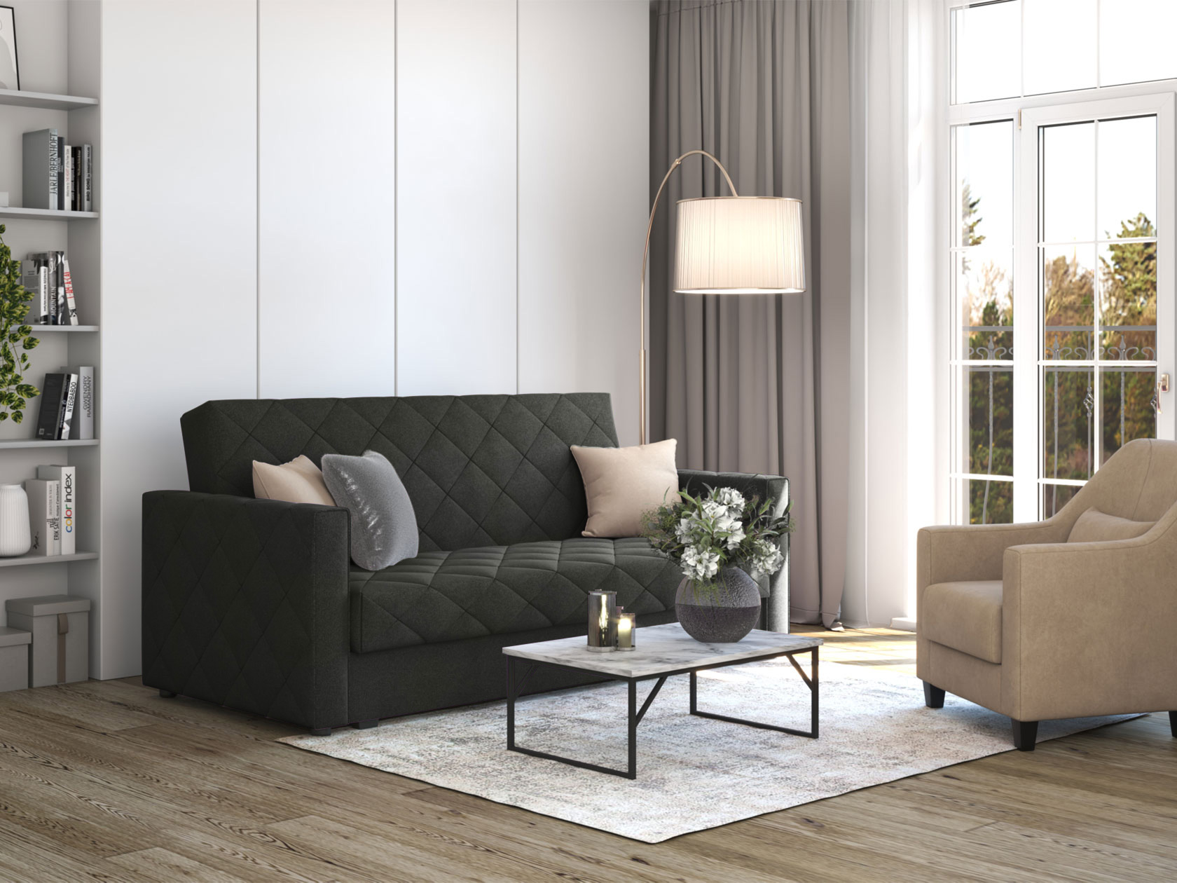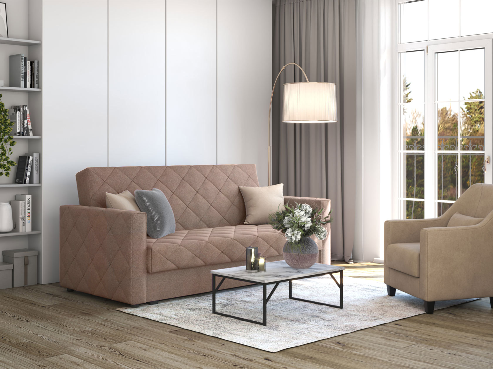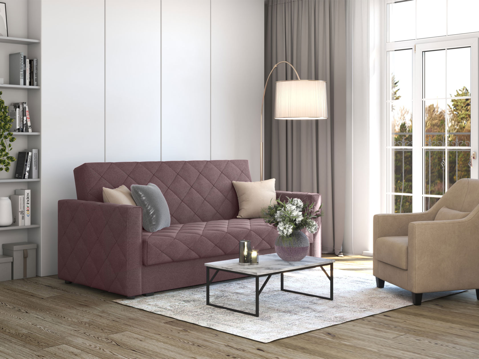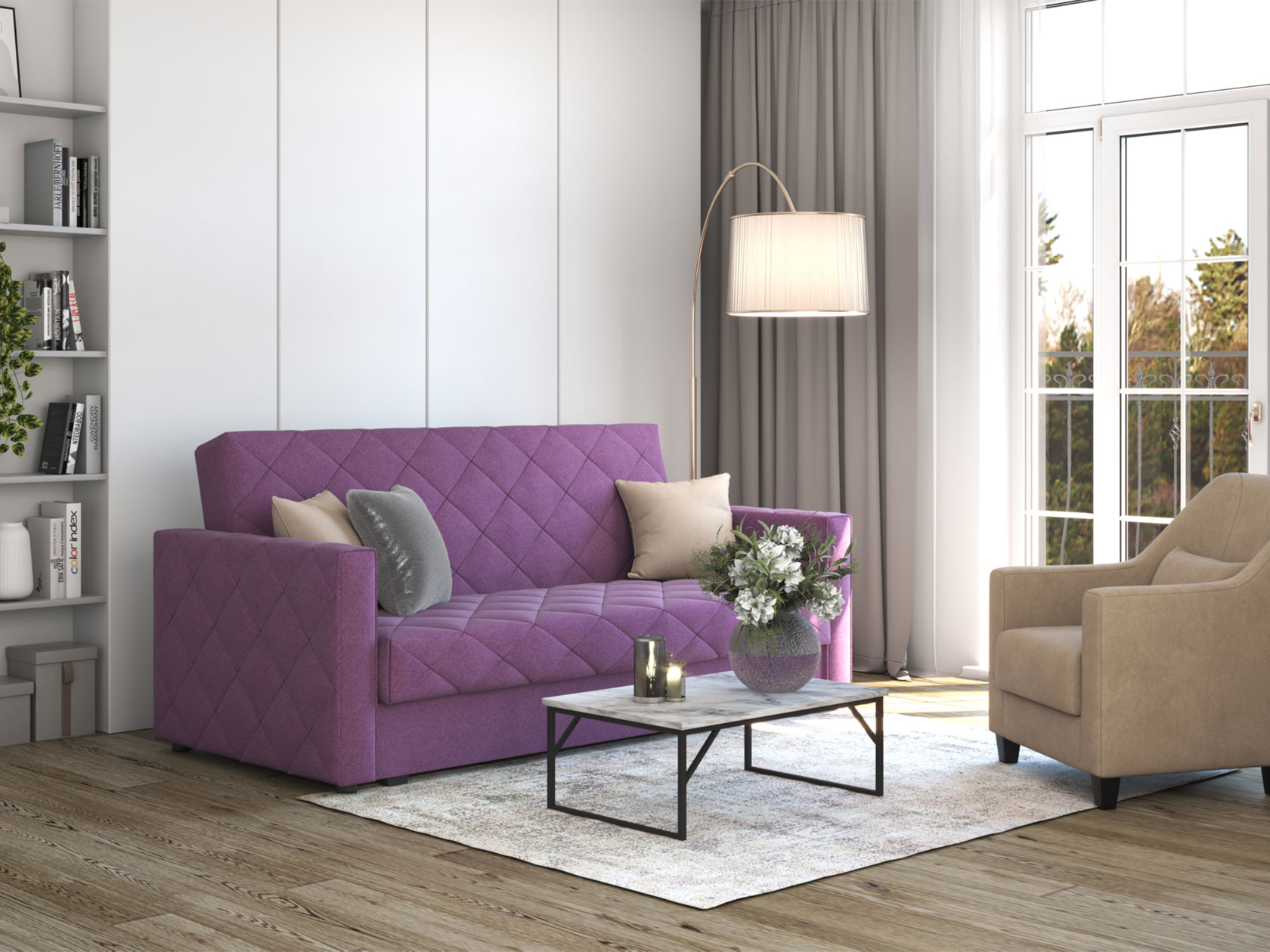 Прямой диван Бонни станет любимым местом отдыха. Три положения спинки позволяют комфортно расположиться сидя, полусидя или лежа. Ромбовидная стежка придает дивану особую привлекательность. Модель достаточно компактная, поэтому украсит даже небольшую гостиную.