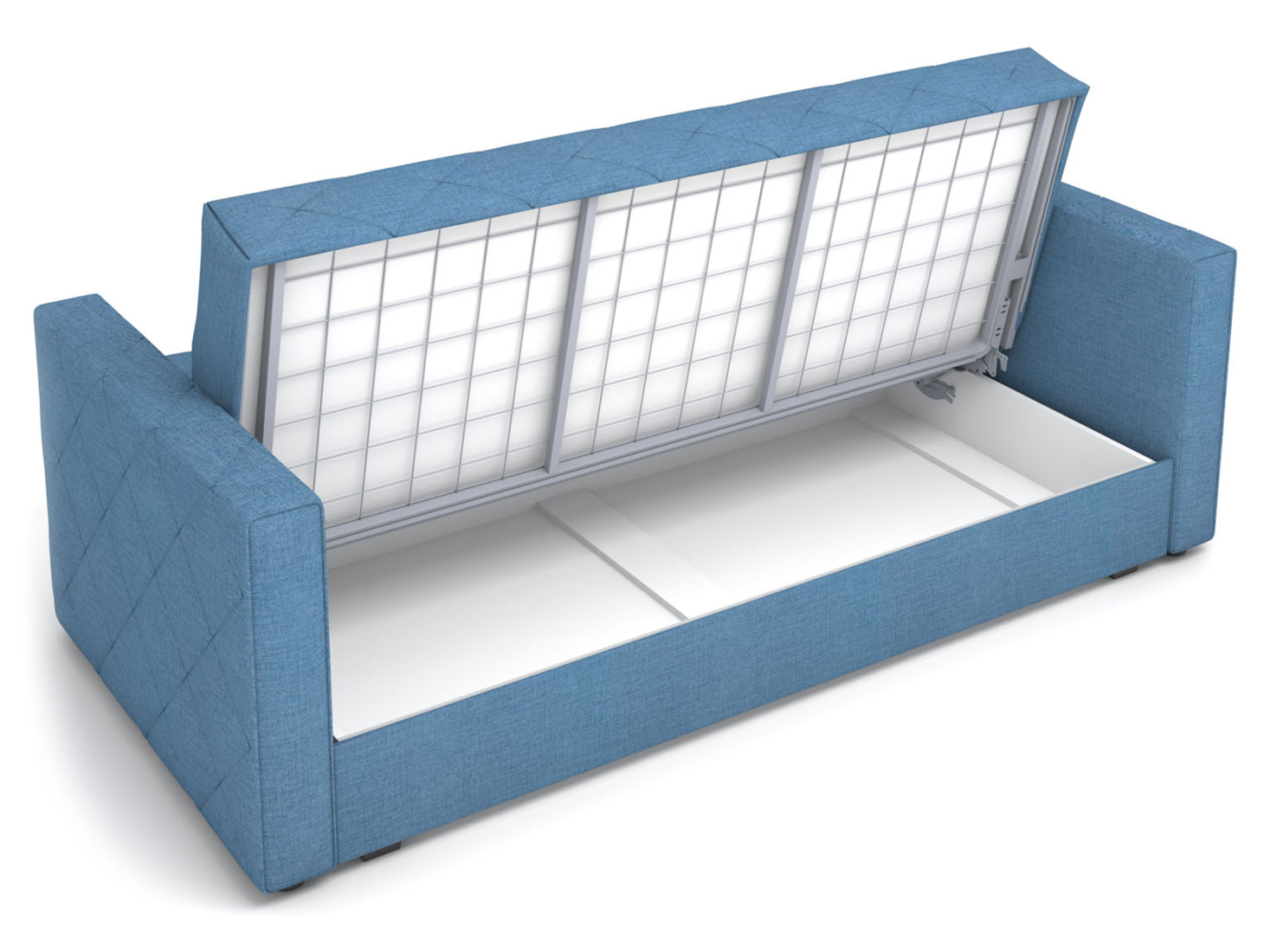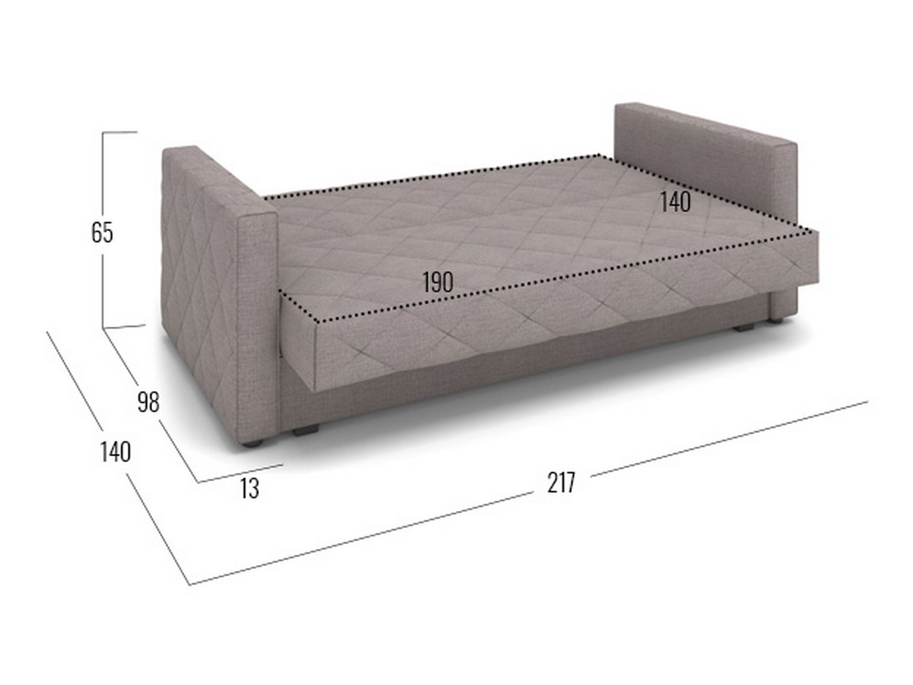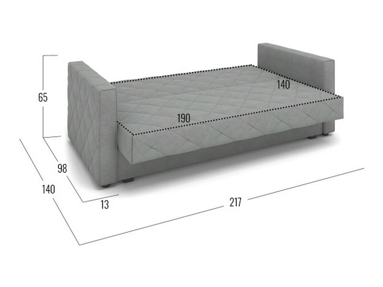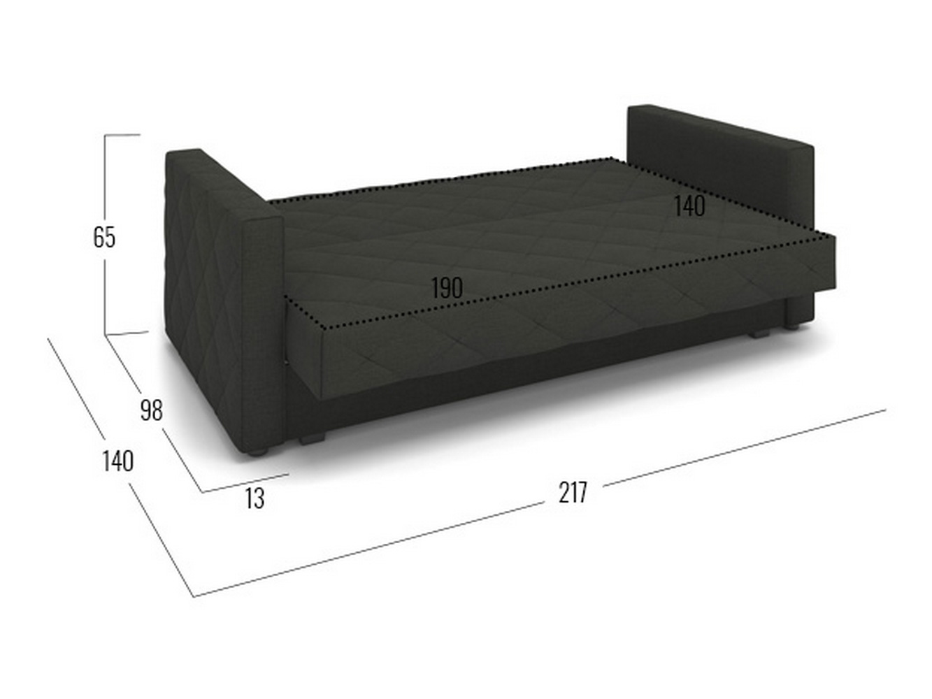 Механизм трансформации подходит для ежедневной многократной эксплуатации. Особенность дивана — идеально ровное спальное место с высоким анатомическим матрасом. Ламинированный бельевой ящик создает дополнительное место для хранения. Съемный чехол облегчает уход за обивкой.