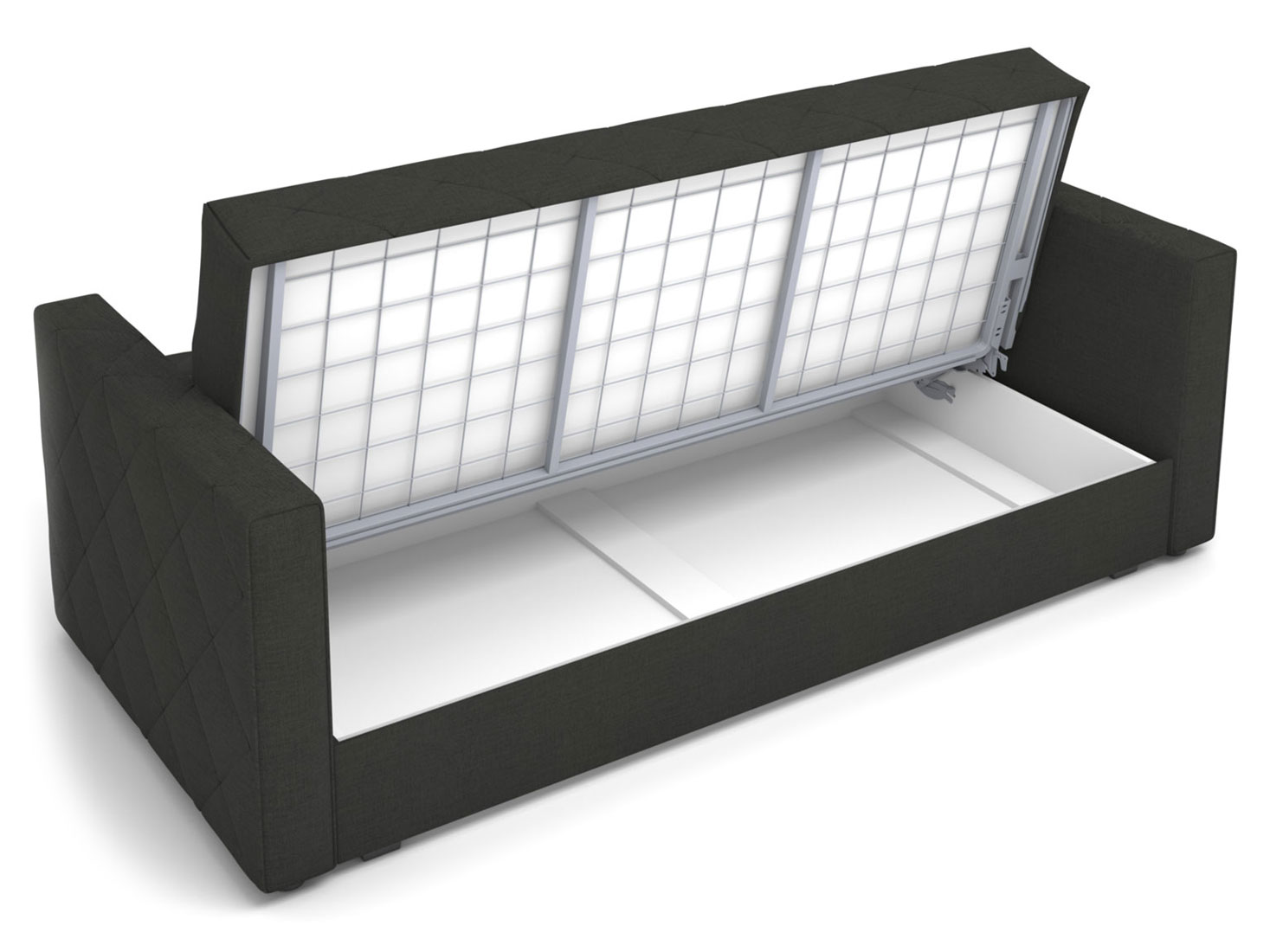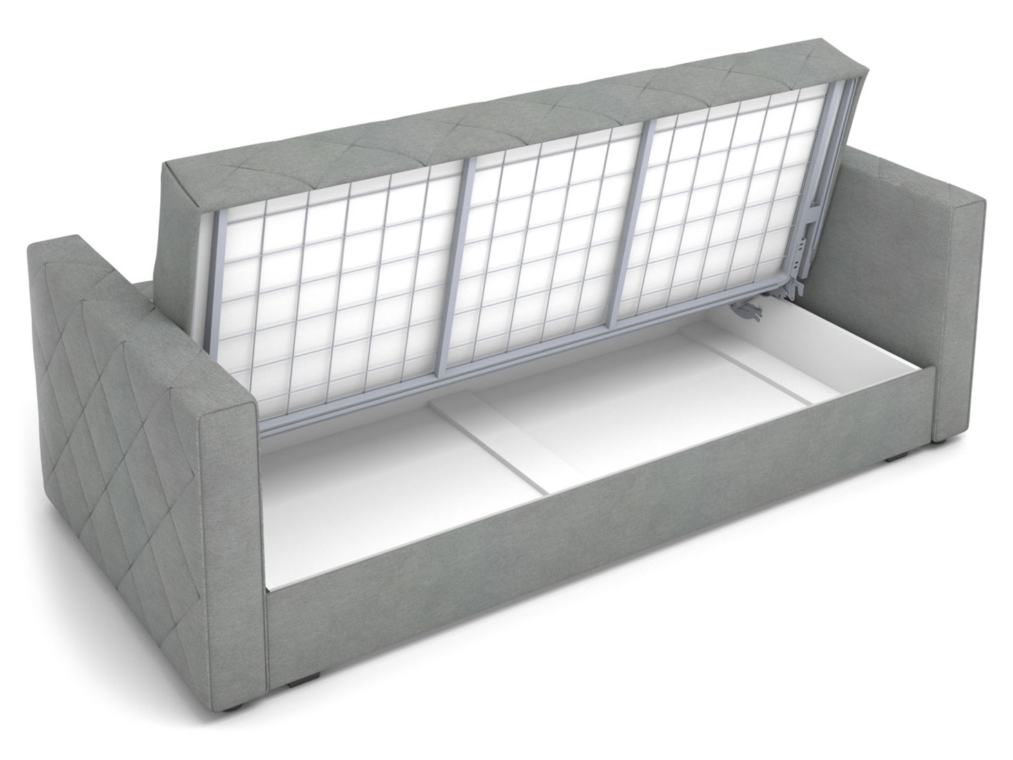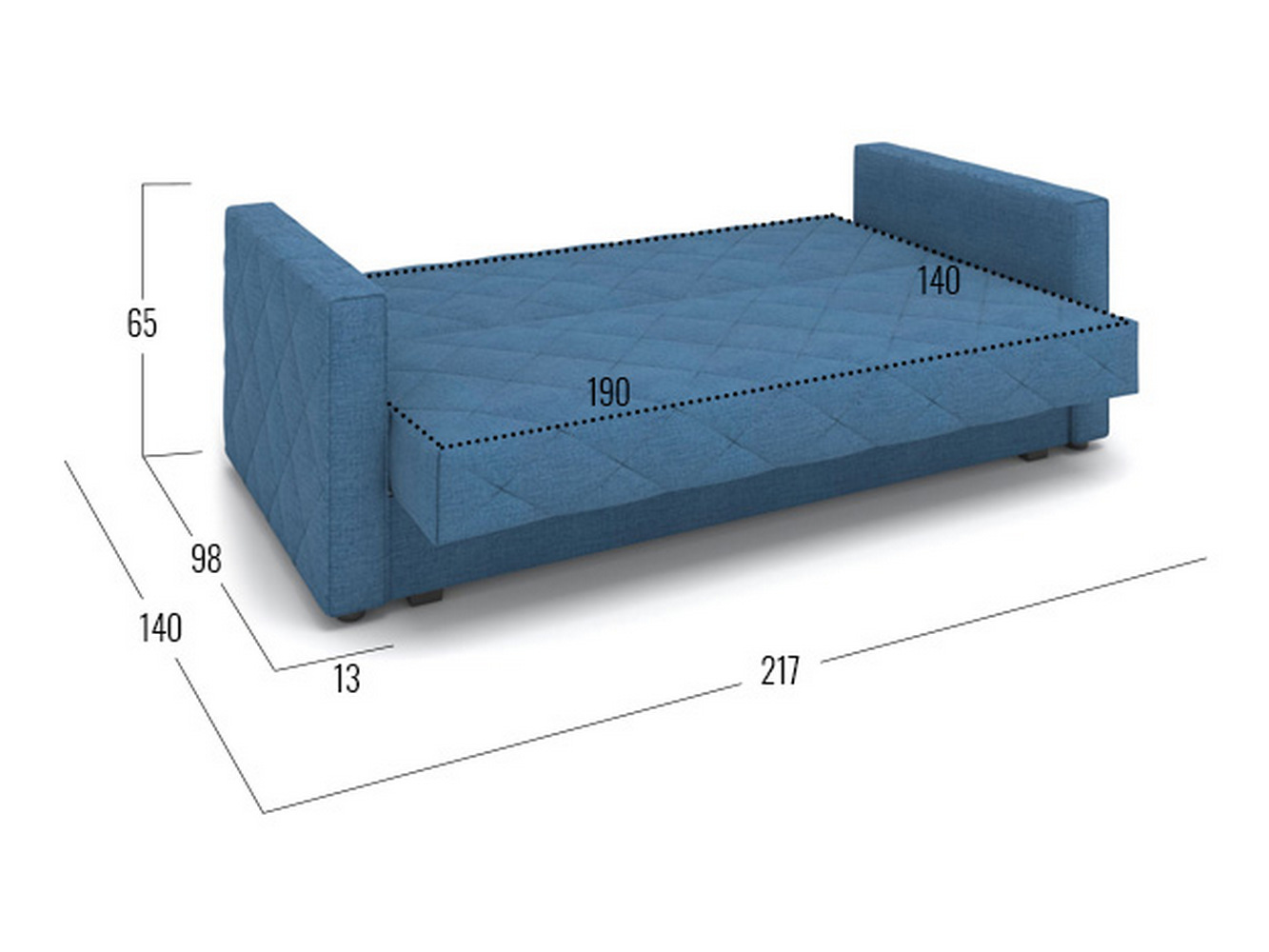 Механизм трансформации подходит для ежедневной многократной эксплуатации. Особенность дивана — идеально ровное спальное место с высоким анатомическим матрасом. Ламинированный бельевой ящик создает дополнительное место для хранения. Съемный чехол облегчает уход за обивкой.