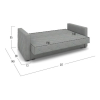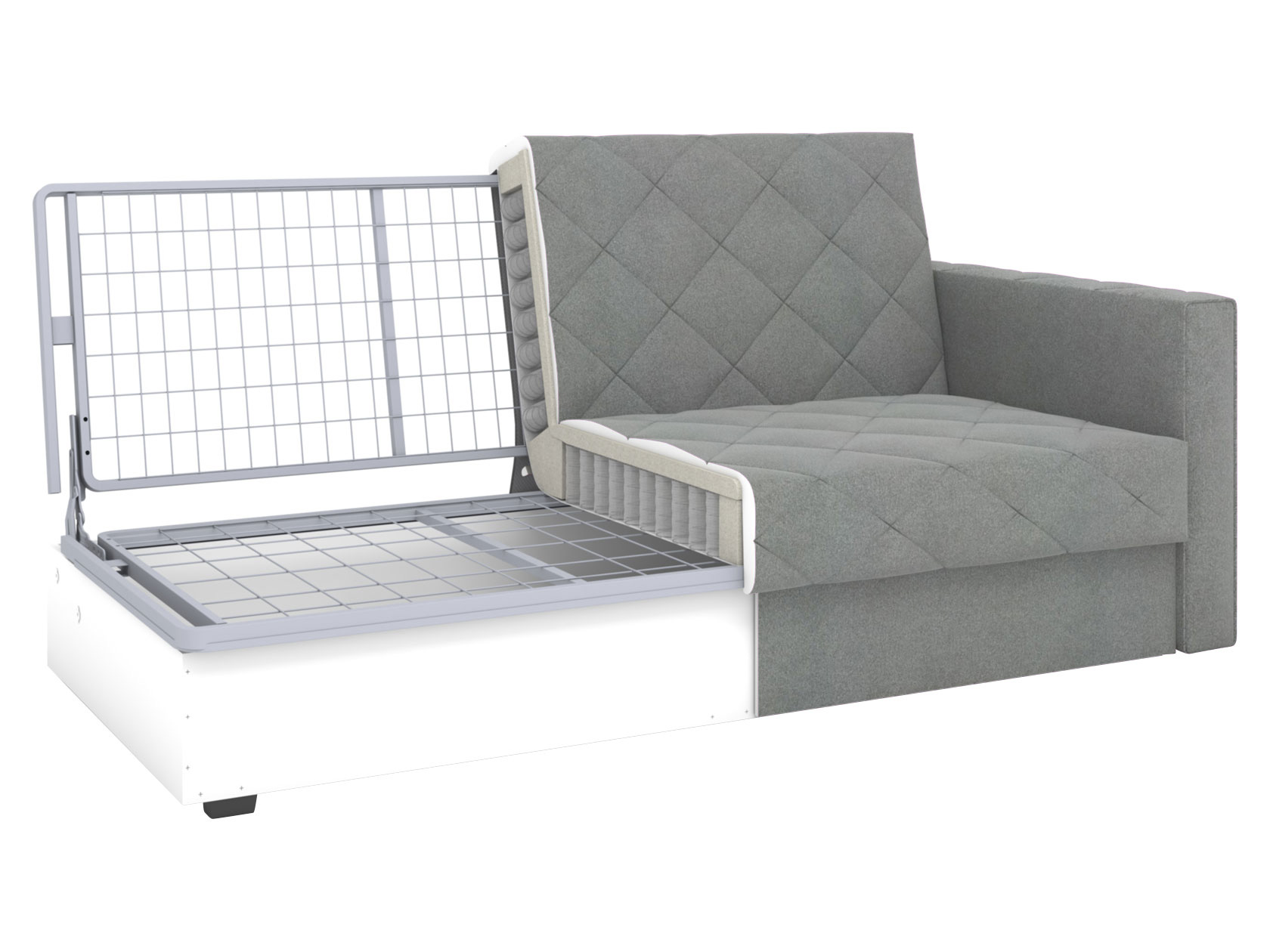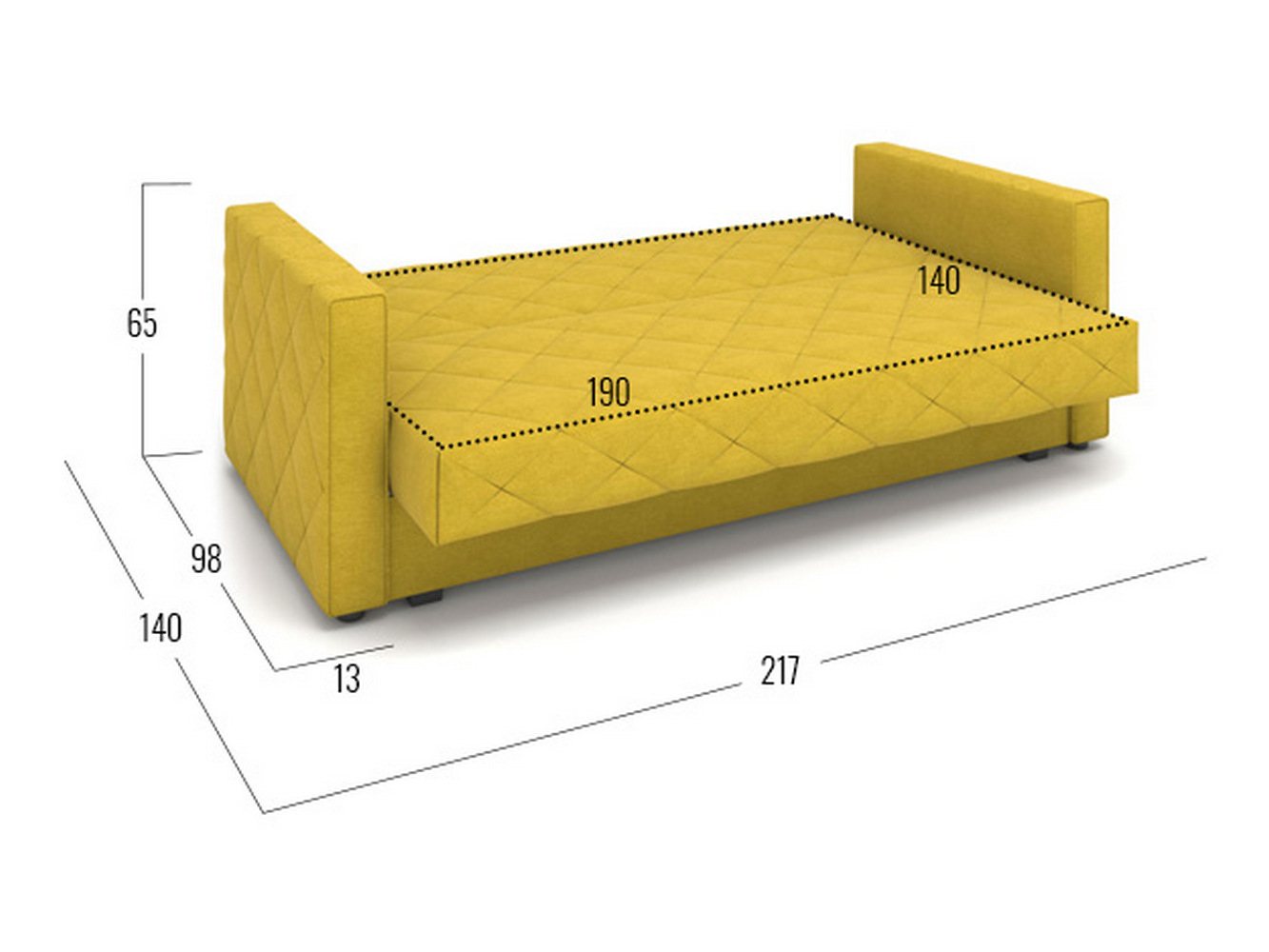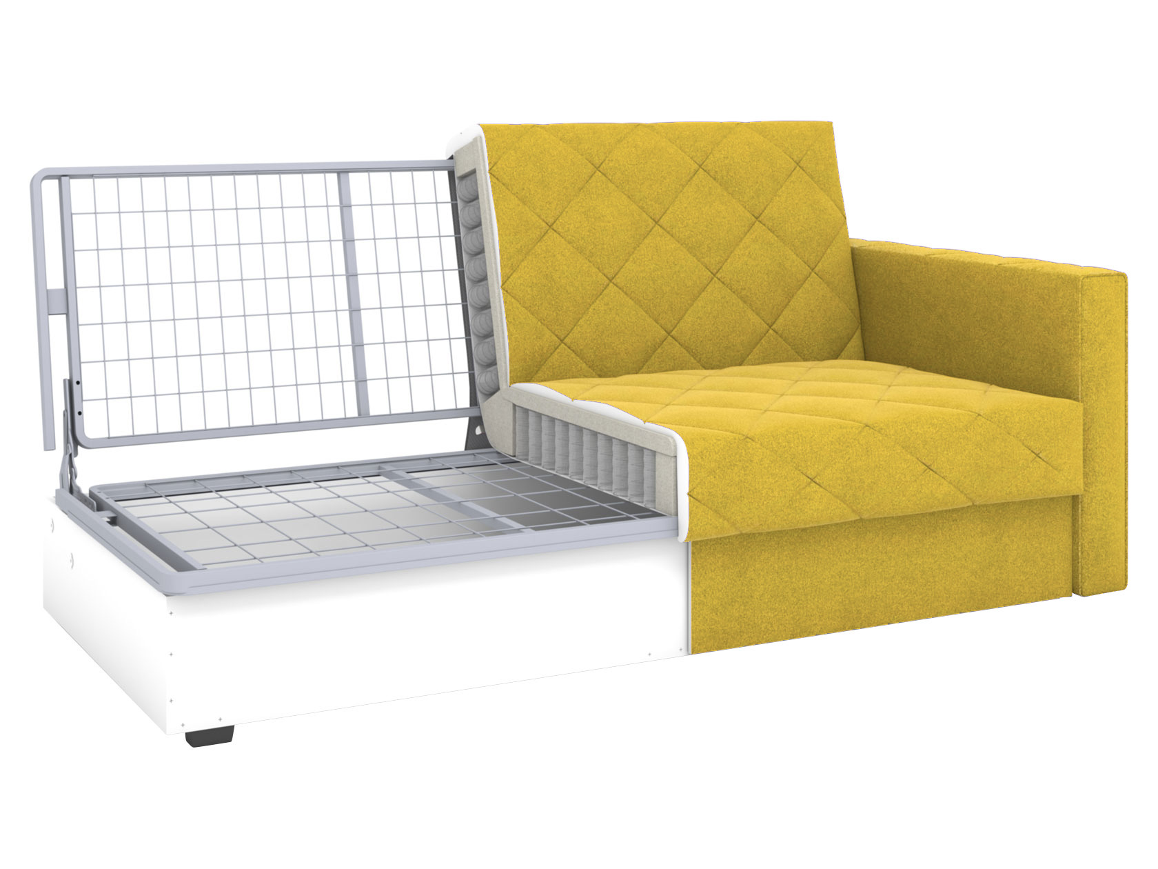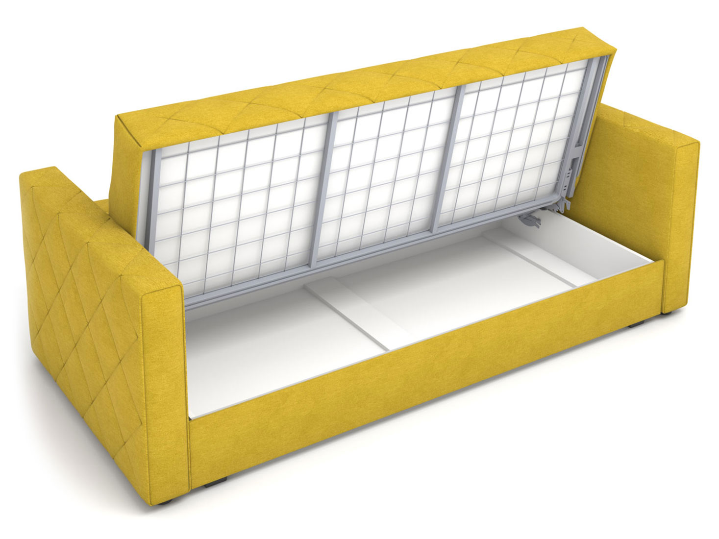 Механизм трансформации подходит для ежедневной многократной эксплуатации. Особенность дивана — идеально ровное спальное место с высоким анатомическим матрасом. Ламинированный бельевой ящик создает дополнительное место для хранения. Съемный чехол облегчает уход за обивкой.