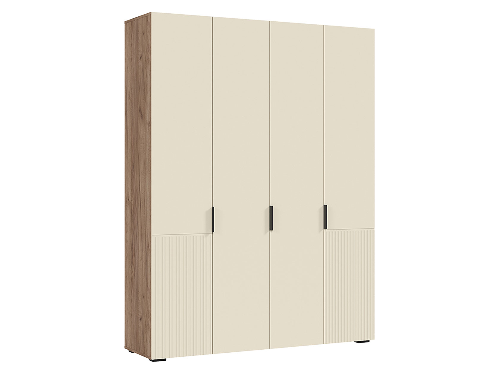 Распашной шкаф Соната 4 двери организует вместительную систему хранения, которая позволит развесить одежду на плечиках и сложить всё необходимое на полках. Антресольная секция подойдет для объемных коробок и домашнего текстиля. Гладкие матовые фасады дополнены стильной фрезеровкой и контрастными ручками. Такой дизайн актуально смотрится в сочетании с разными стилями меблировки.
