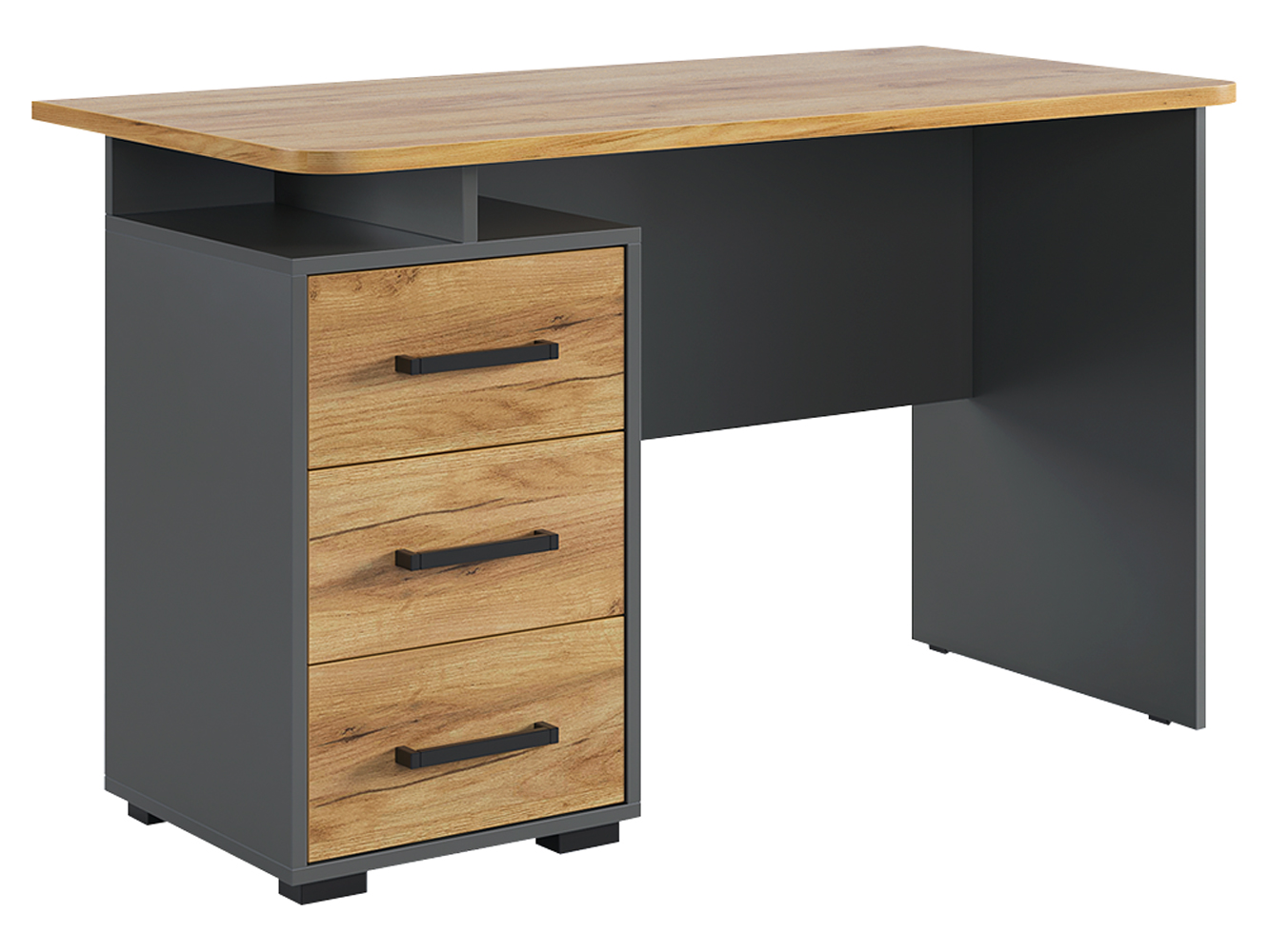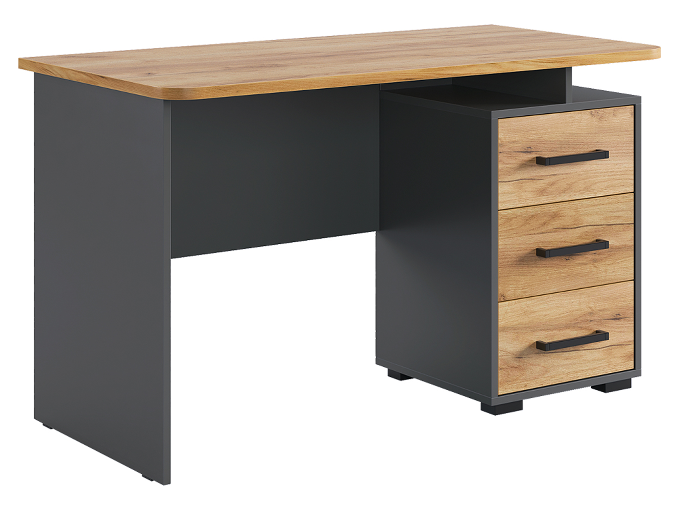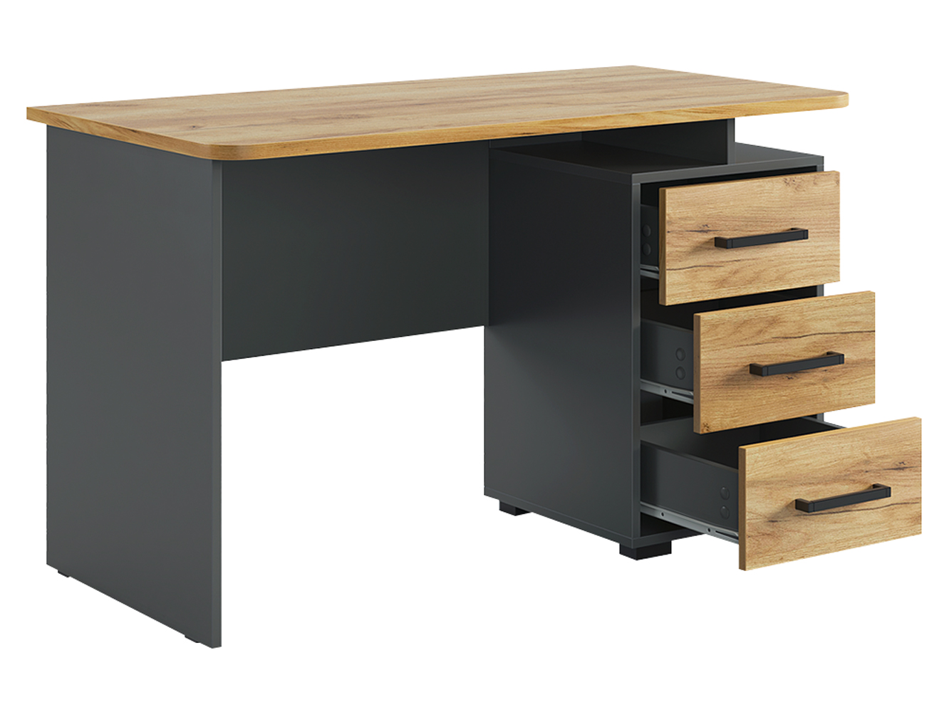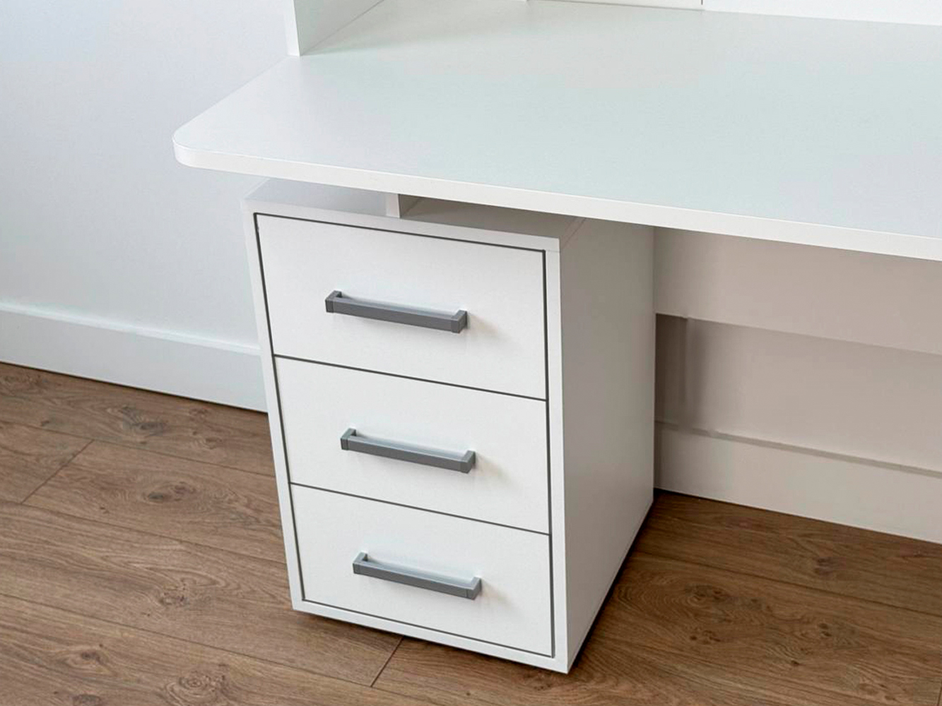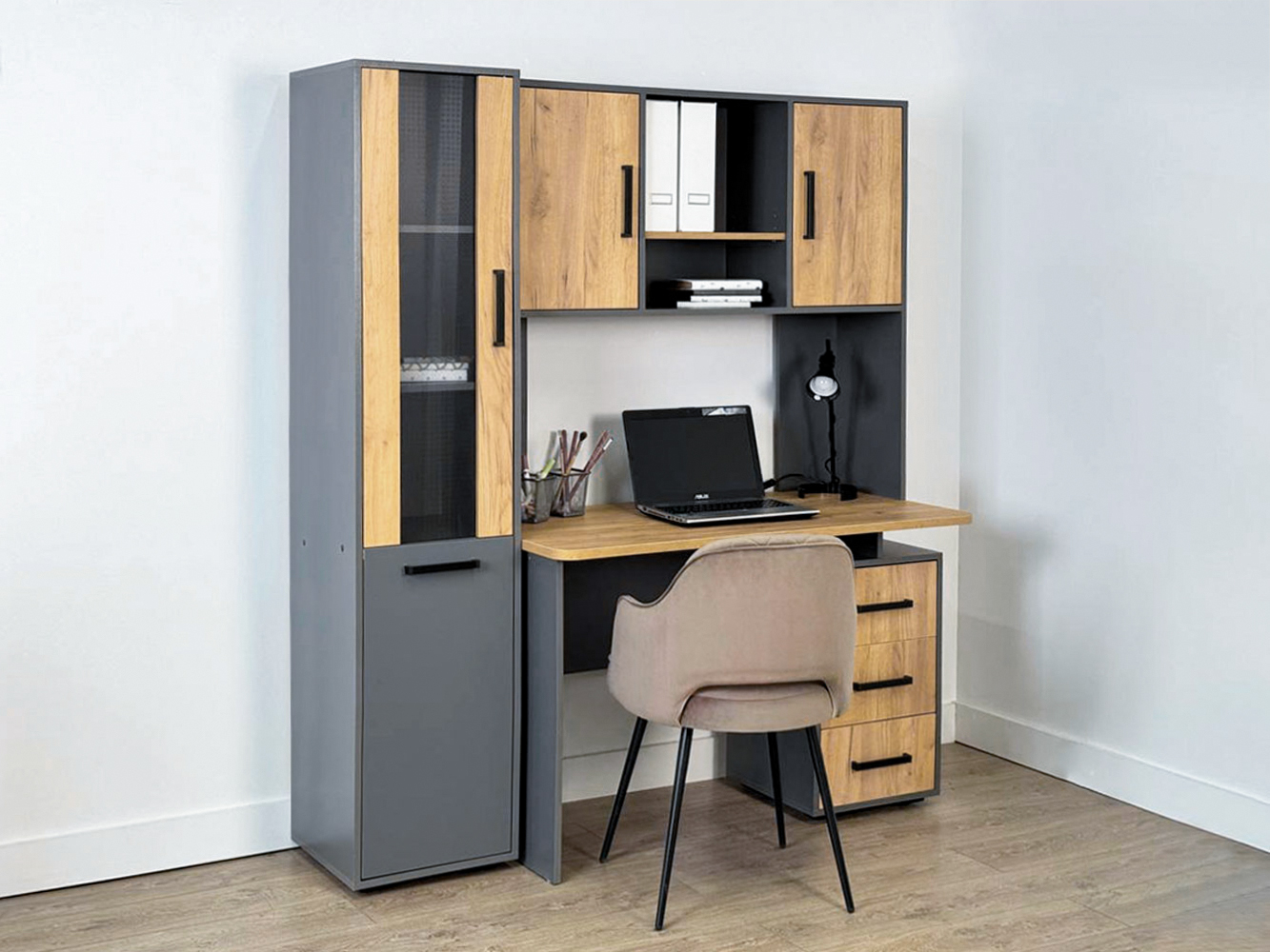 Компьютерный стол Лайт-2 станет незаменимым элементом рабочего пространства дома и в офисе. Просторная столешница обеспечит место для ноутбука или стационарного компьютера, а три выдвижных ящика позволят поддерживать порядок в документах и канцелярии. Сочетание светлых матовых фасадов с фактурой дерева добавляет интерьеру нотки уюта и создает визуальную легкость.