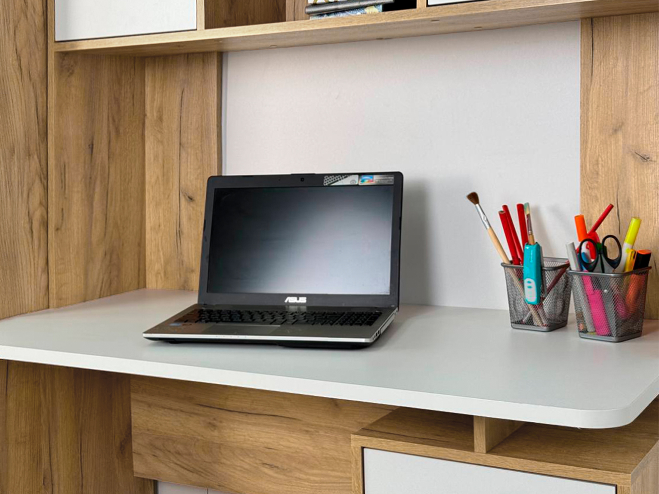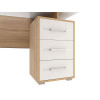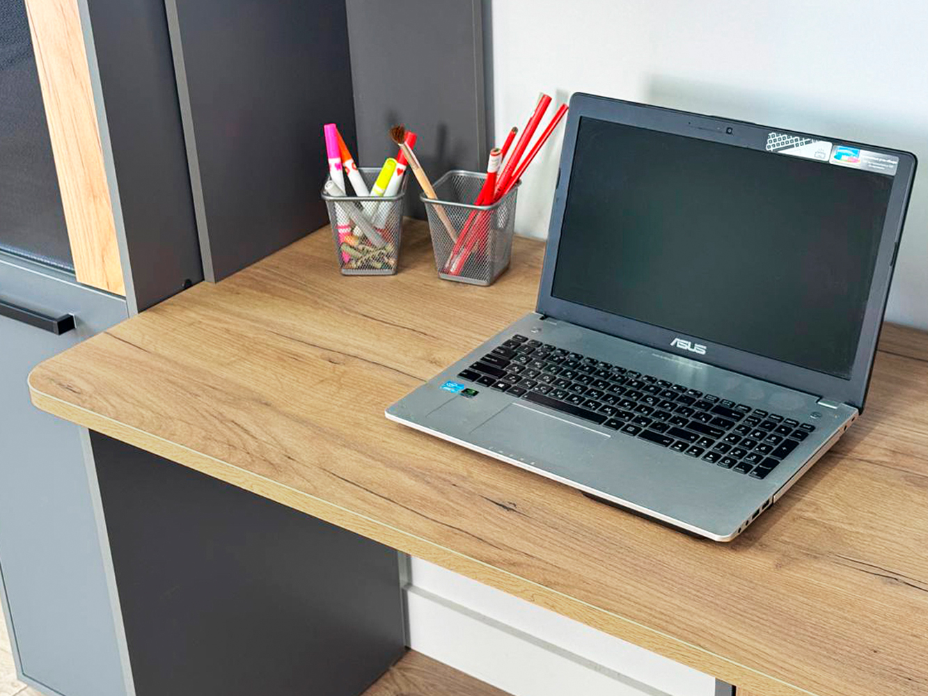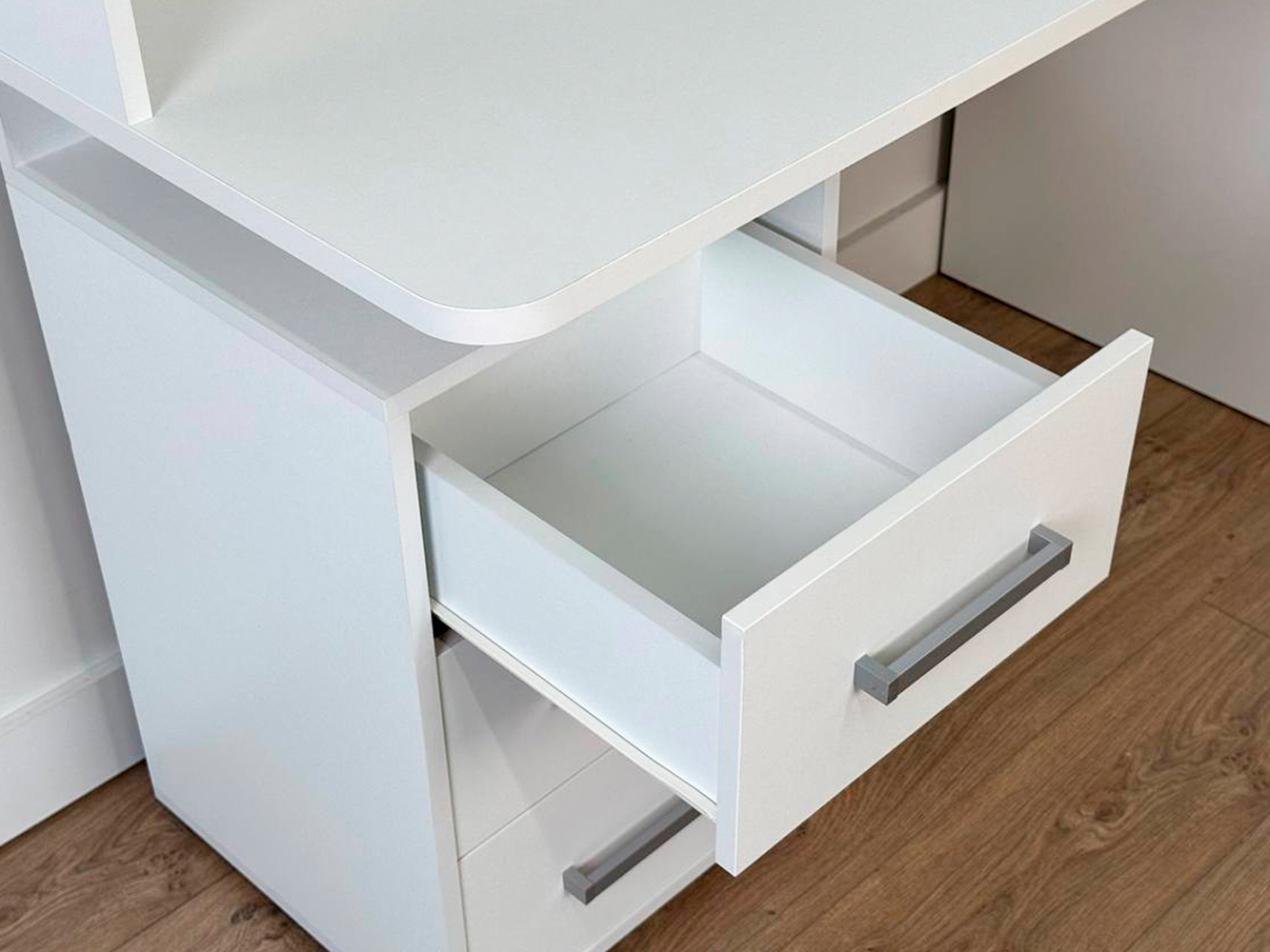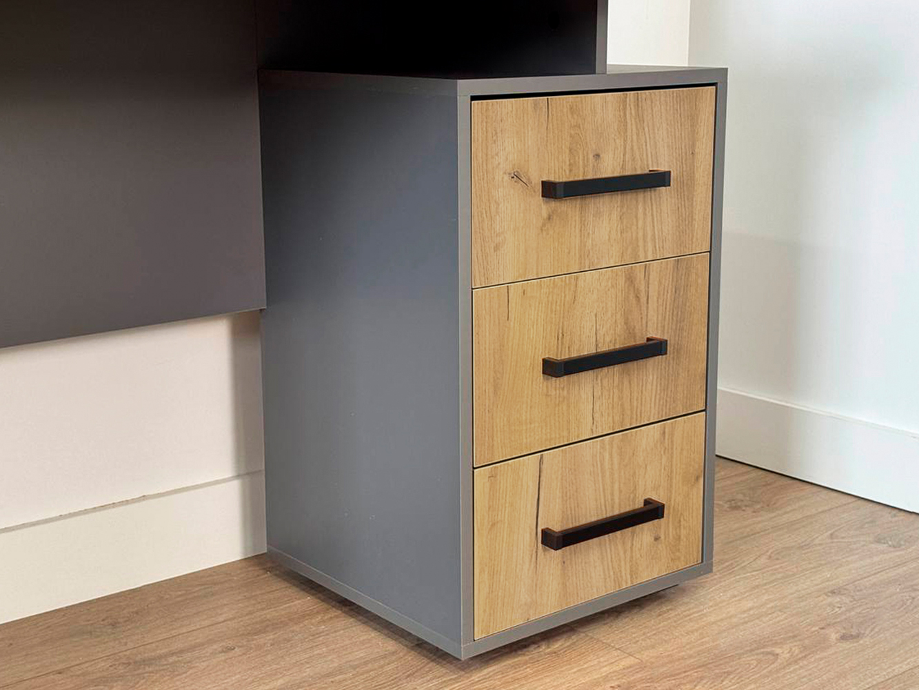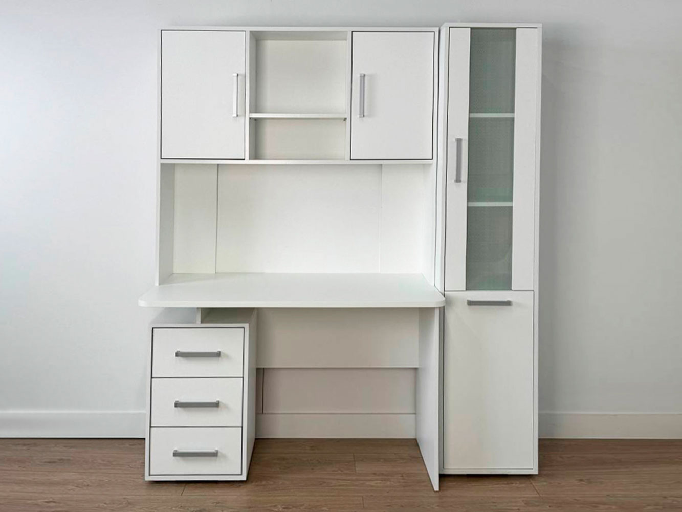 Компьютерный стол Лайт-2 станет незаменимым элементом рабочего пространства дома и в офисе. Просторная столешница обеспечит место для ноутбука или стационарного компьютера, а три выдвижных ящика позволят поддерживать порядок в документах и канцелярии. Сочетание светлых матовых фасадов с фактурой дерева добавляет интерьеру нотки уюта и создает визуальную легкость.