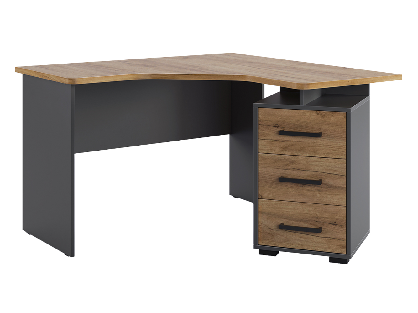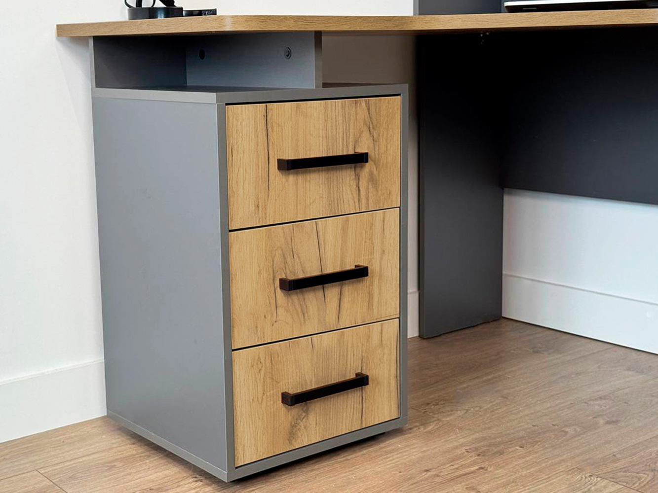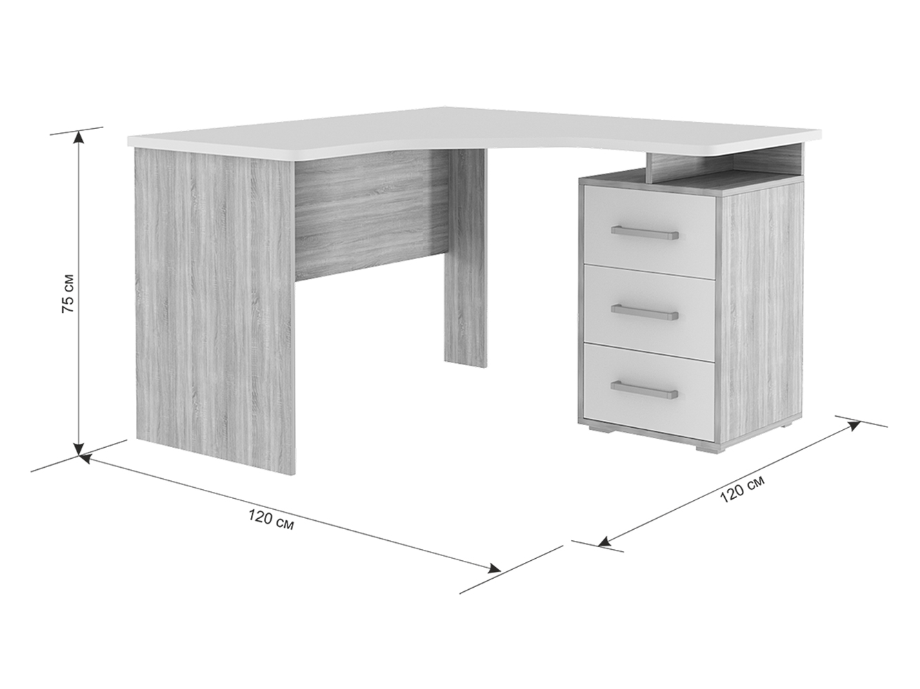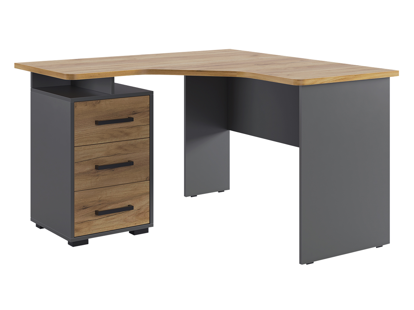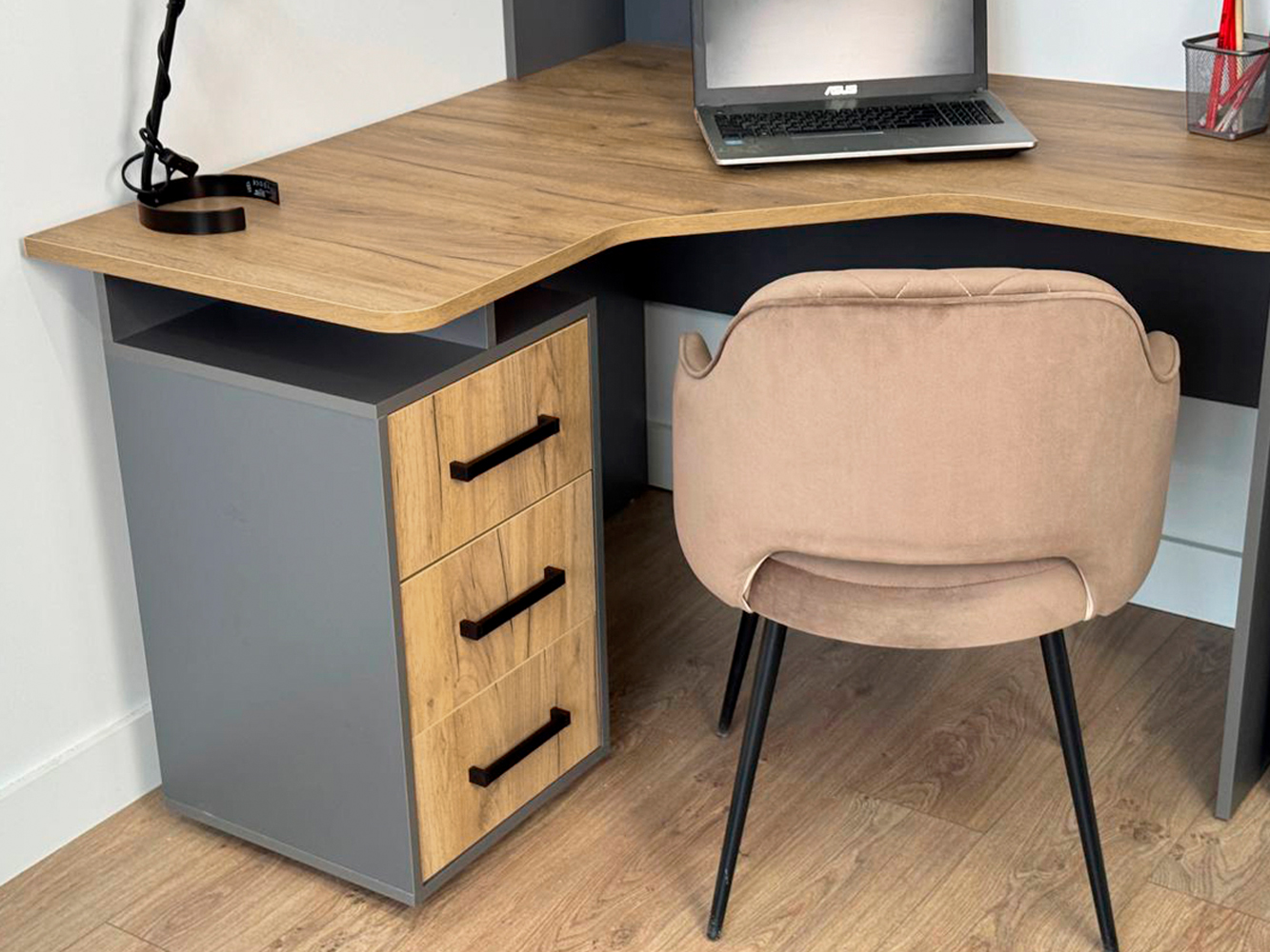 Письменный стол Лайт-2У — практичное и стильное решение для домашнего кабинета или офиса. Угловая конструкция экономит место и позволяет адаптировать модель даже в небольшом пространстве. Тумба с выдвижными ящиками и открытой нишей прямо под столешницей позволяет организовать аккуратное хранение документов и канцелярии. Лаконичный дизайн с сочетанием светлых фасадов и фактуры дерева гармонично смотрится в большинстве современных интерьеров.