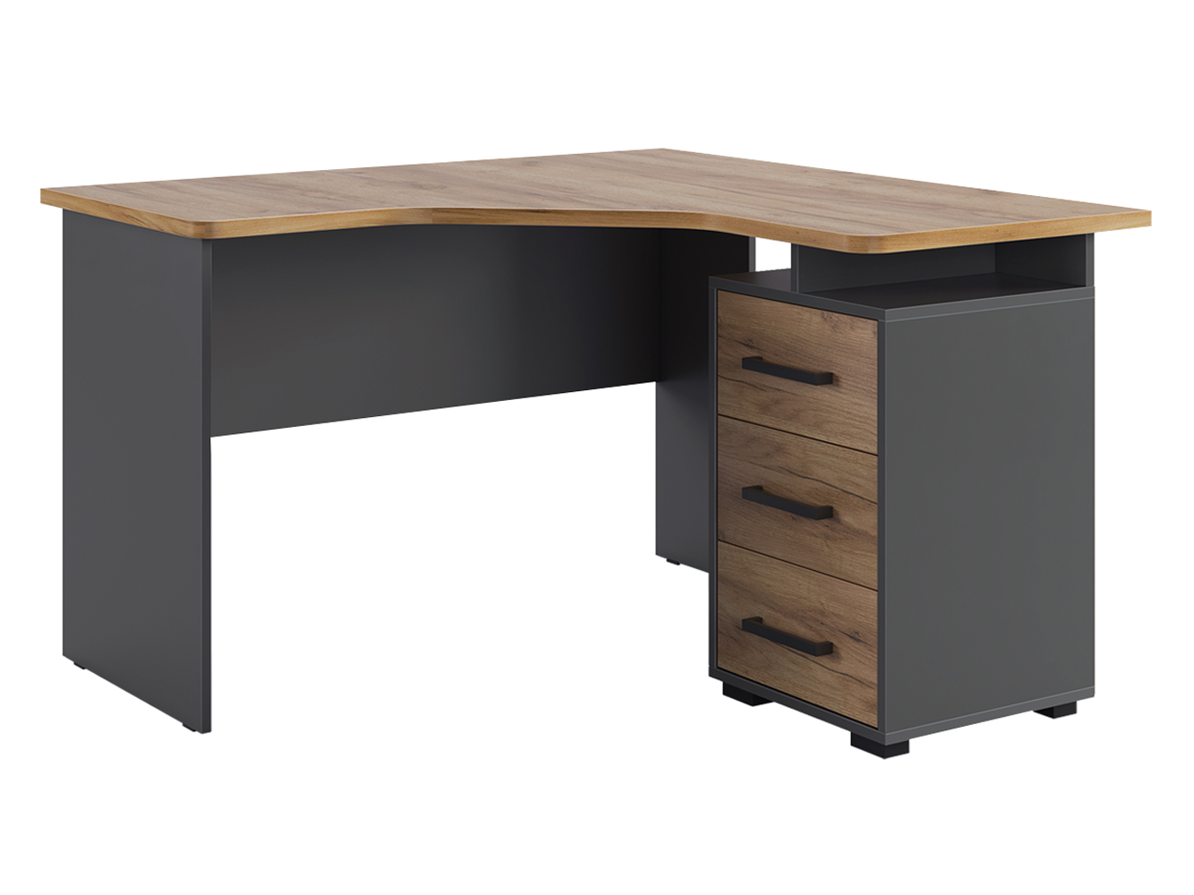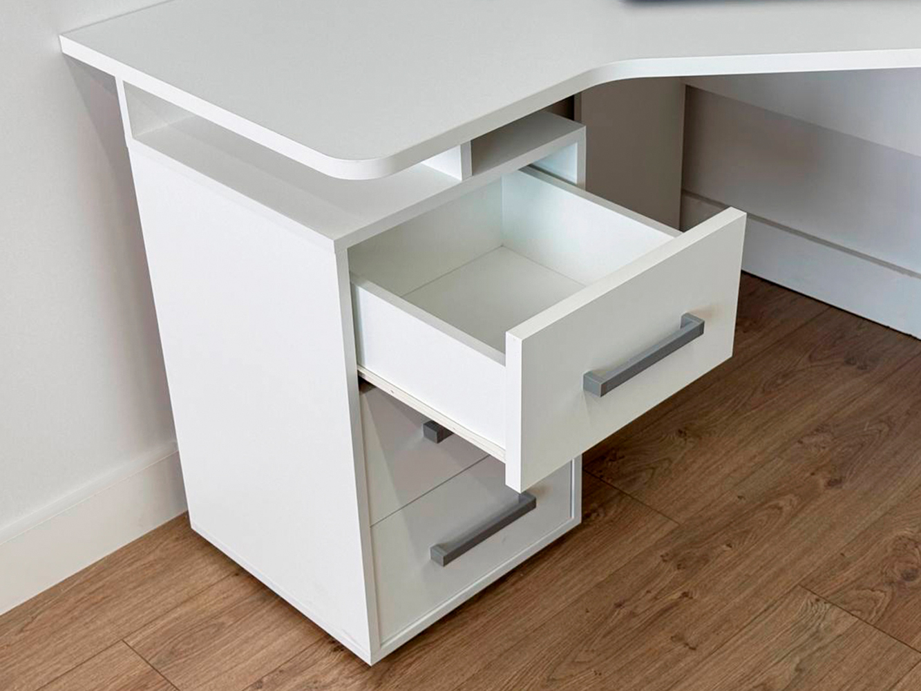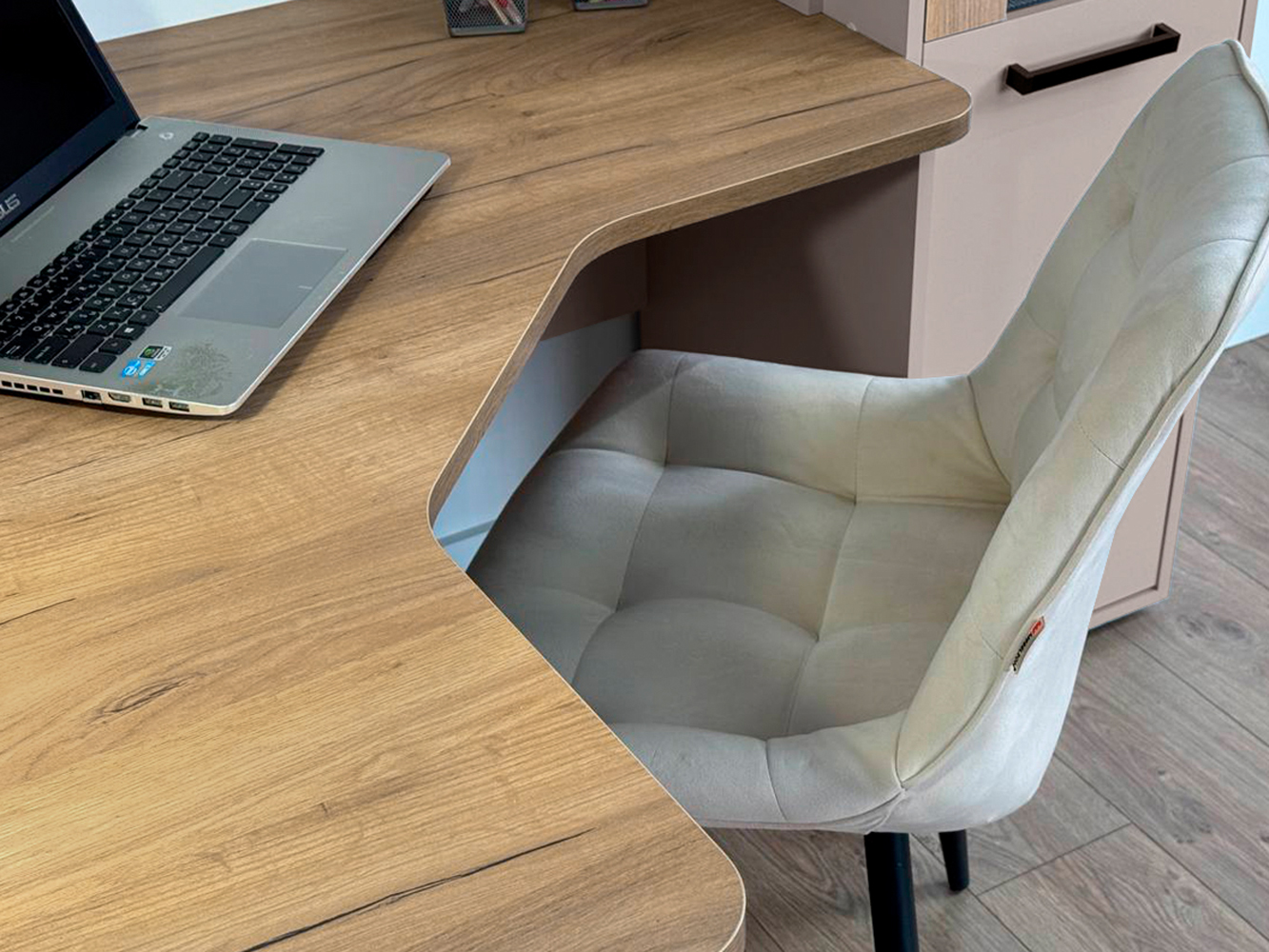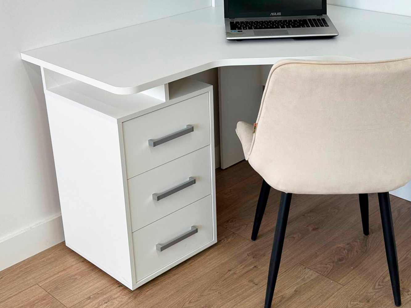 Письменный стол Лайт-2У — практичное и стильное решение для домашнего кабинета или офиса. Угловая конструкция экономит место и позволяет адаптировать модель даже в небольшом пространстве. Тумба с выдвижными ящиками и открытой нишей прямо под столешницей позволяет организовать аккуратное хранение документов и канцелярии. Лаконичный дизайн с сочетанием светлых фасадов и фактуры дерева гармонично смотрится в большинстве современных интерьеров.