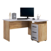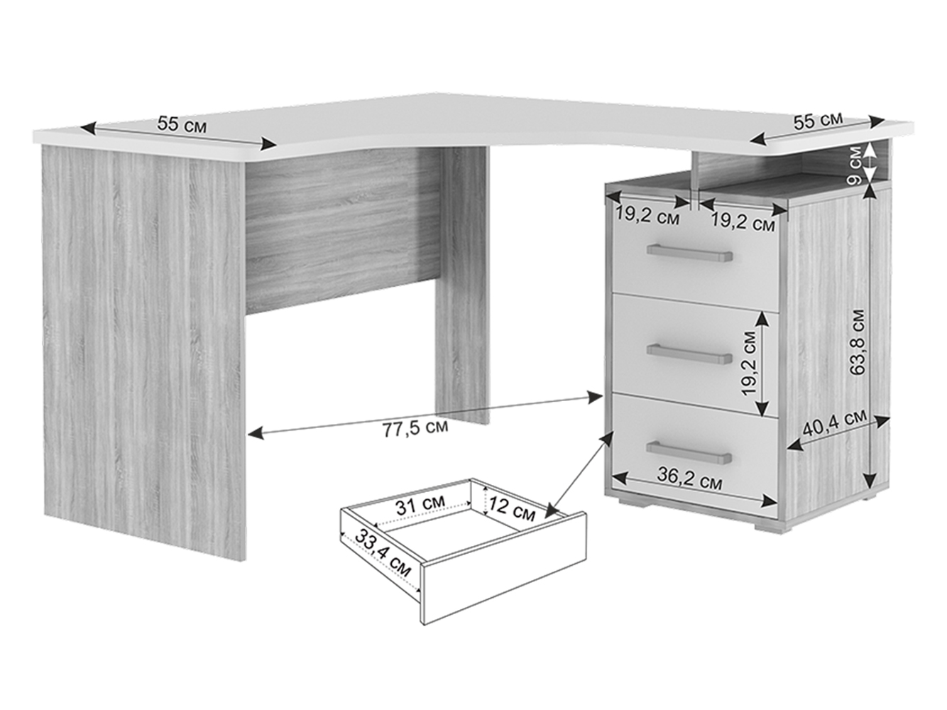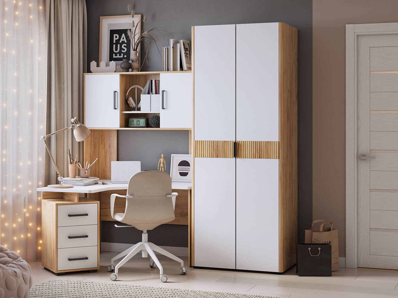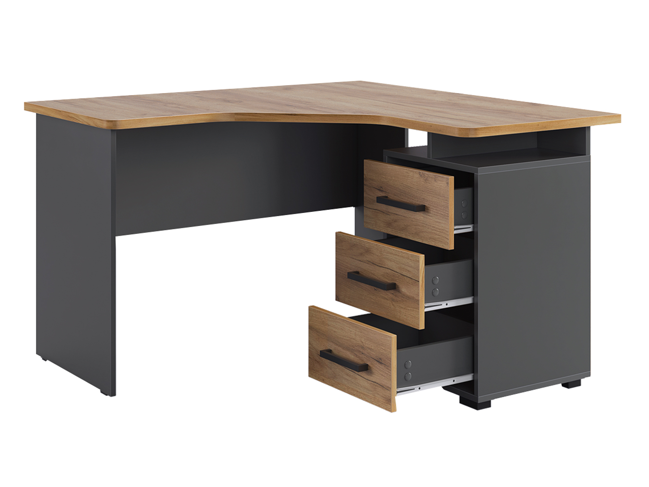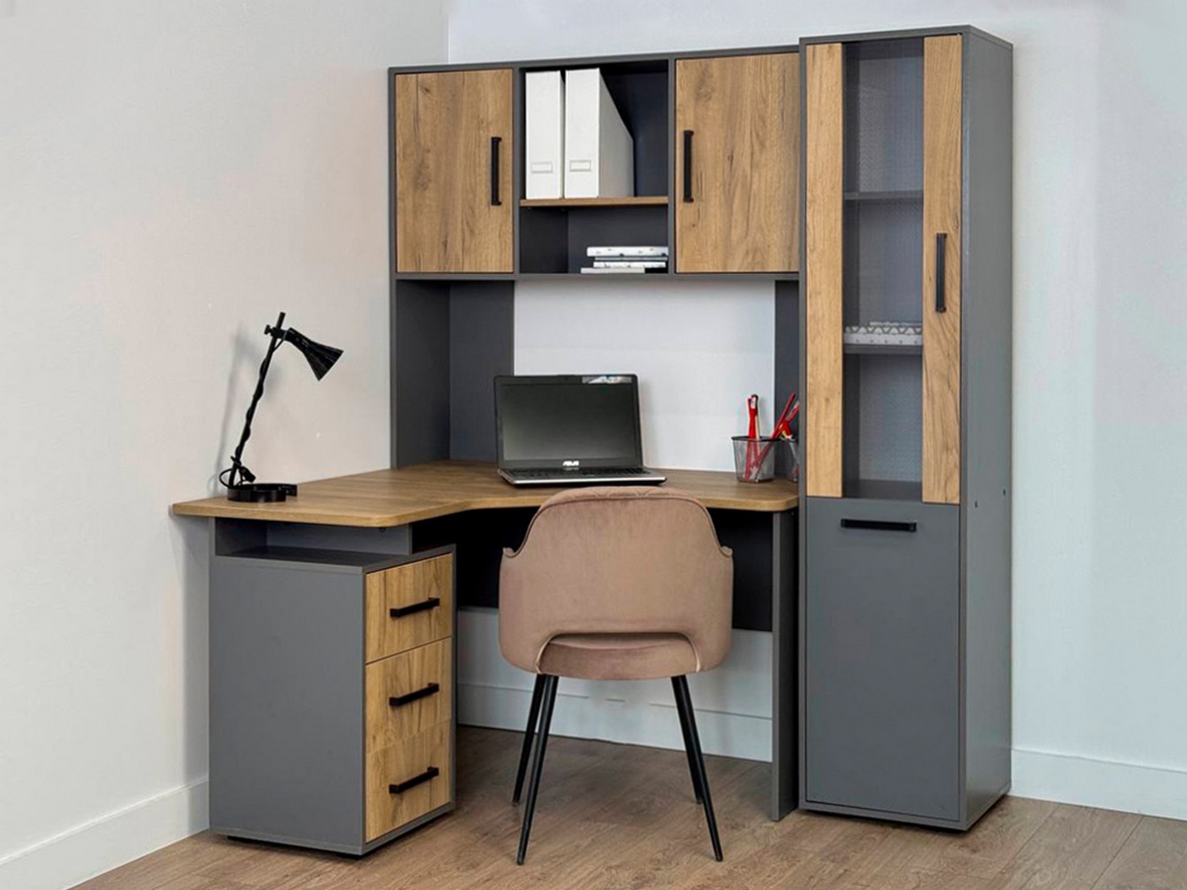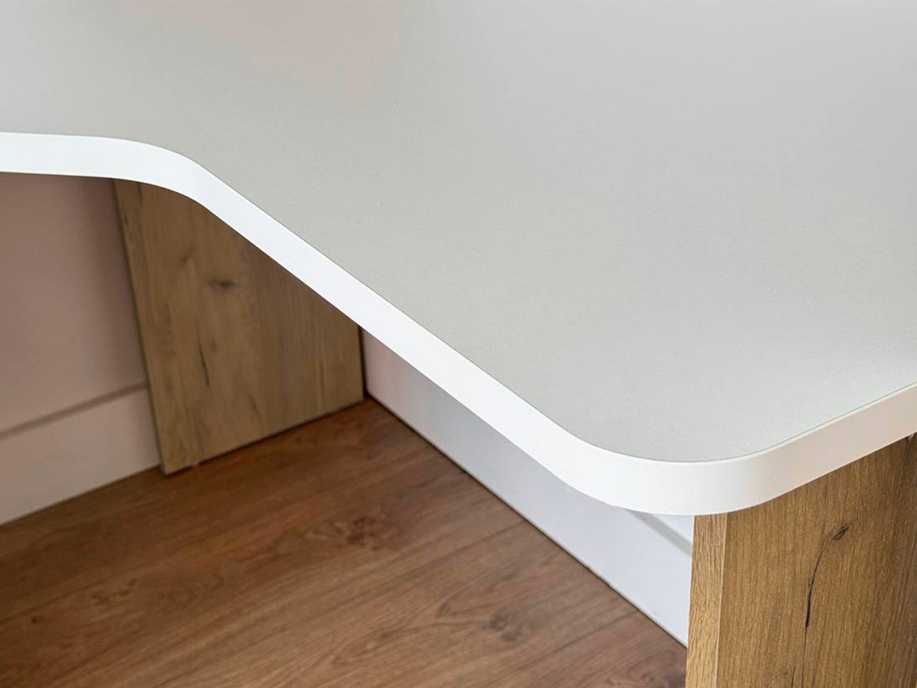Письменный стол Лайт-2У — практичное и стильное решение для домашнего кабинета или офиса. Угловая конструкция экономит место и позволяет адаптировать модель даже в небольшом пространстве. Тумба с выдвижными ящиками и открытой нишей прямо под столешницей позволяет организовать аккуратное хранение документов и канцелярии. Лаконичный дизайн с сочетанием светлых фасадов и фактуры дерева гармонично смотрится в большинстве современных интерьеров.