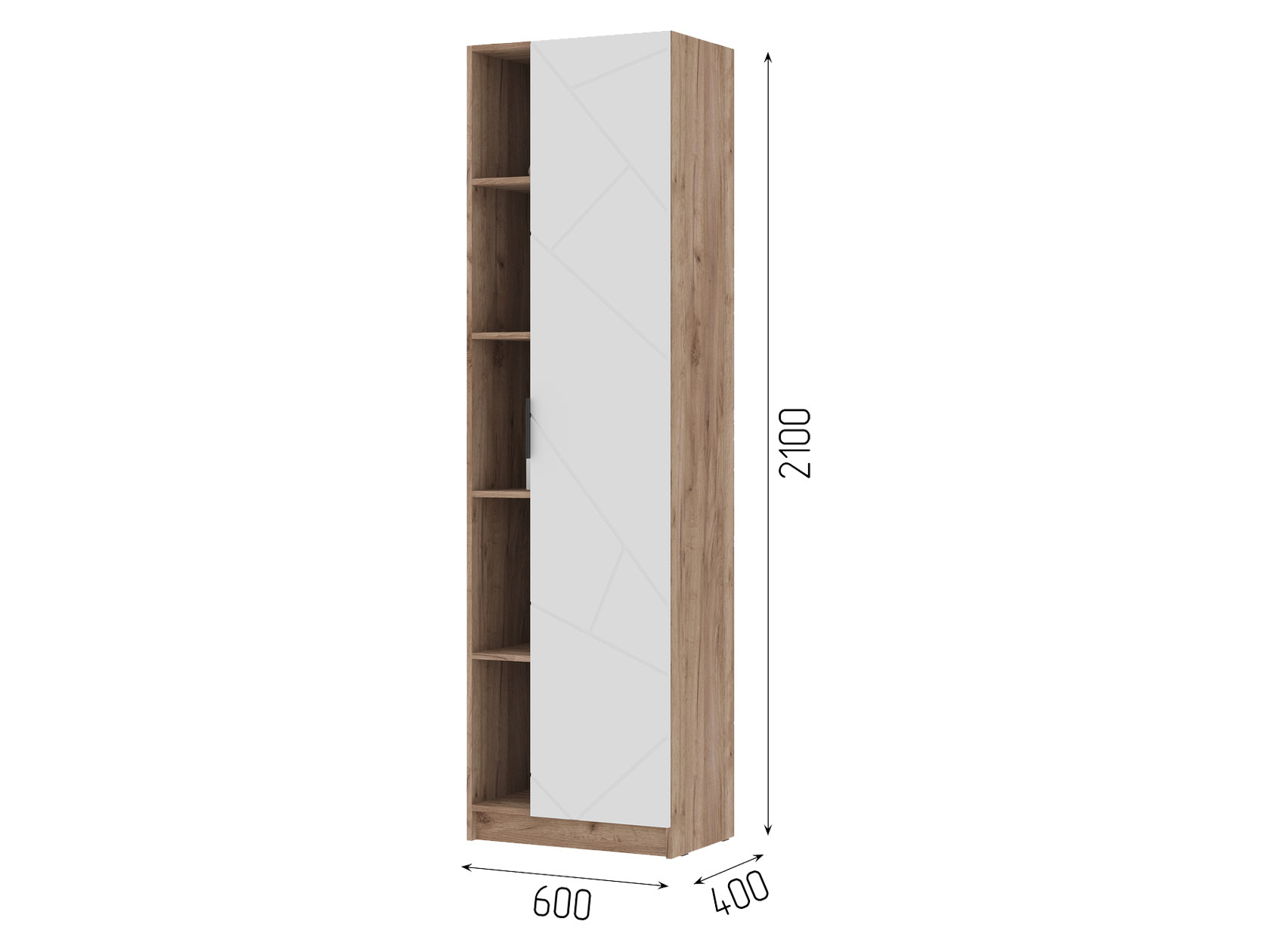 Распашной шкаф Орегон Мульти организует удобное хранение в комнате или прихожей. Открытые ниши подходят для книг или декора, который придает интерьеру индивидуальность. За распашной дверцей можно спрятать личные вещи. Ассиметричный узор на фасаде и сочетание матовой поверхности с текстурой дерева создают акценты меблировки.