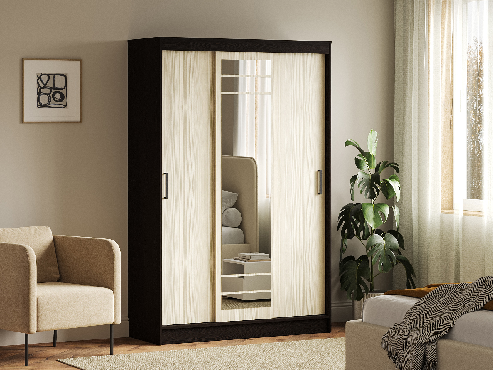 Шкаф-купе Тео — практичный вариант для хранения, который гармонично дополнит современный интерьер. Раздвижные дверцы не требуют дополнительного пространства при открывании, поэтому модель добавит функционала даже комнате, где площадь ограничена. Внутри можно с комфортом разместить одежду на плечиках и в сложенном виде. Высокое зеркало позволит рассмотреть свое отражение в полный рост.