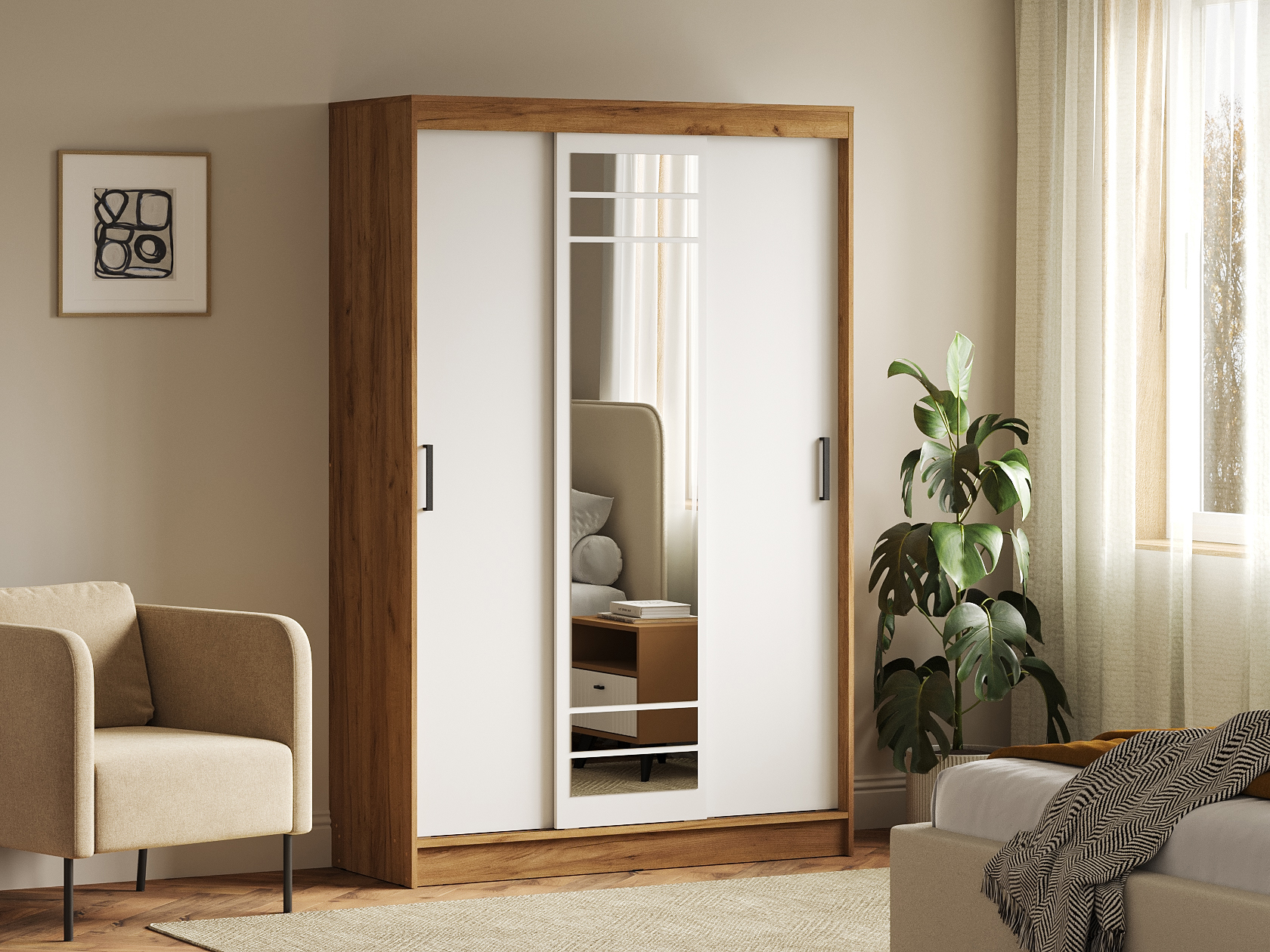 Дуб Крафт / Белый / Зеркало. Без антресольного шкафа