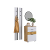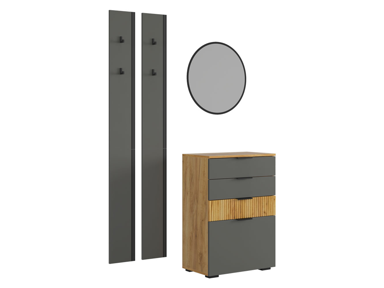 Прихожая Мерси Смарт станет оптимальным решением для обустройства входной зоны в небольшой квартире. Открытые вешалки с прочными крючками отлично смотрятся в любом интерьере. Практичный комод благодаря комбинированному наполнению поможет разместить множество нужных вещей. Фрезеровка и текстура дерева в отделке создают уютную обстановку.