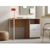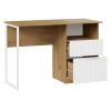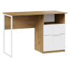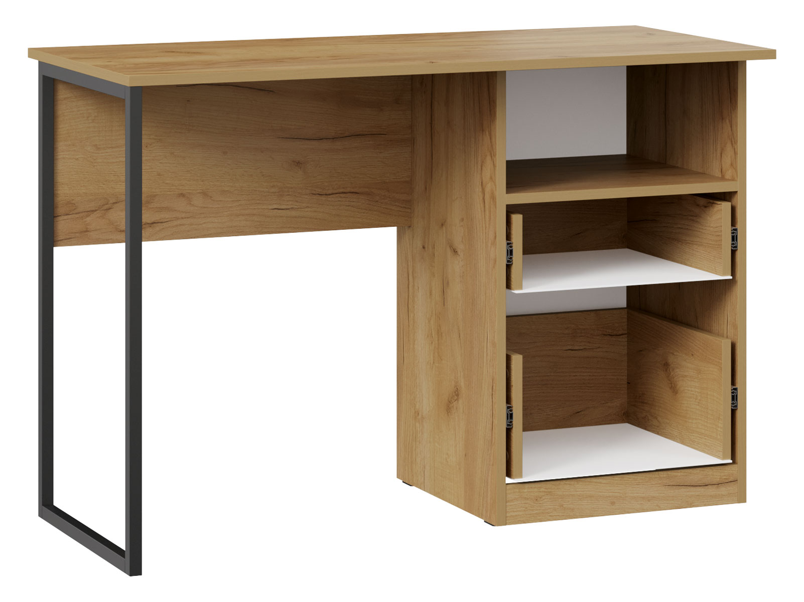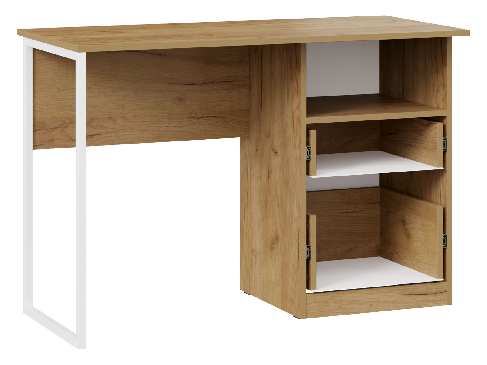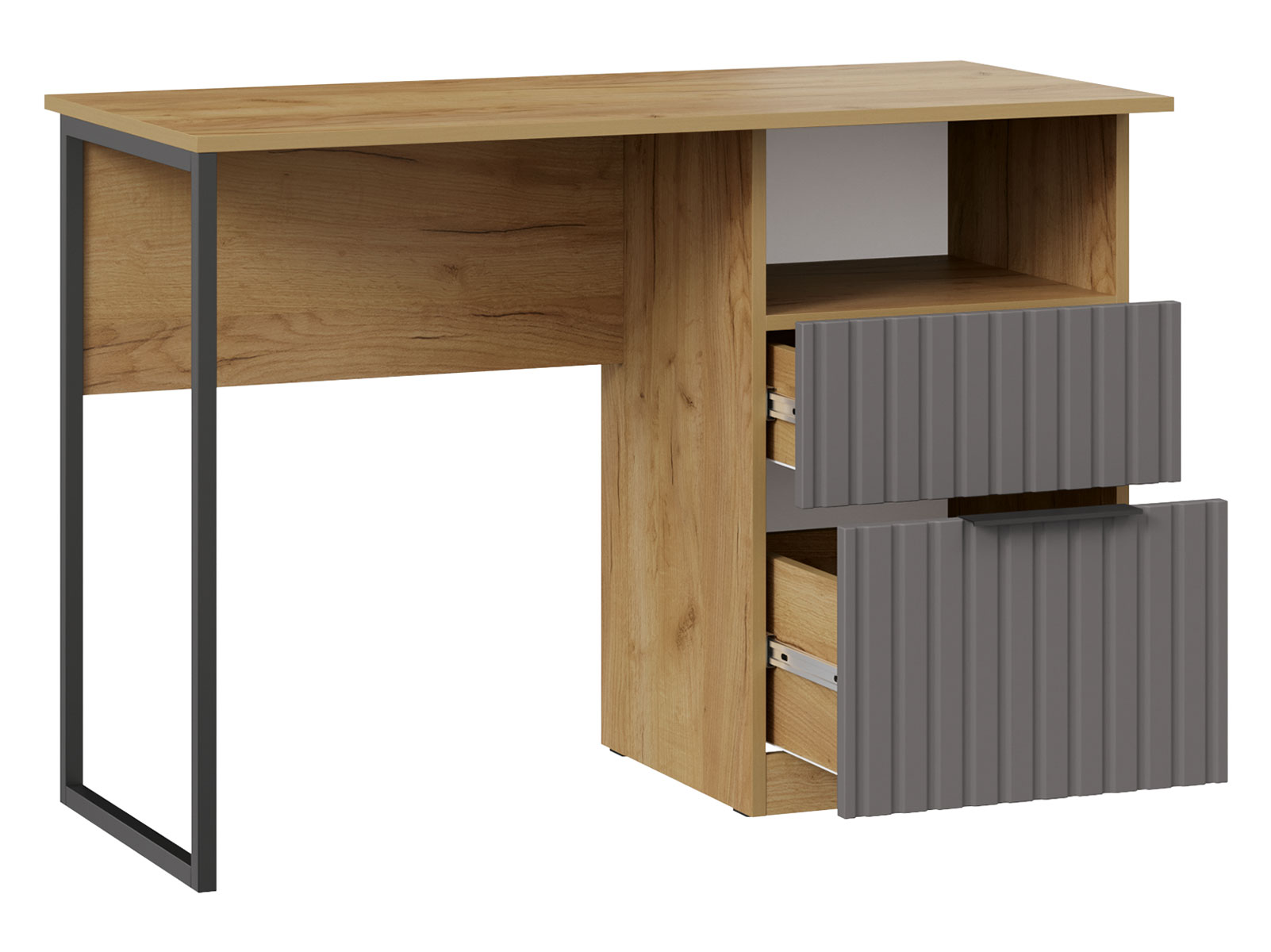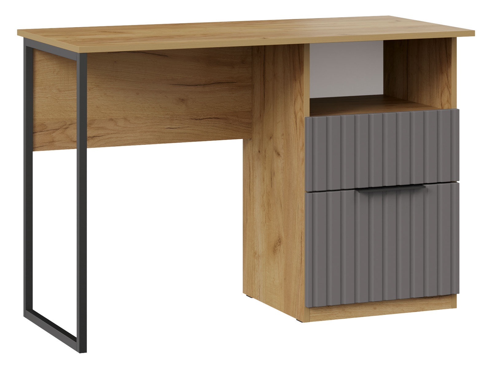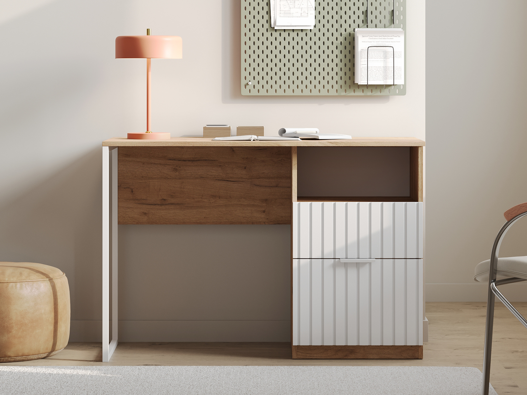 Письменный стол Хилтон привлекает внимание оригинальным сочетанием оттенков и продуманным оснащением. Выдвижные ящики и открытая ниша над ними организуют удобную систему хранения. Просторная поверхность с легкостью разместит всё необходимое для работы или учебы.