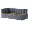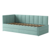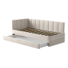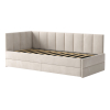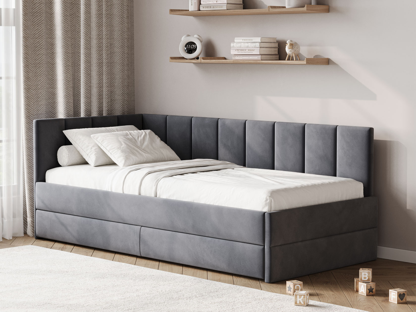Тахта Астра позволит обустроить уютное место для сна, которое будет актуально смотреться в любом интерьере. Мягкая обивка приятна на ощупь и создает дополнительные безопасность и комфорт. Спинка украшена декоративной строчкой. Основание с ламелями обеспечивает приток воздуха к матрасу. Выкатной ящик на роликовых опорах поможет аккуратно хранить постельные принадлежности.