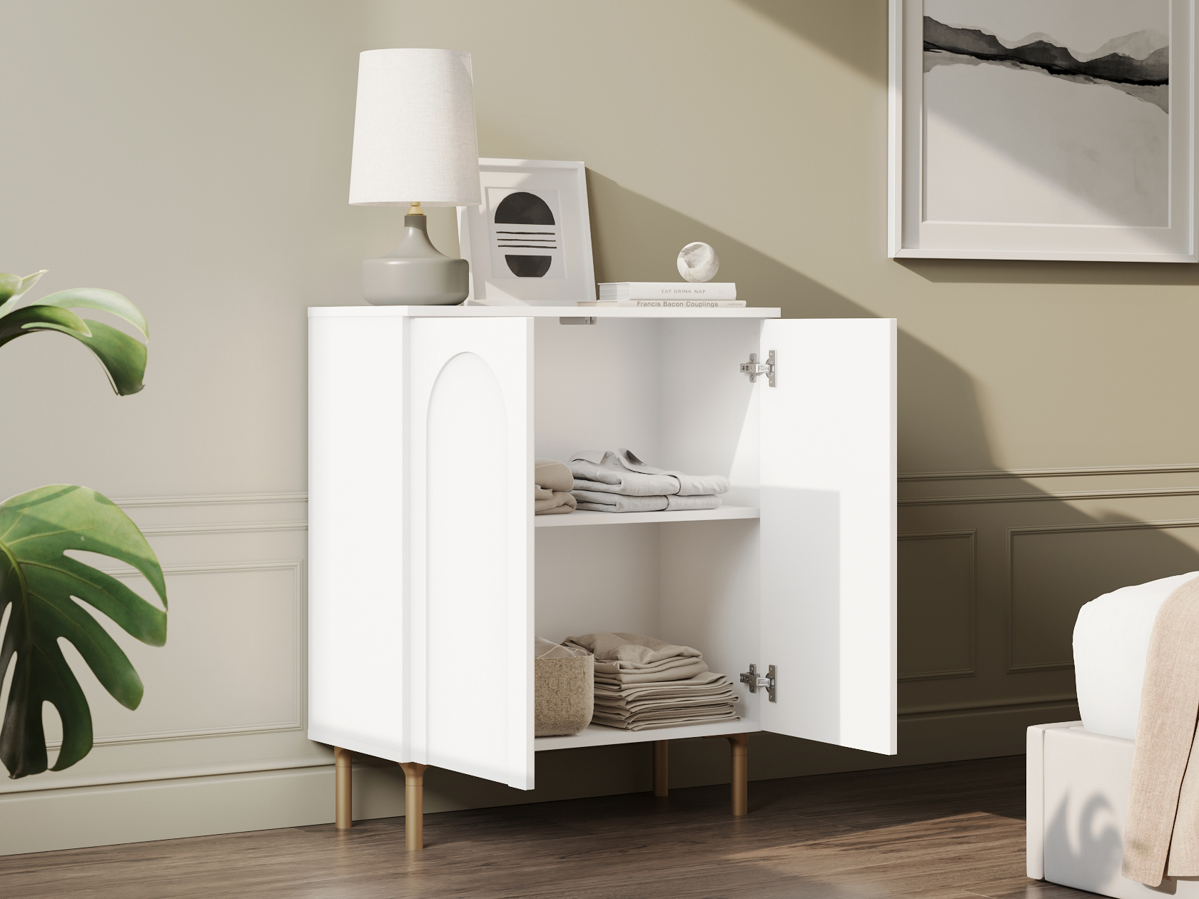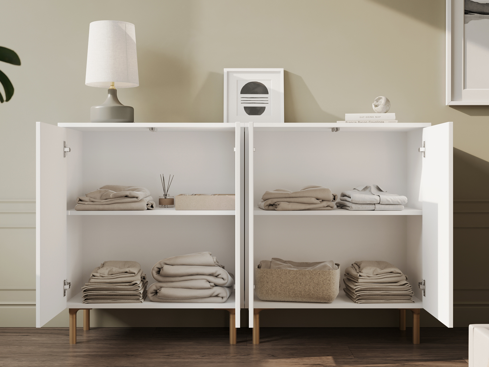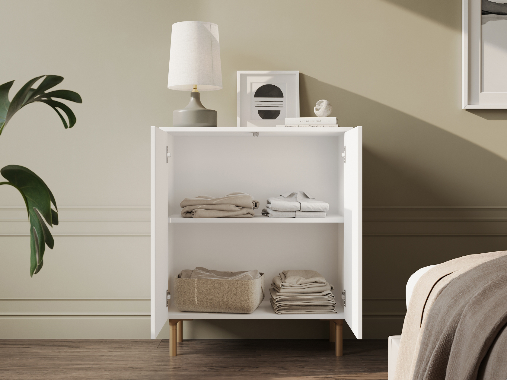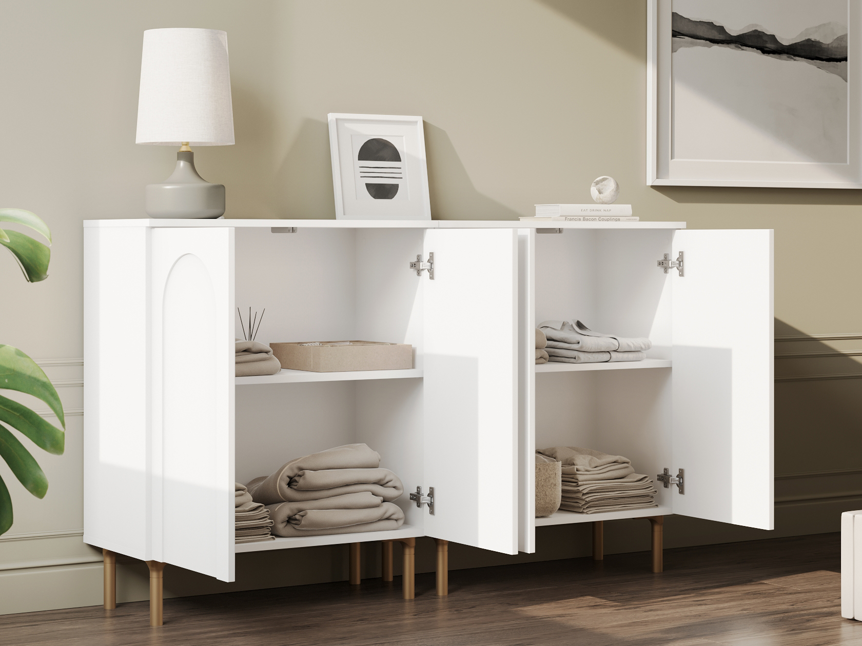Набор комодов Ванесса Дабл украсит интерьер и расширит систему хранения. Элегантный дизайн фасадов с плавными линиями фрезеровки и аккуратные ножки придают мебели утонченность. Удобная полка делит внутреннее пространство пополам, позволяя разместить разные категории вещей. С помощью механизма «push-to-open» дверцы открываются легким нажатием, а петли с доводчиками обеспечивают комфортную эксплуатацию.