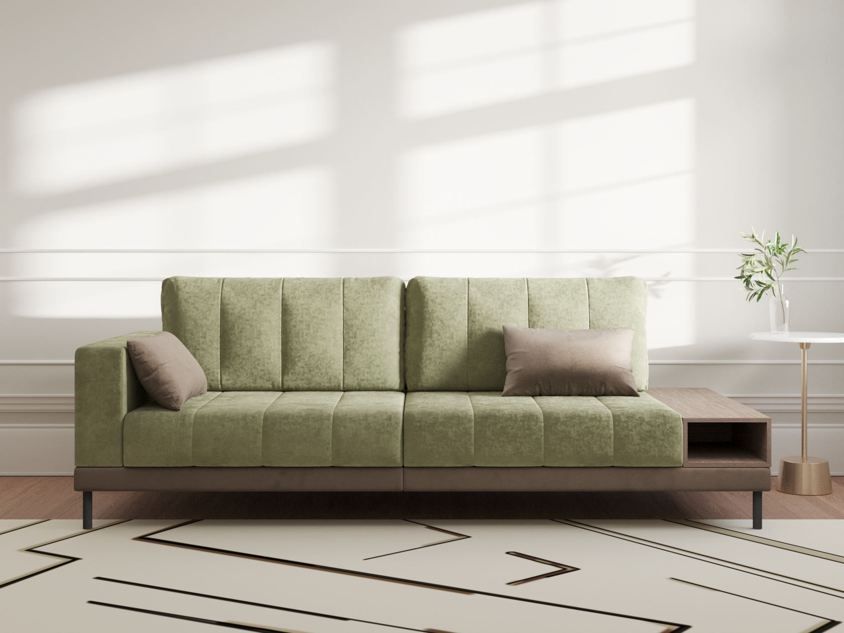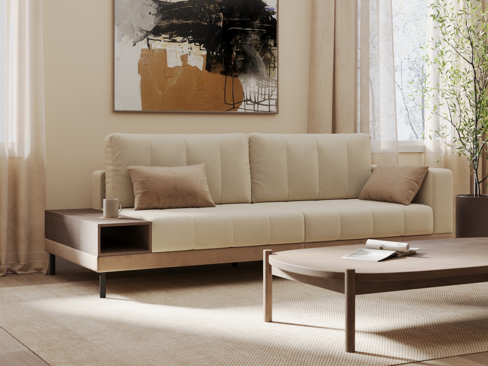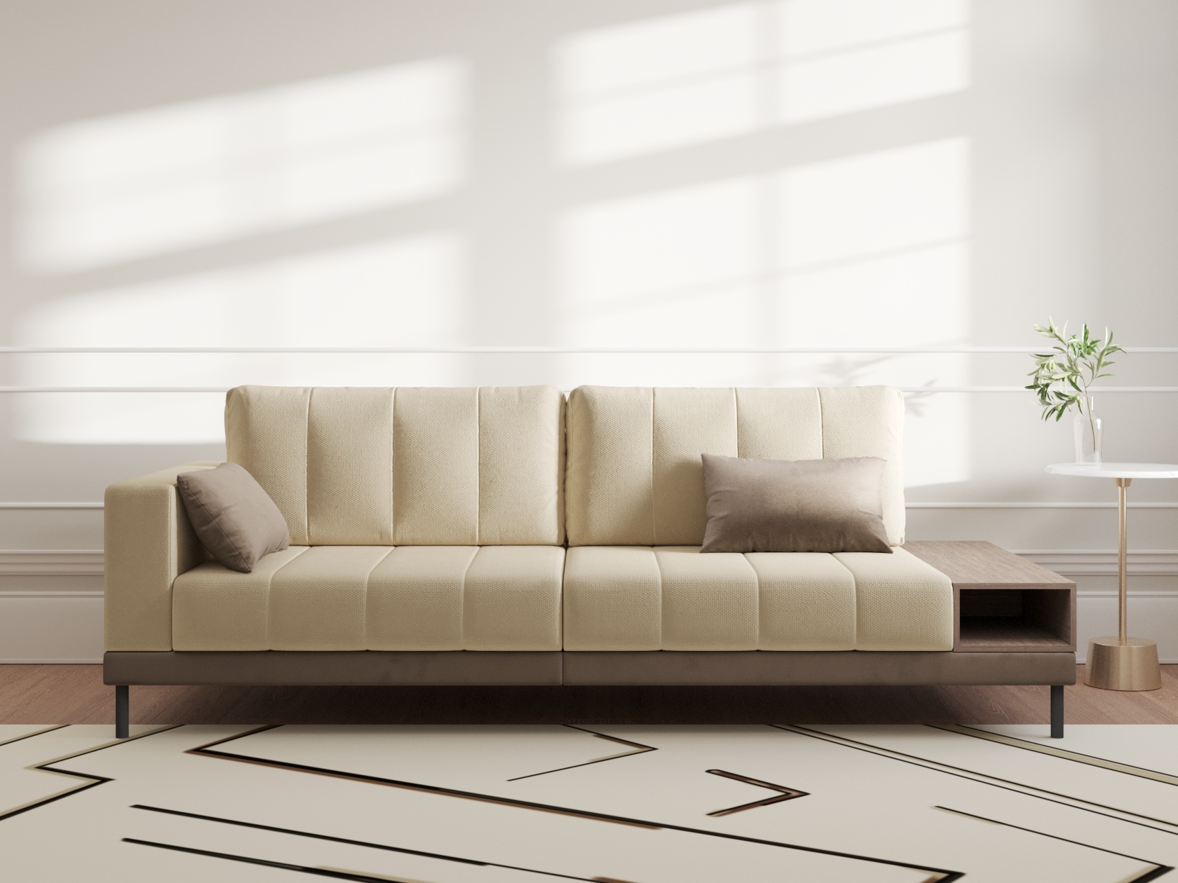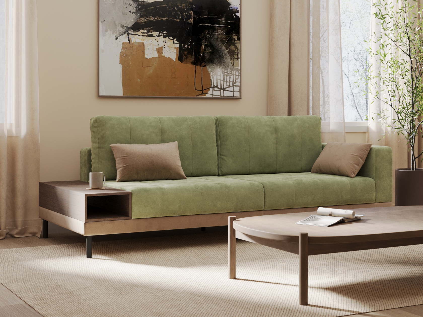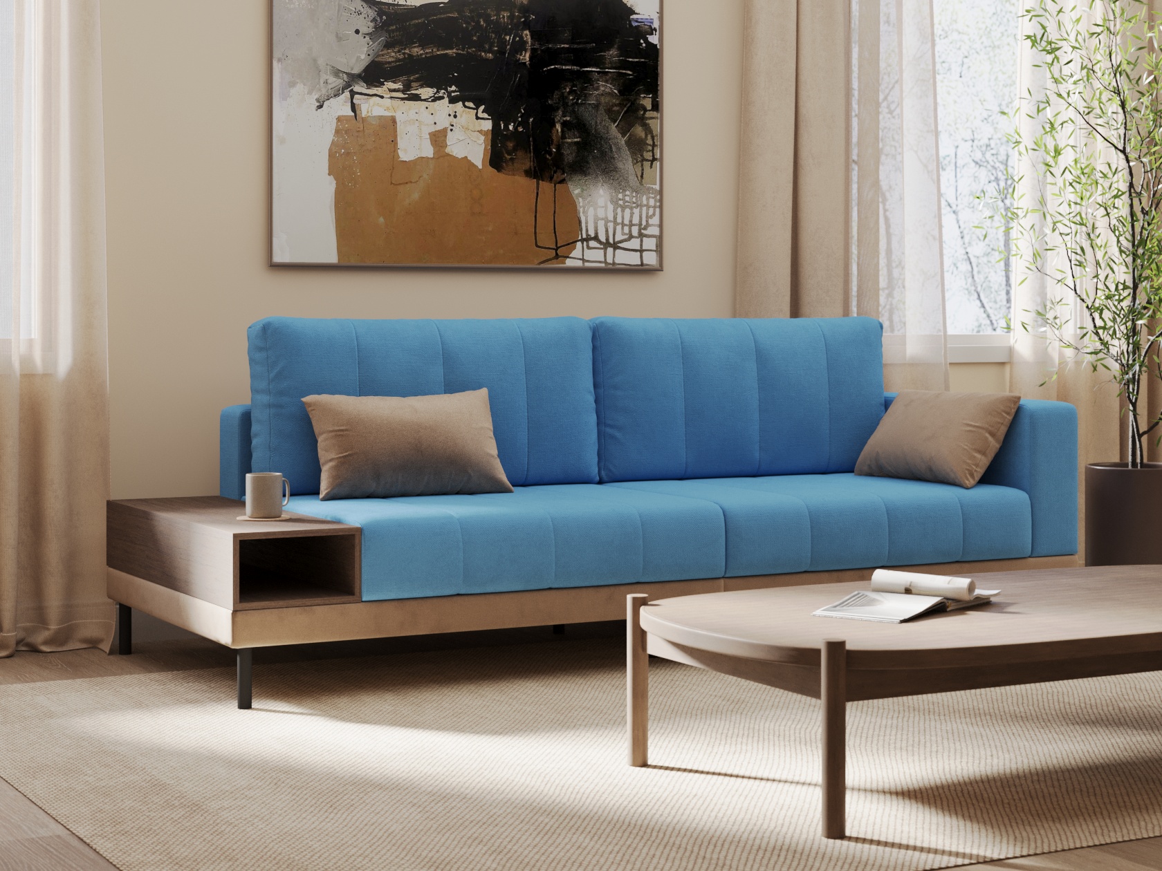 Прямой диван Калифорния — современная модель с продуманным дизайном, которая украсит любую комнату. Мягкие приспинные подушки помогут расслабиться и занять удобное положение во время отдыха. Встроенная боковая ниша обеспечит практичное хранение различных мелочей. Деревянный каркас подарит конструкции надежность и прочность. Обивка выполнена из износостойкой ткани, а декоративная строчка придает мебели элегантность. Высокие ножки облегчают уборку напольного покрытия и добавляют интерьеру визуальной легкости.