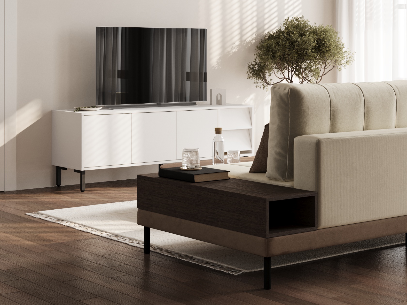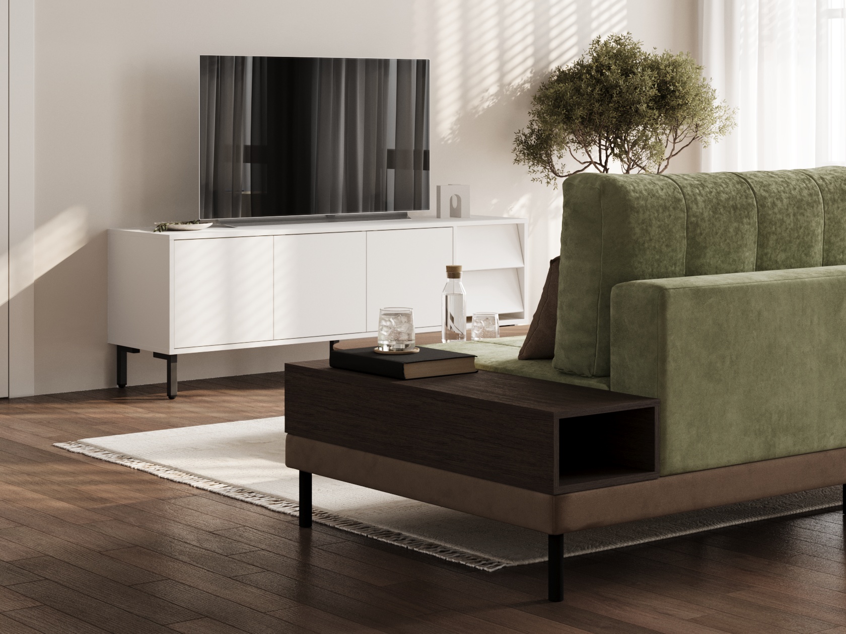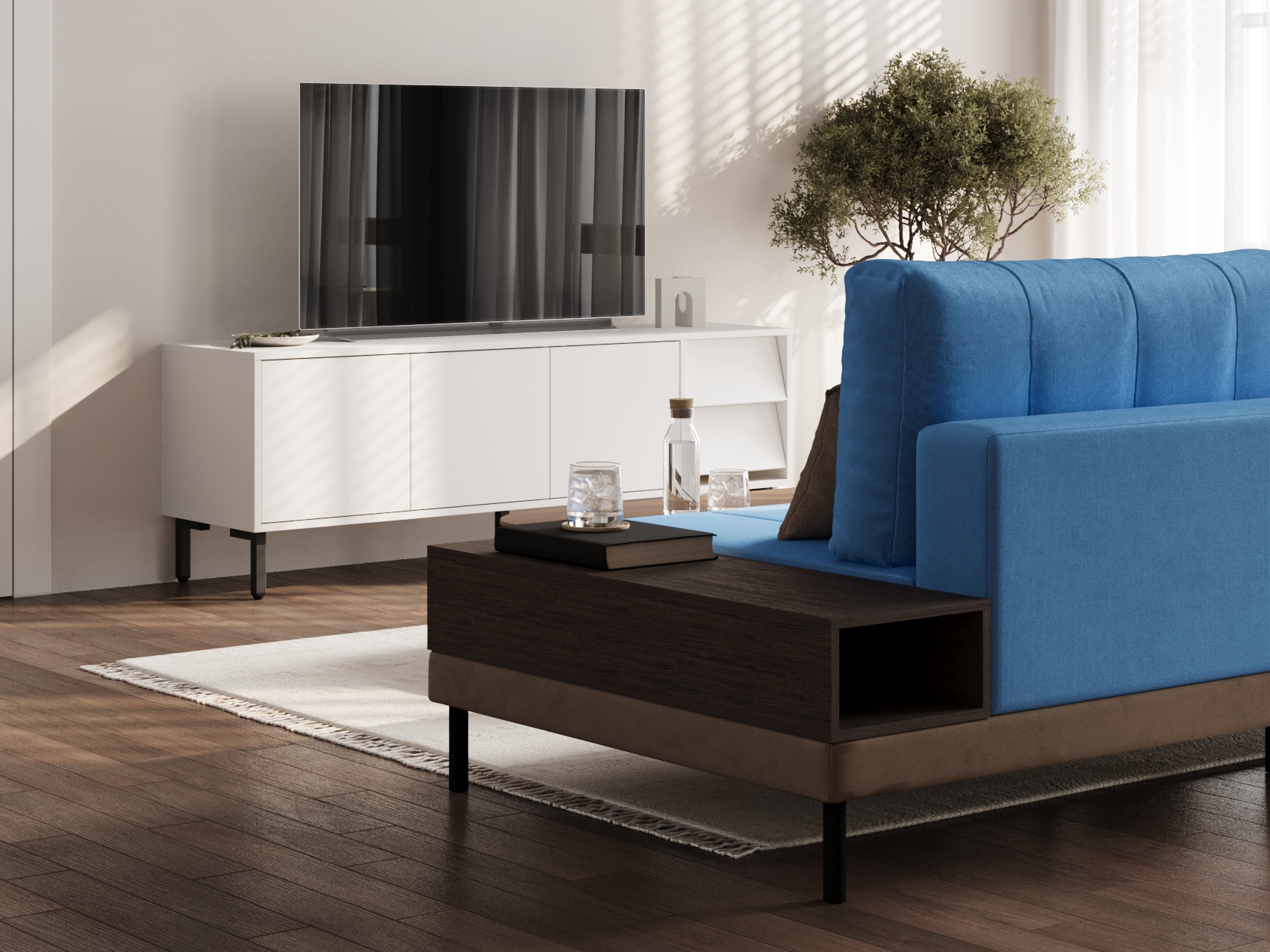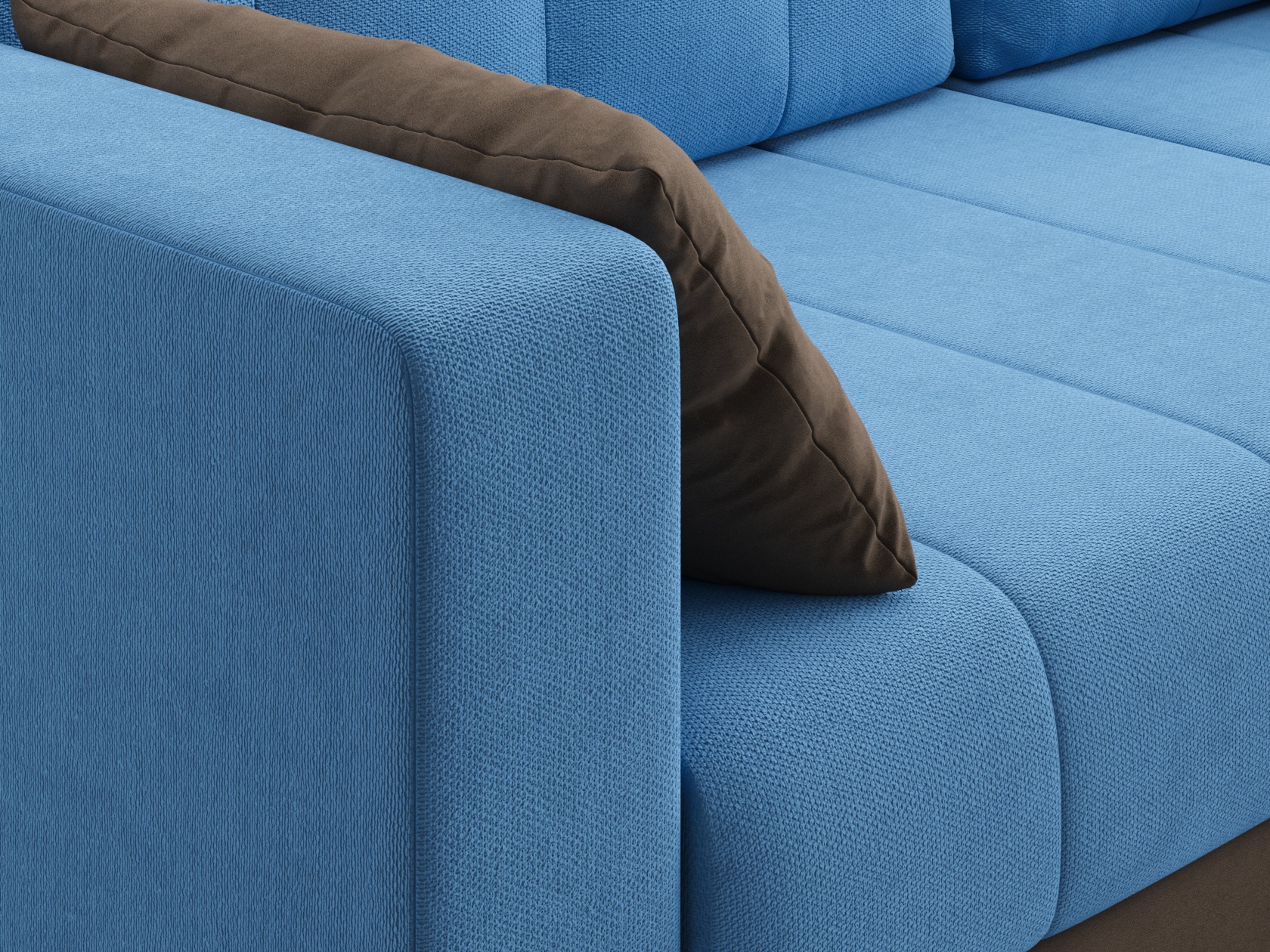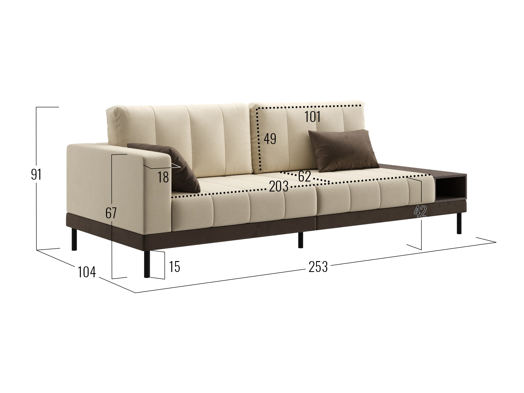 Прямой диван Калифорния — современная модель с продуманным дизайном, которая украсит любую комнату. Мягкие приспинные подушки помогут расслабиться и занять удобное положение во время отдыха. Встроенная боковая ниша обеспечит практичное хранение различных мелочей. Деревянный каркас подарит конструкции надежность и прочность. Обивка выполнена из износостойкой ткани, а декоративная строчка придает мебели элегантность. Высокие ножки облегчают уборку напольного покрытия и добавляют интерьеру визуальной легкости.