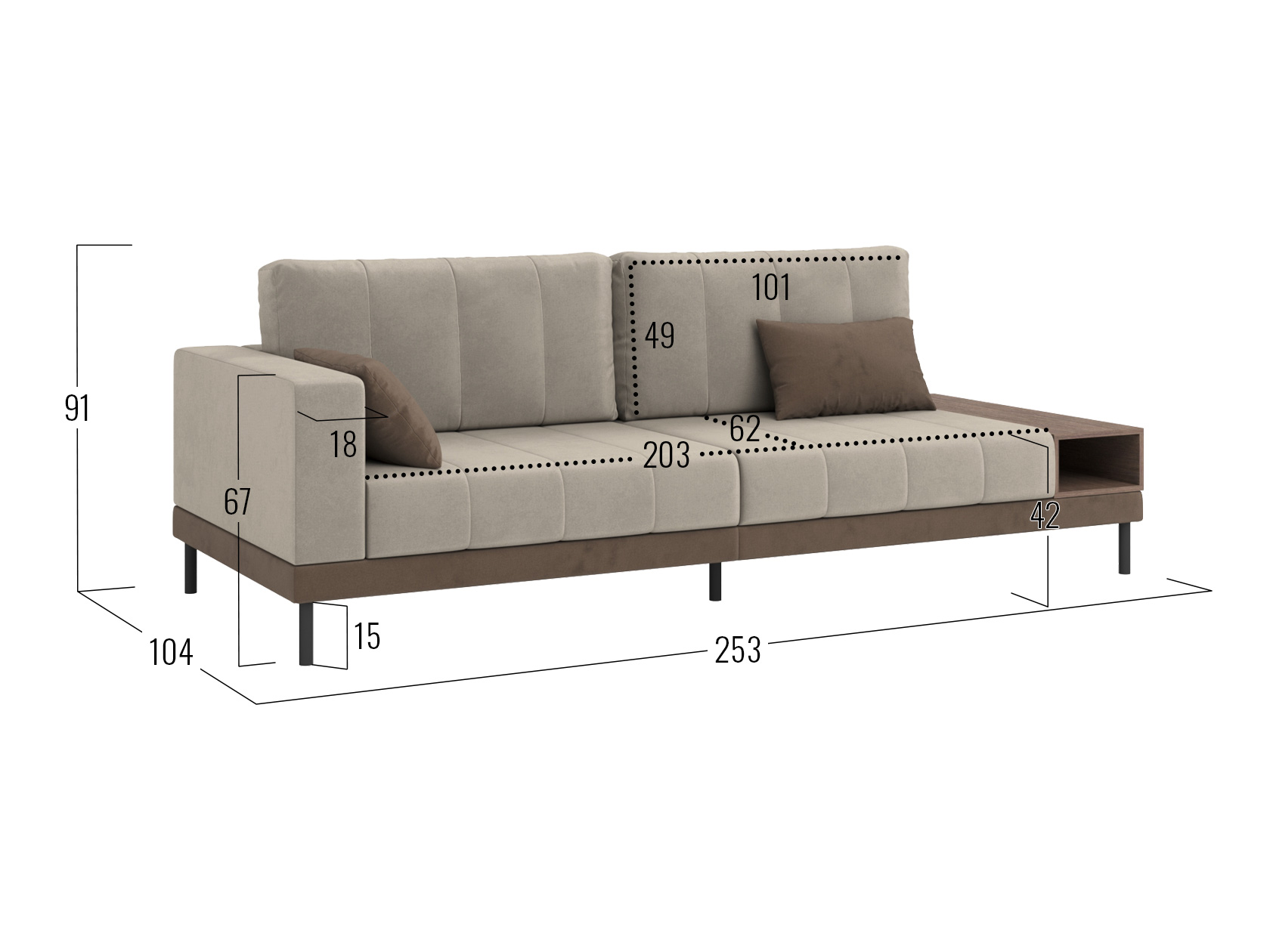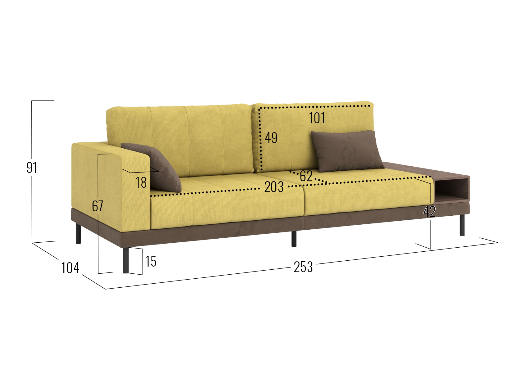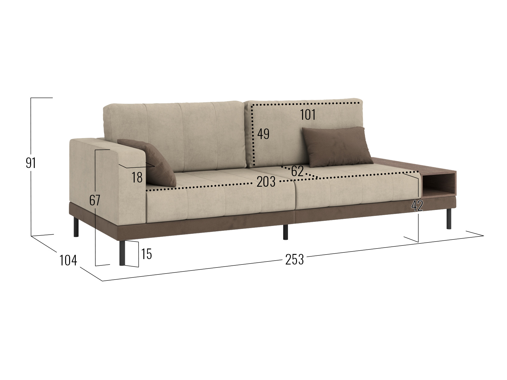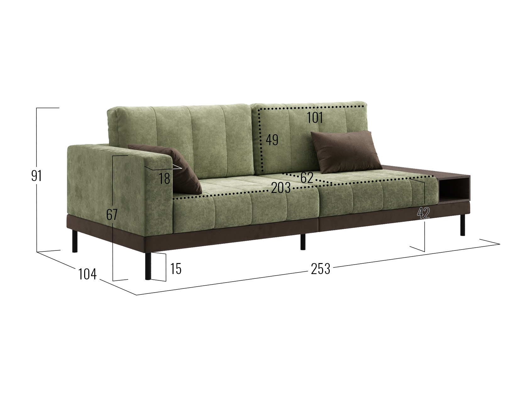 Посадочное место без подушек (ШхГ): 203 х 87 см.