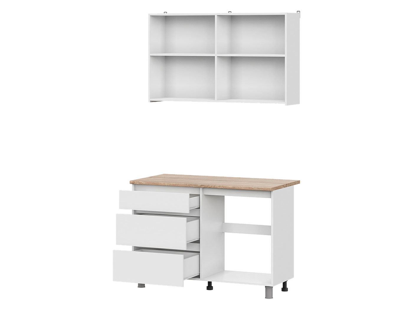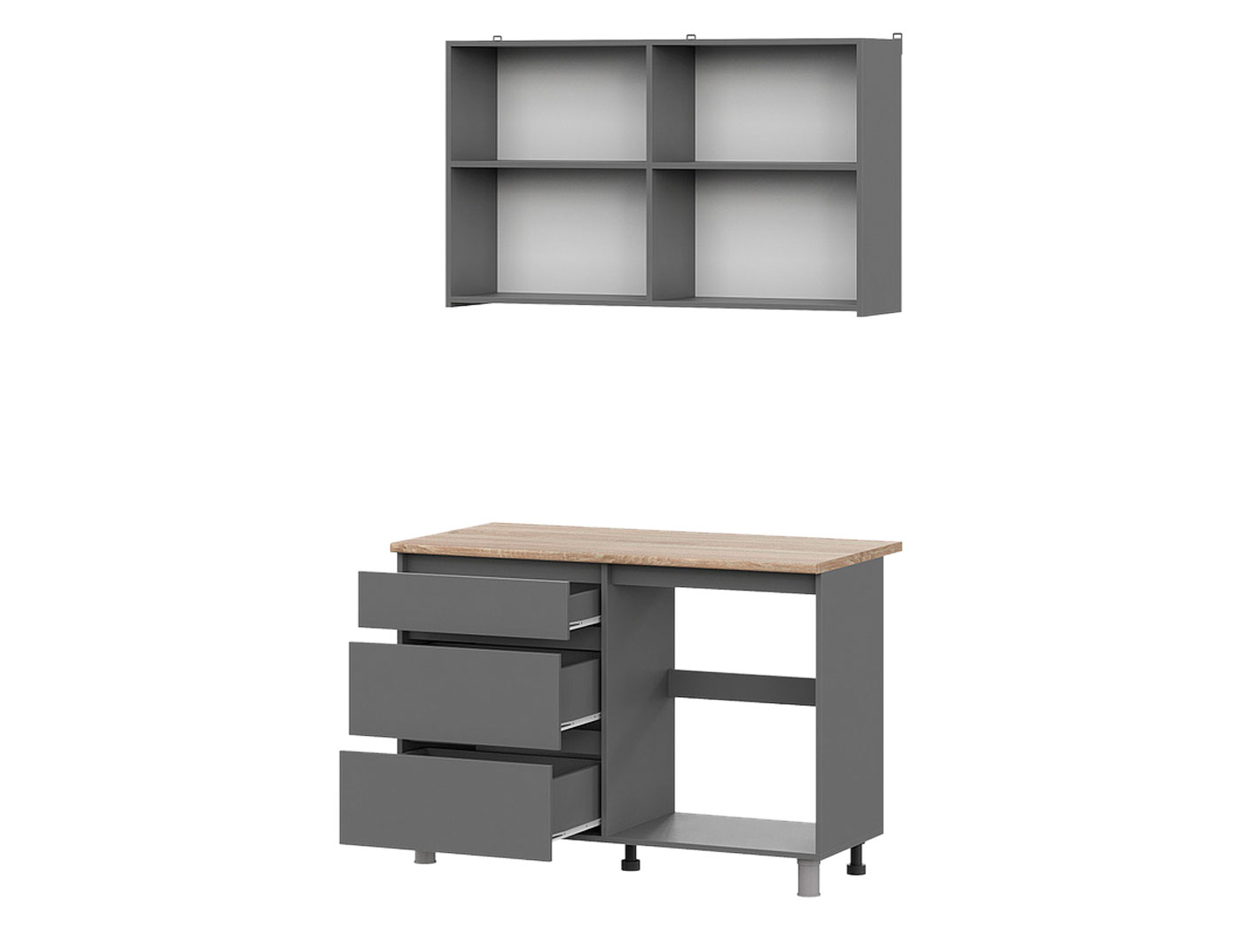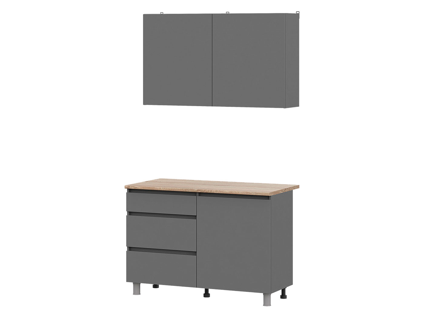 Кухонный гарнитур Денвер 120 см — практичный способ обустроить пространство и организовать хранение. Компактно расположенные, но при этом вместительные элементы помогут аккуратно расположить посуду, контейнеры, продукты и прочую утварь. Матовые фасады без ручек открываются за выступающий край. Регулируемые опоры позволяют надежно установить стол даже на полу с неровностями.