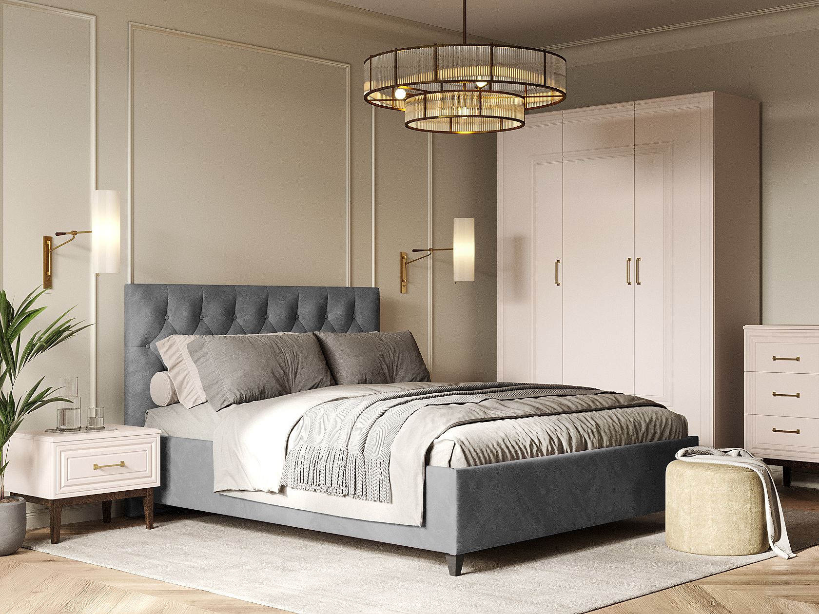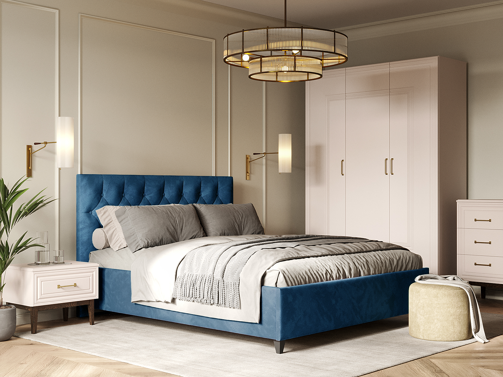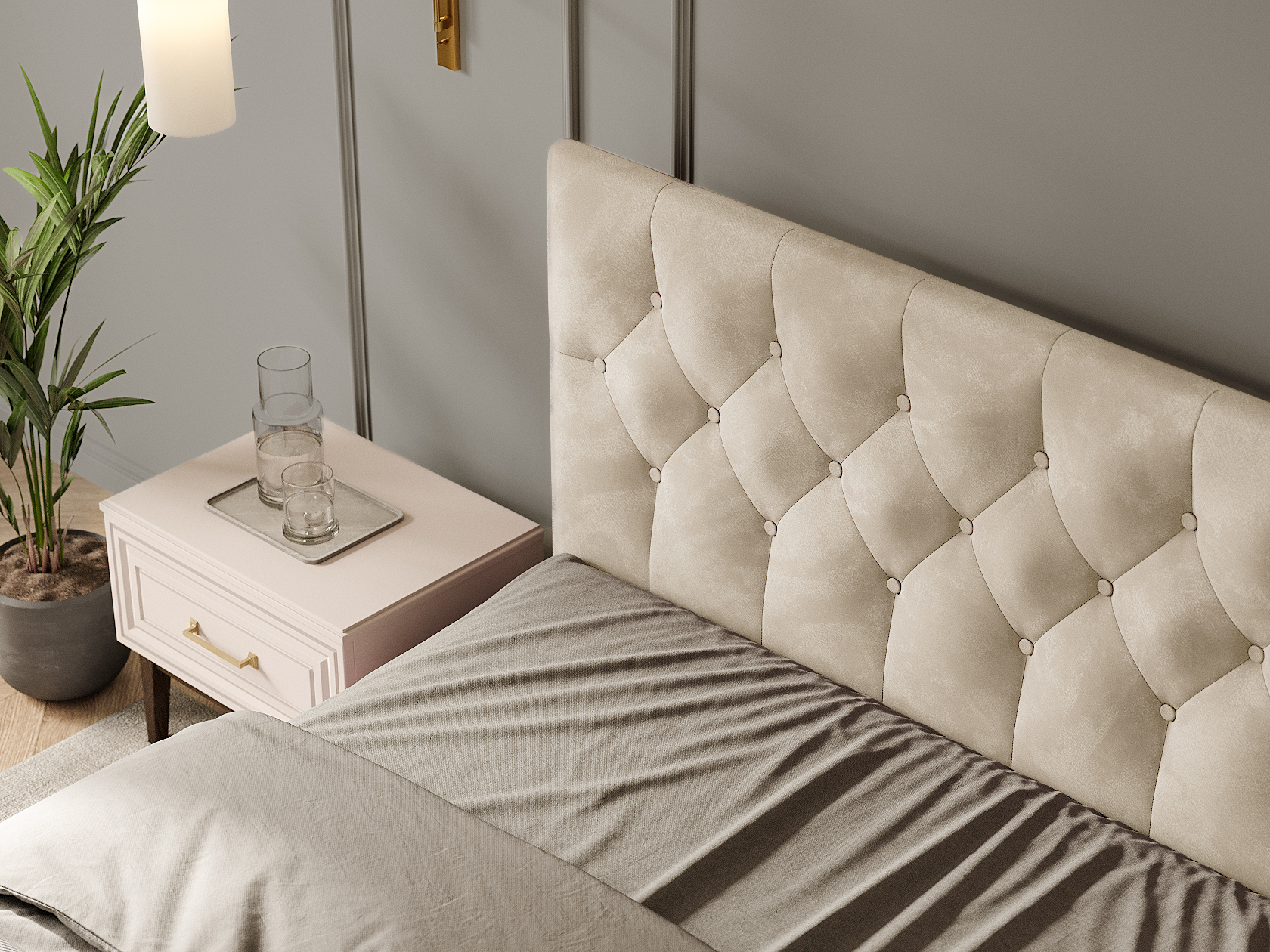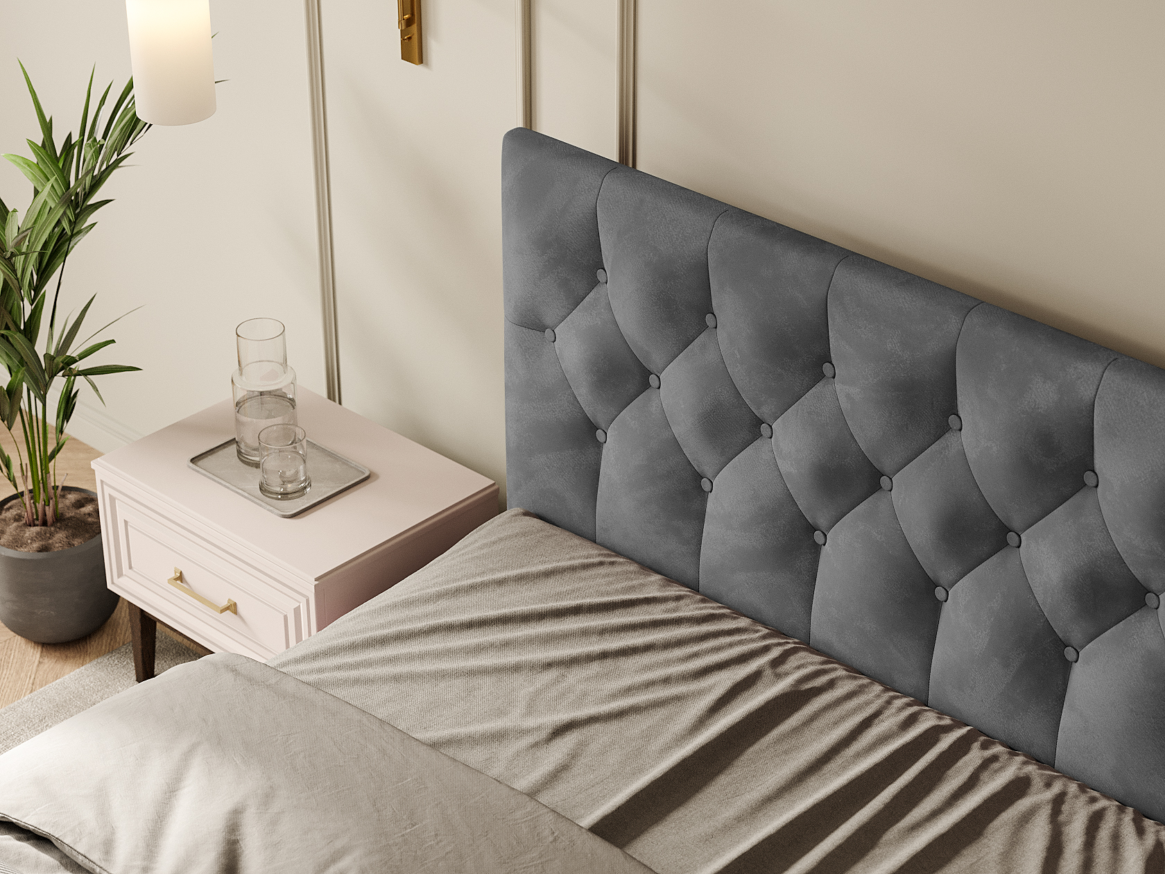 Кровать с подъемным механизмом Алье ПМ сочетает комфорт, практичность и элегантность. Мягкое изголовье с каретной стяжкой придает модели особую эстетику и обеспечивает удобную поддержку во время отдыха. Просторный бельевой короб создает дополнительную зону для хранения: внутри поместятся объемные одеяла, подушки и другие вещи. Небольшие ножки добавляют конструкции визуальную легкость и привлекательность.