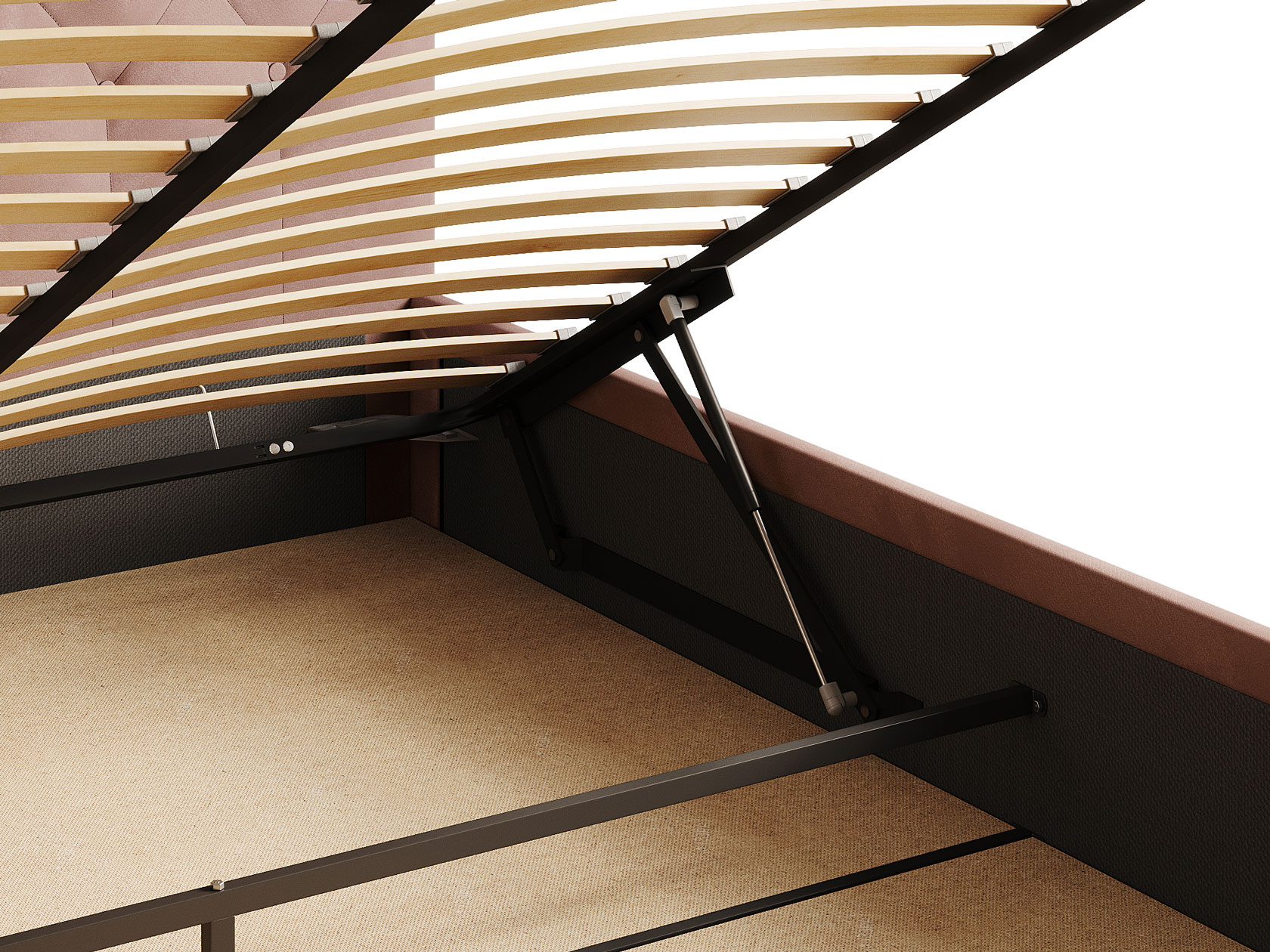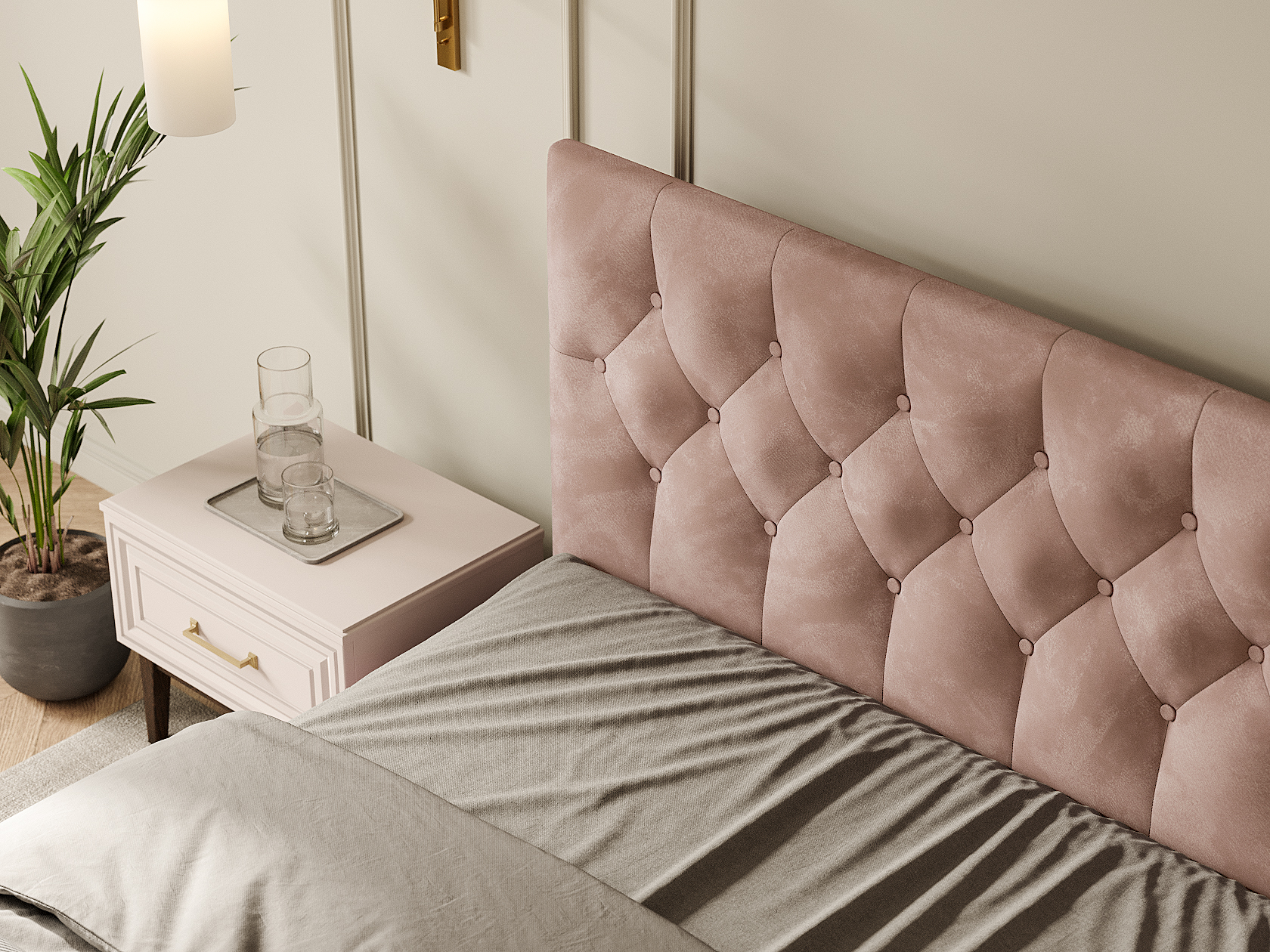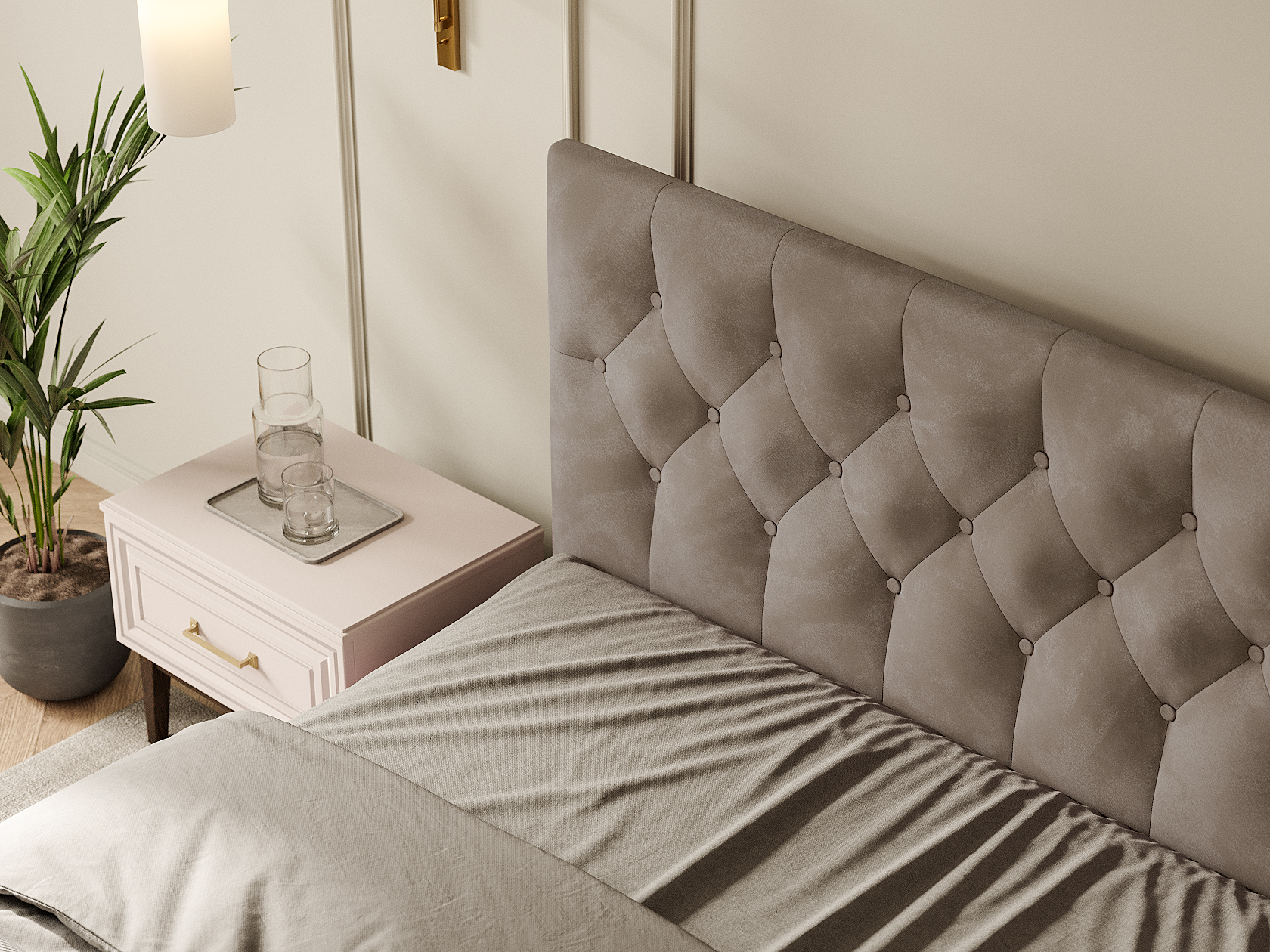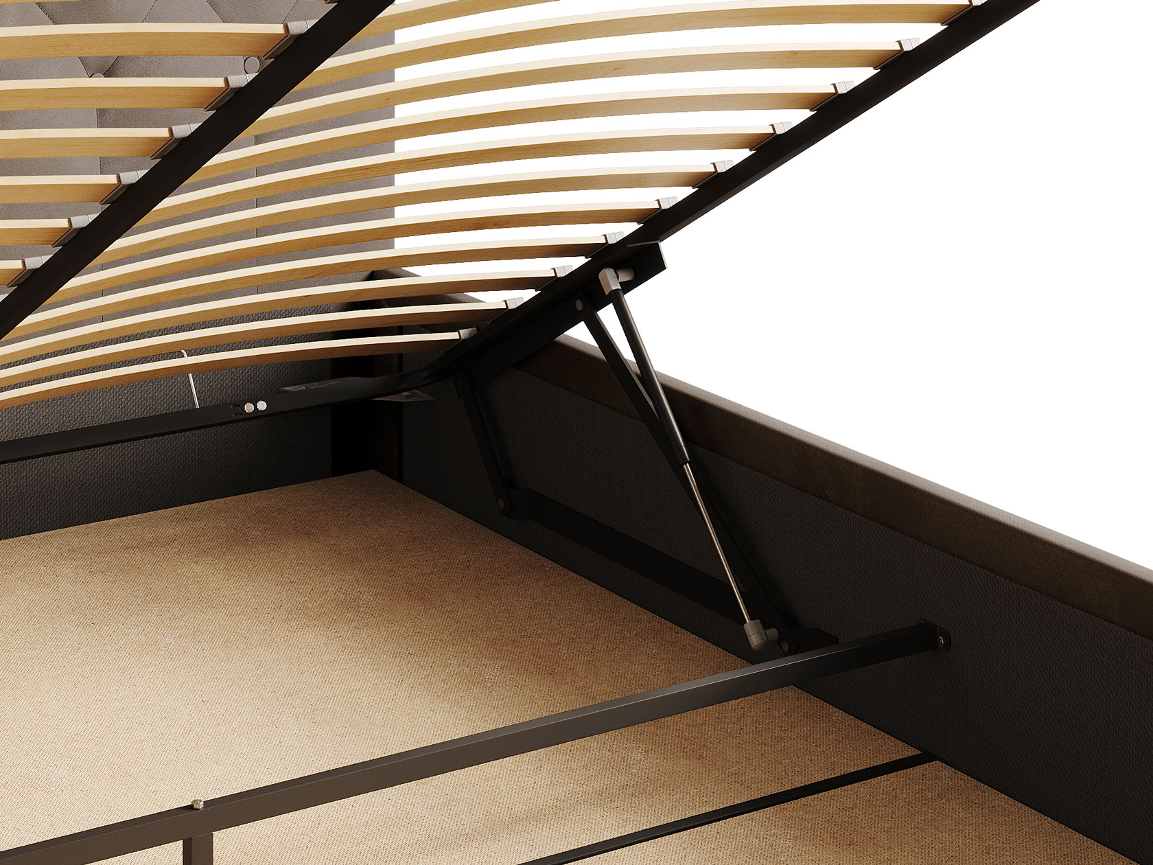 Кровать с подъемным механизмом Алье ПМ сочетает комфорт, практичность и элегантность. Мягкое изголовье с каретной стяжкой придает модели особую эстетику и обеспечивает удобную поддержку во время отдыха. Просторный бельевой короб создает дополнительную зону для хранения: внутри поместятся объемные одеяла, подушки и другие вещи. Небольшие ножки добавляют конструкции визуальную легкость и привлекательность.