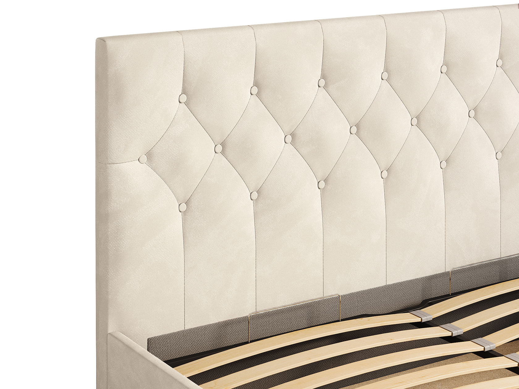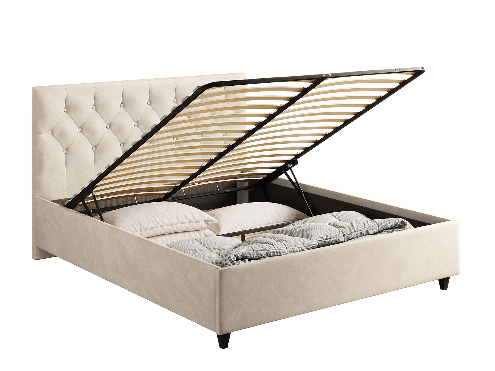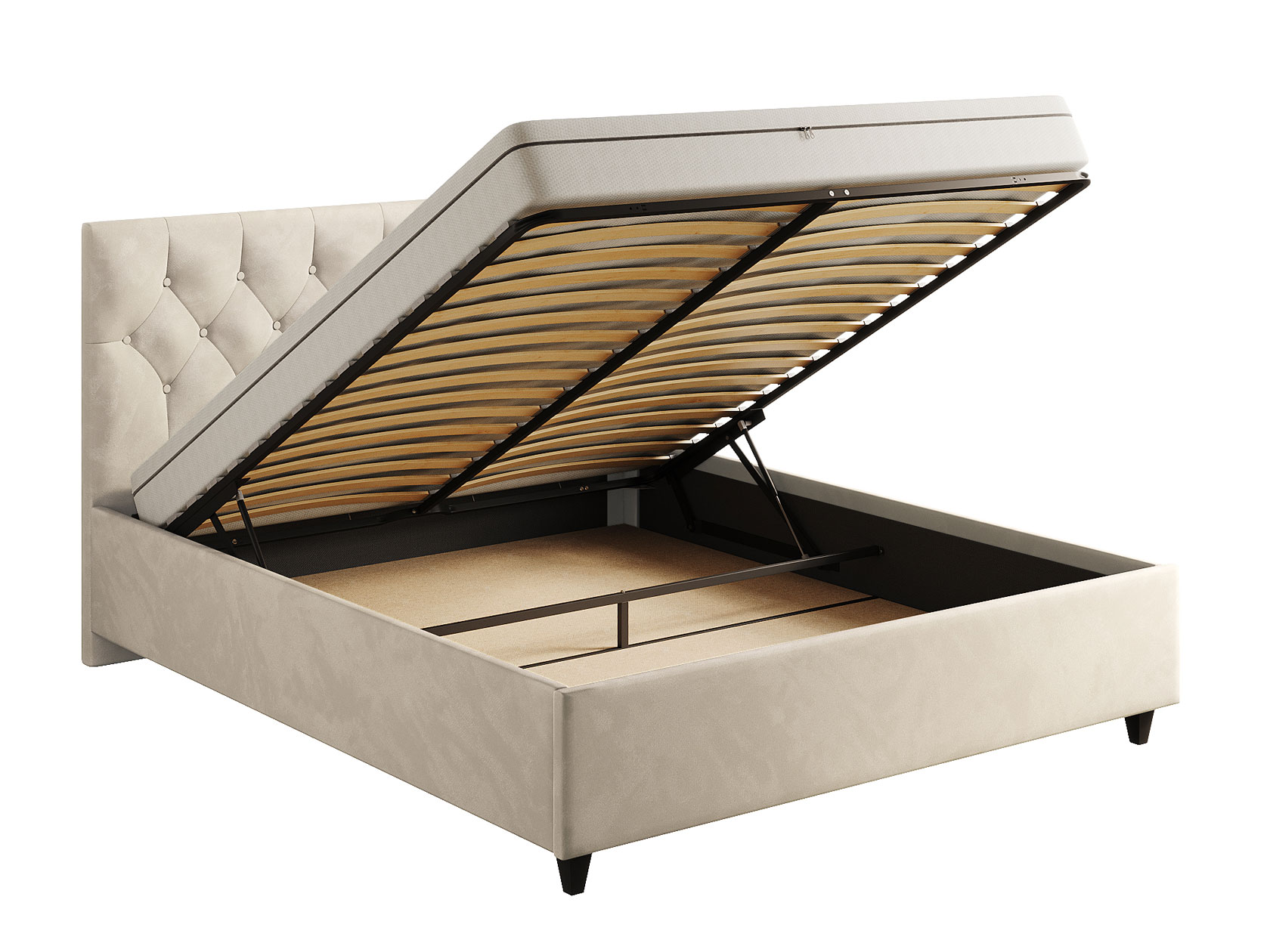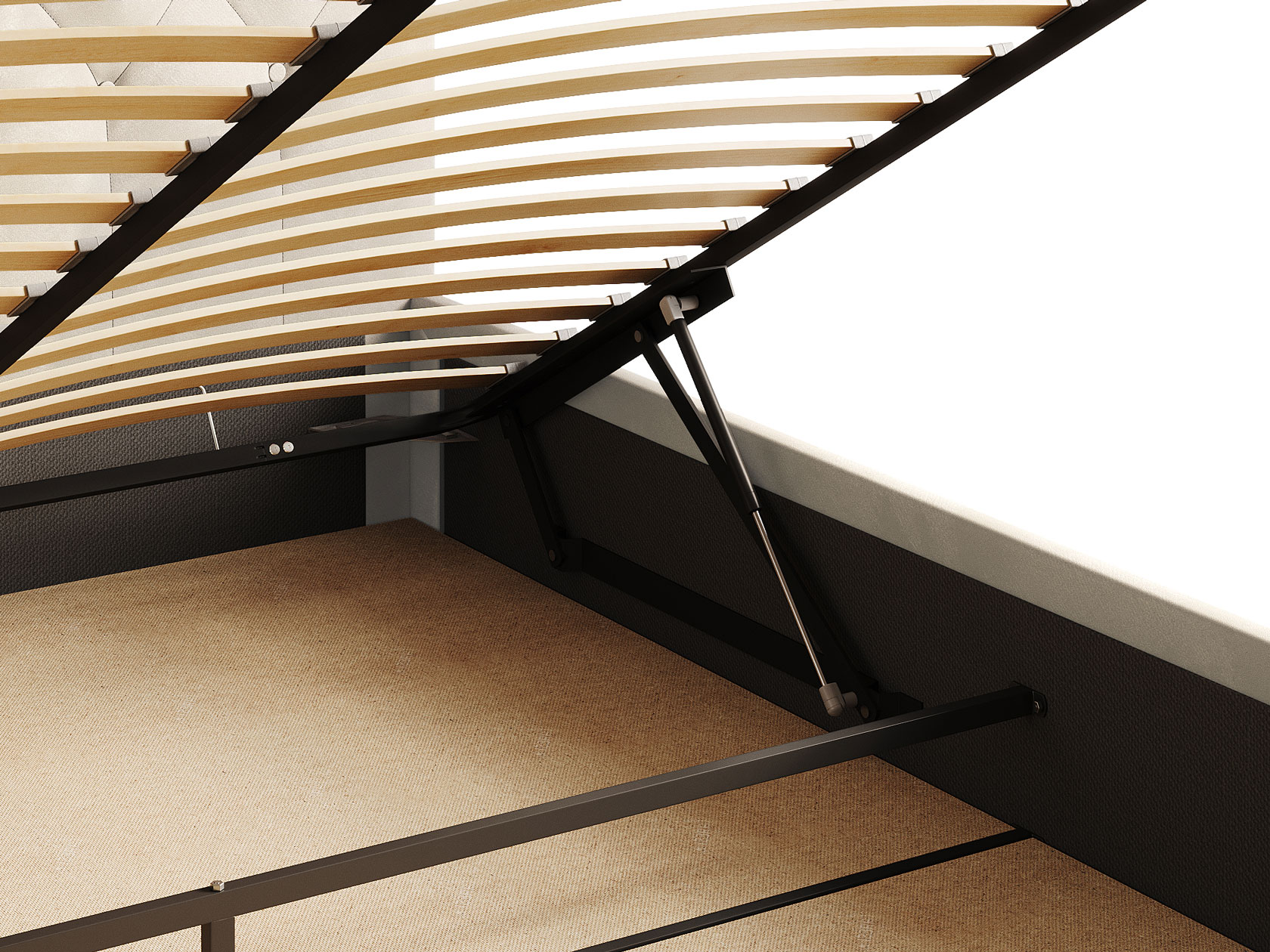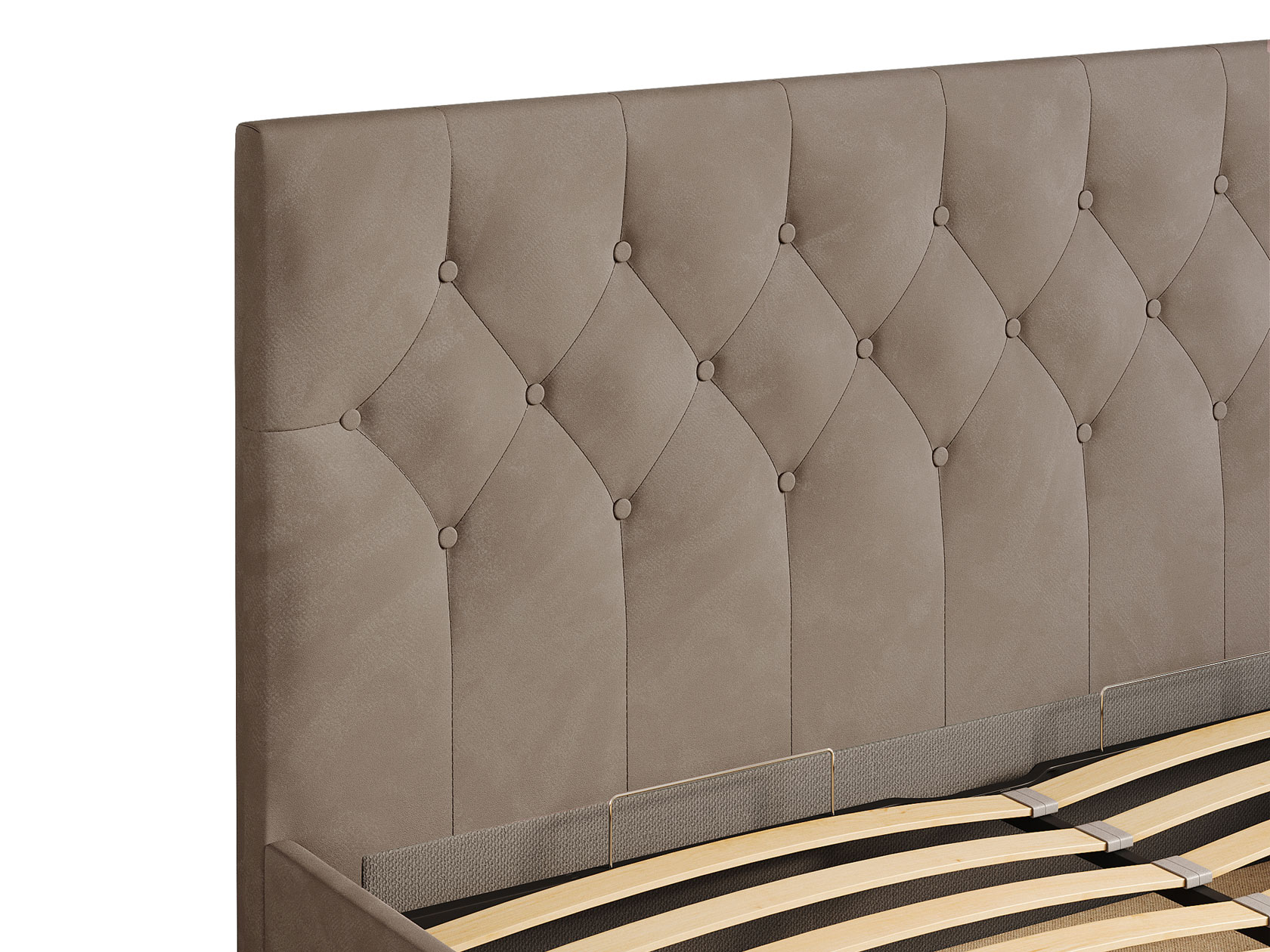 Кровать с подъемным механизмом Алье ПМ сочетает комфорт, практичность и элегантность. Мягкое изголовье с каретной стяжкой придает модели особую эстетику и обеспечивает удобную поддержку во время отдыха. Просторный бельевой короб создает дополнительную зону для хранения: внутри поместятся объемные одеяла, подушки и другие вещи. Небольшие ножки добавляют конструкции визуальную легкость и привлекательность.