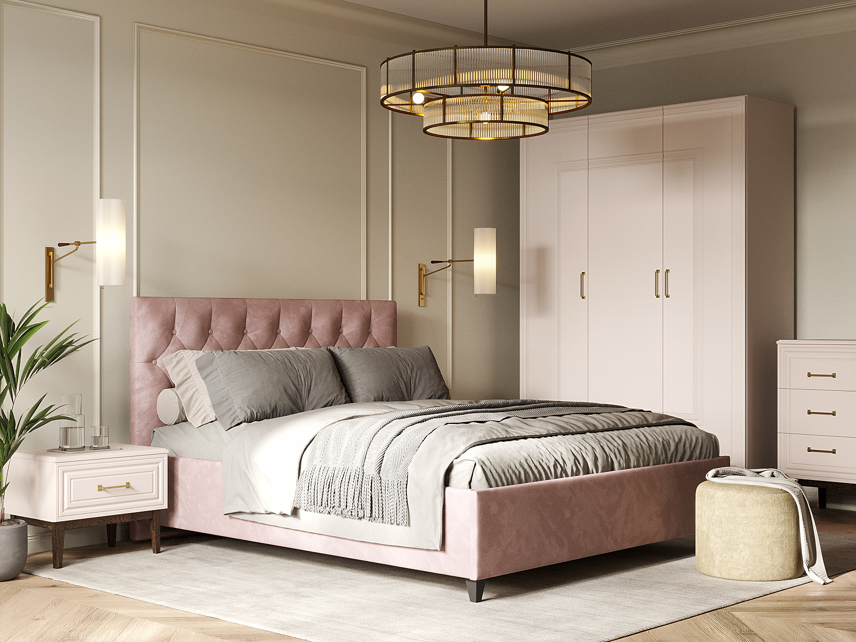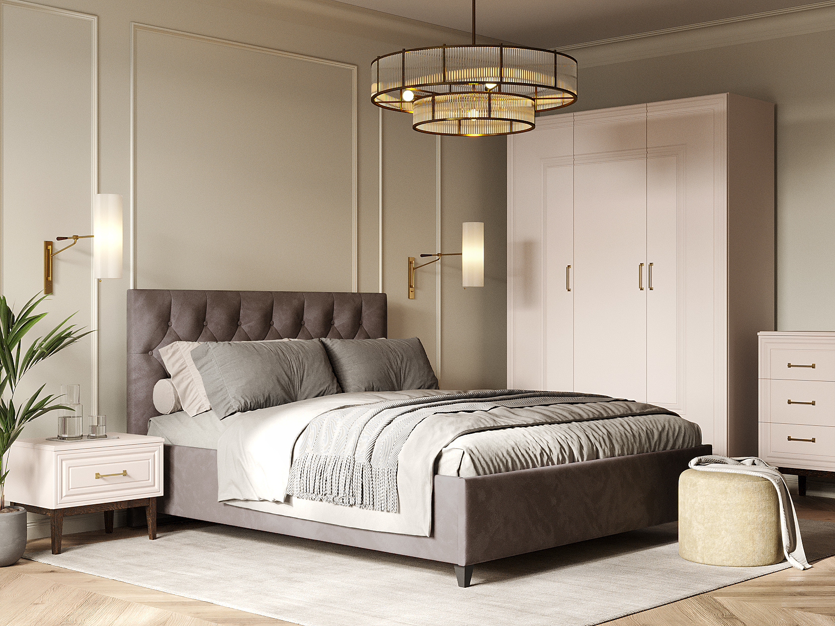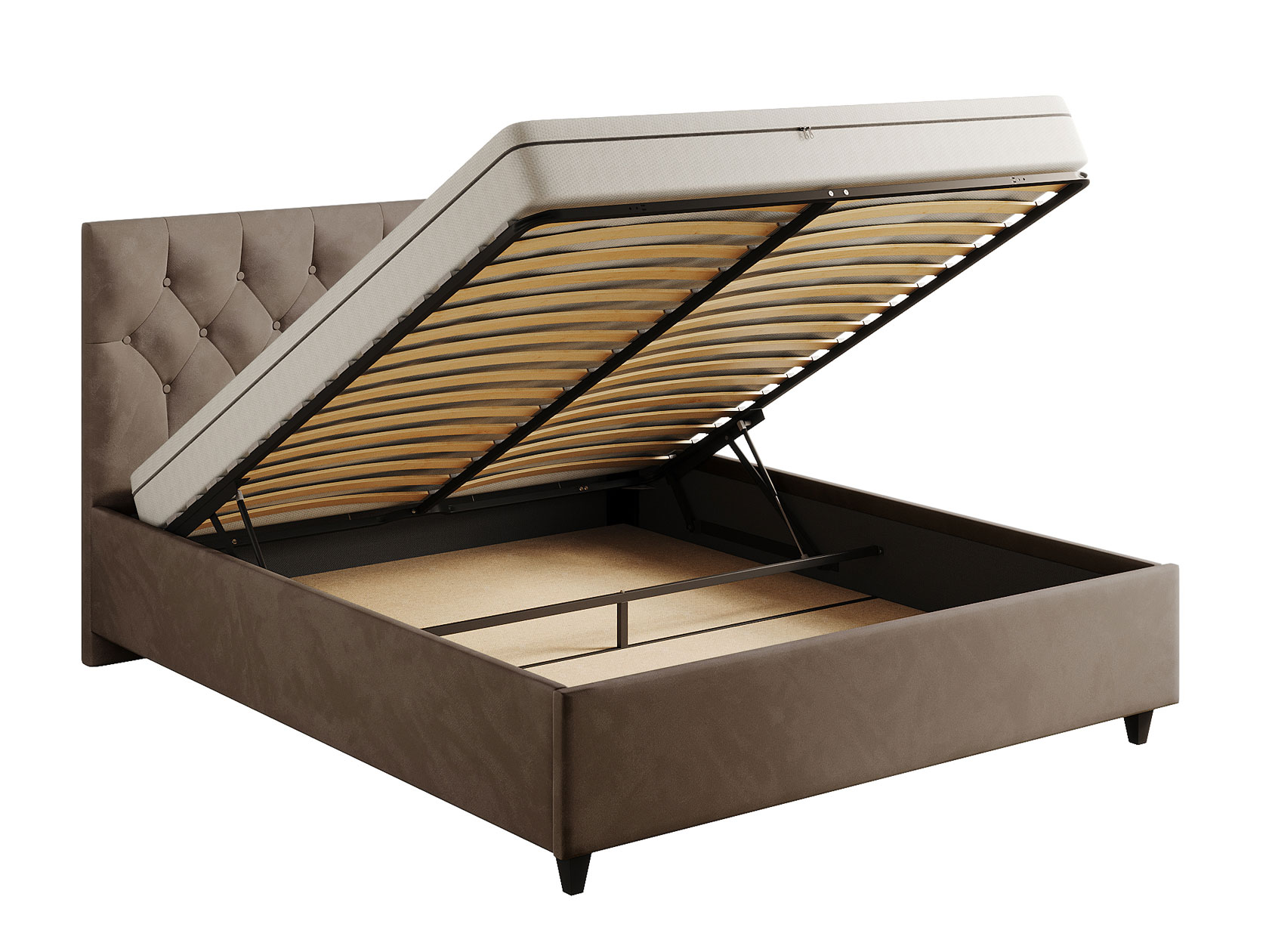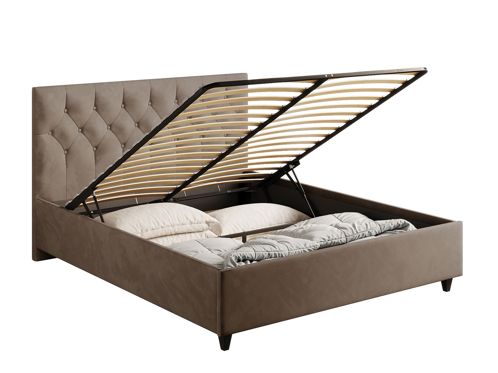Кровать с подъемным механизмом Алье ПМ сочетает комфорт, практичность и элегантность. Мягкое изголовье с каретной стяжкой придает модели особую эстетику и обеспечивает удобную поддержку во время отдыха. Просторный бельевой короб создает дополнительную зону для хранения: внутри поместятся объемные одеяла, подушки и другие вещи. Небольшие ножки добавляют конструкции визуальную легкость и привлекательность.