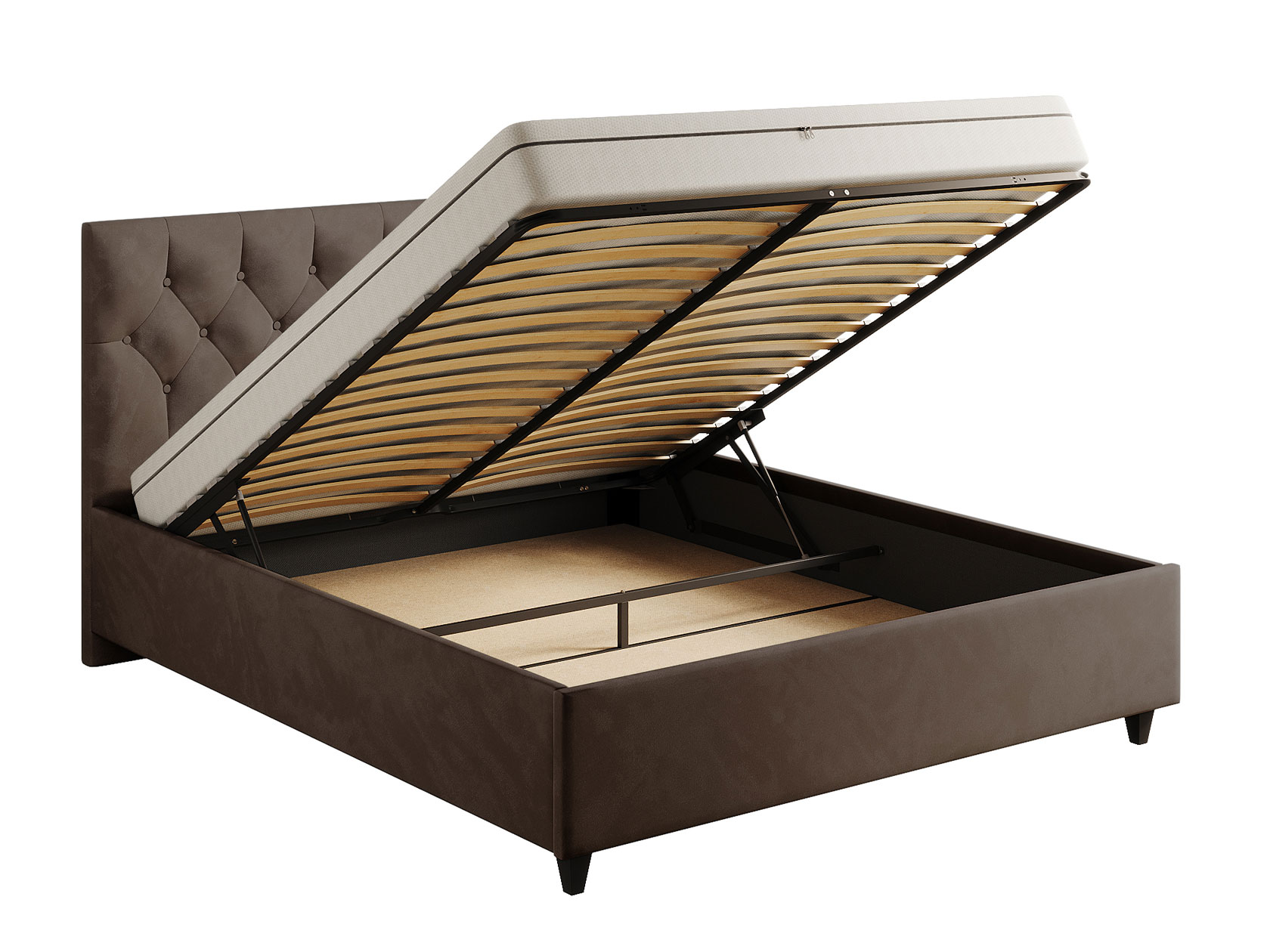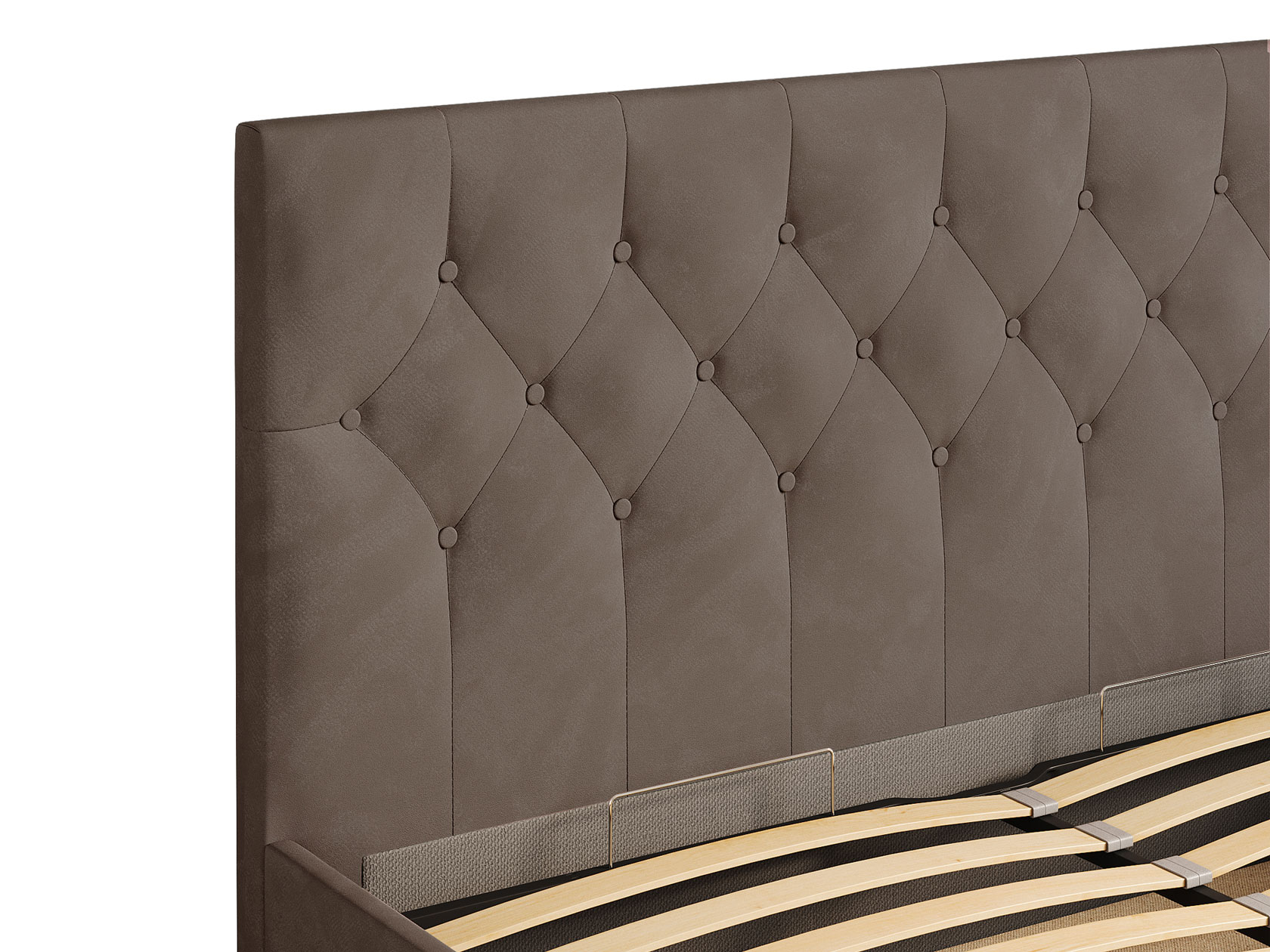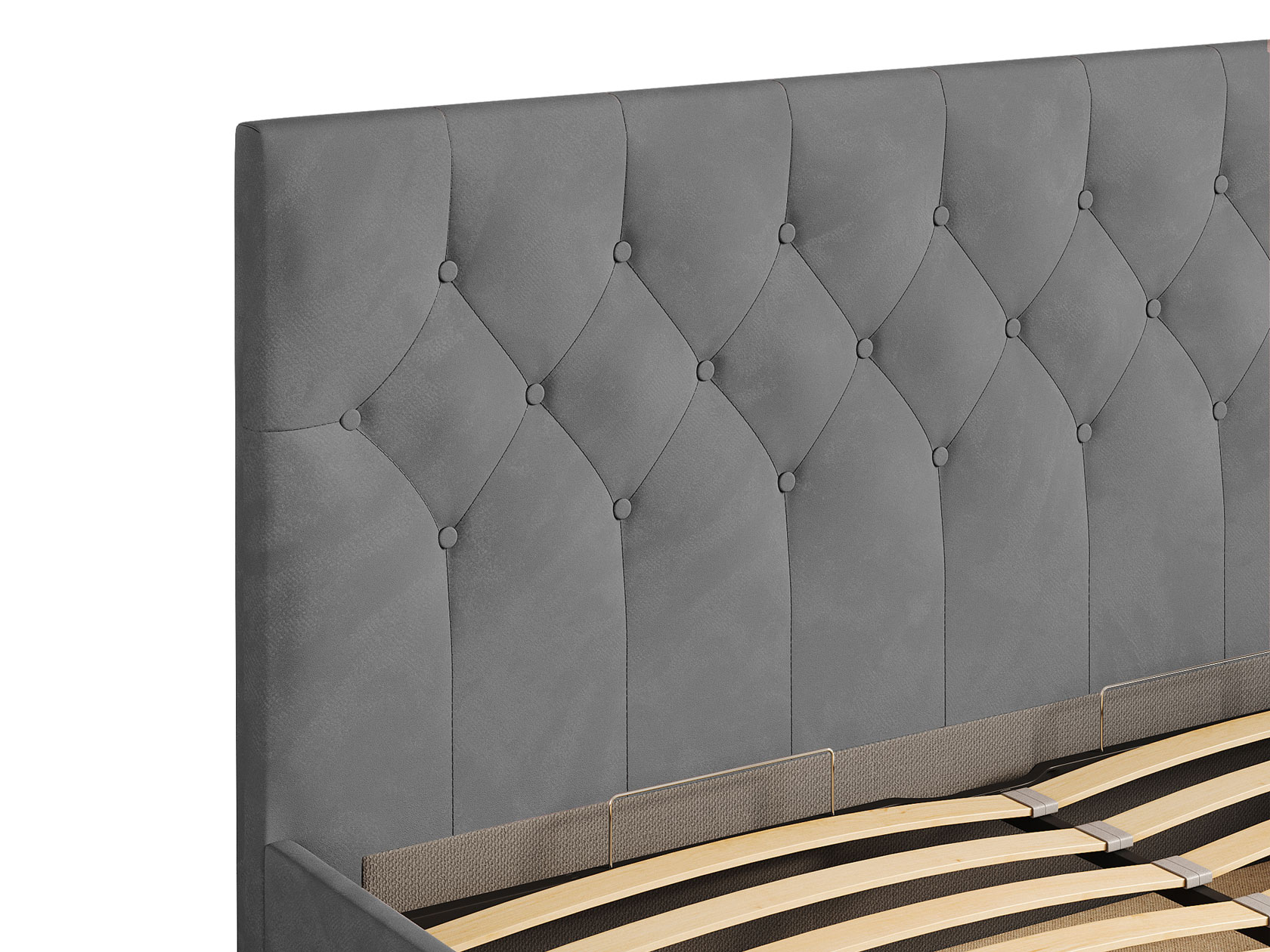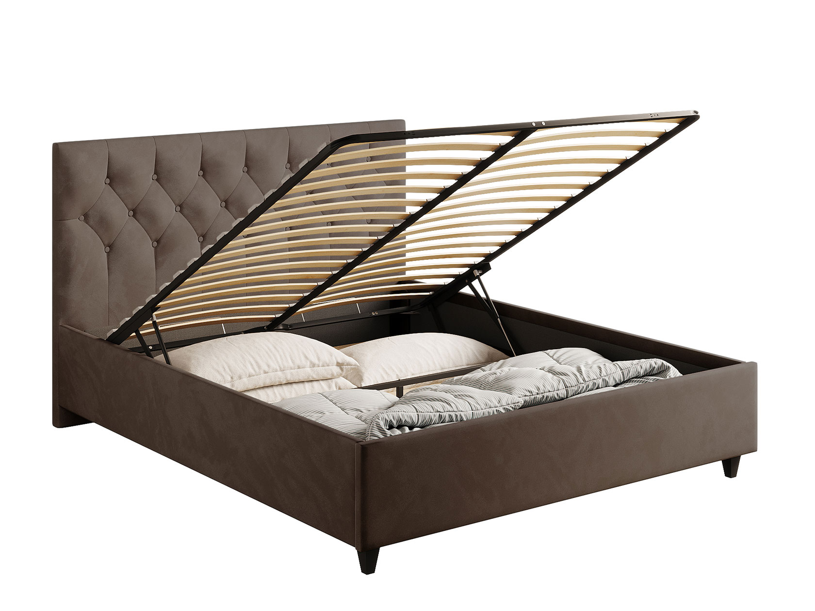 Кровать с подъемным механизмом Алье ПМ сочетает комфорт, практичность и элегантность. Мягкое изголовье с каретной стяжкой придает модели особую эстетику и обеспечивает удобную поддержку во время отдыха. Просторный бельевой короб создает дополнительную зону для хранения: внутри поместятся объемные одеяла, подушки и другие вещи. Небольшие ножки добавляют конструкции визуальную легкость и привлекательность.