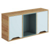 Детская полка Рич состоит из двух шкафчиков и ниши по центру. Дверцы защищают содержимое от пыли, а открытая секция отлично подходит для декора и вещей, которые часто нужны под рукой. В оформлении фасадов используются приятная цветовая гамма и эргономичные вырезы вместо традиционных ручек.