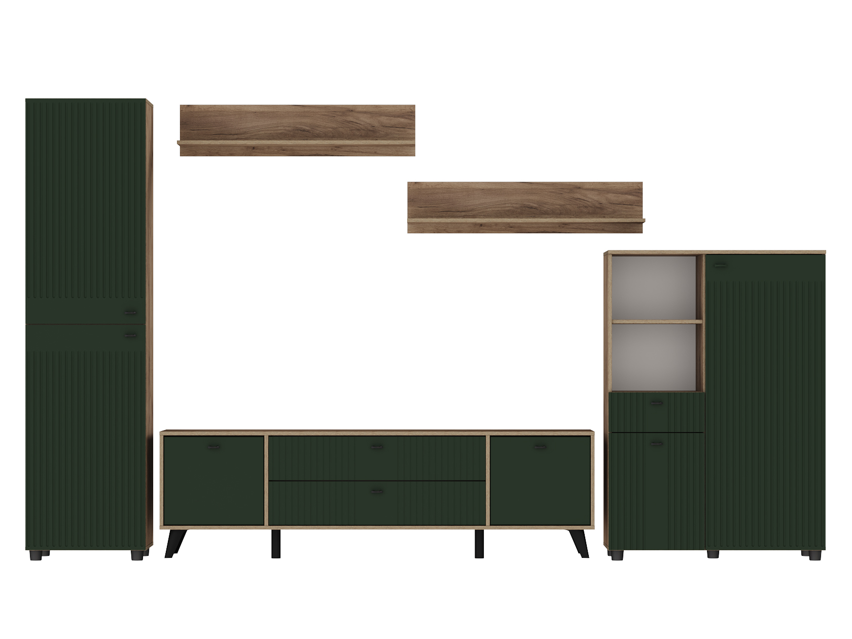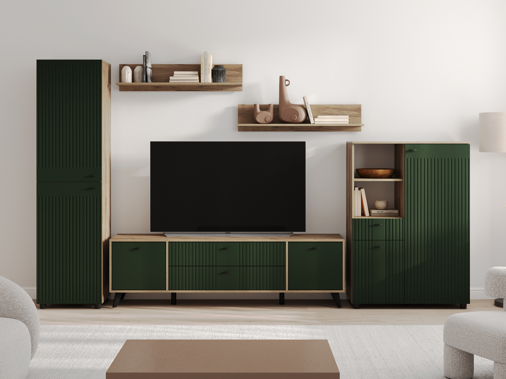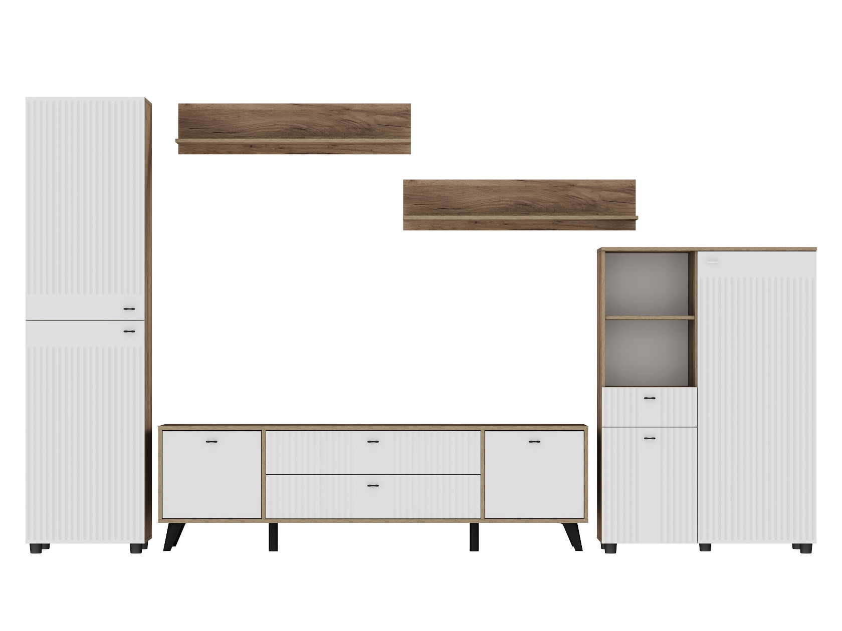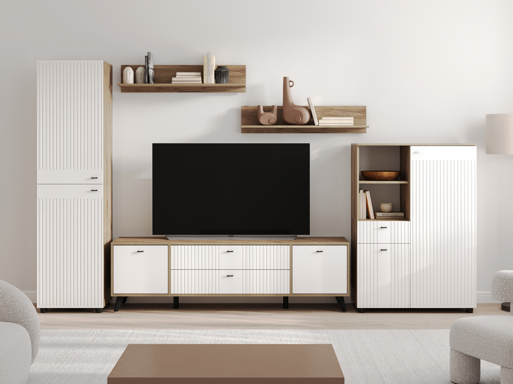 Гостиная Милан Стандарт представляет идеальный баланс эстетики и продуманного функционала. В наборе есть всё необходимое для удобного хранения вещей и мультимедийной техники, а также размещения декора. Матовые фасады и изящные ручки подчеркивают утонченность мебели, а сочетание фактуры дерева с вертикальными линиями фрезеровки создает стильный и уютный интерьер.