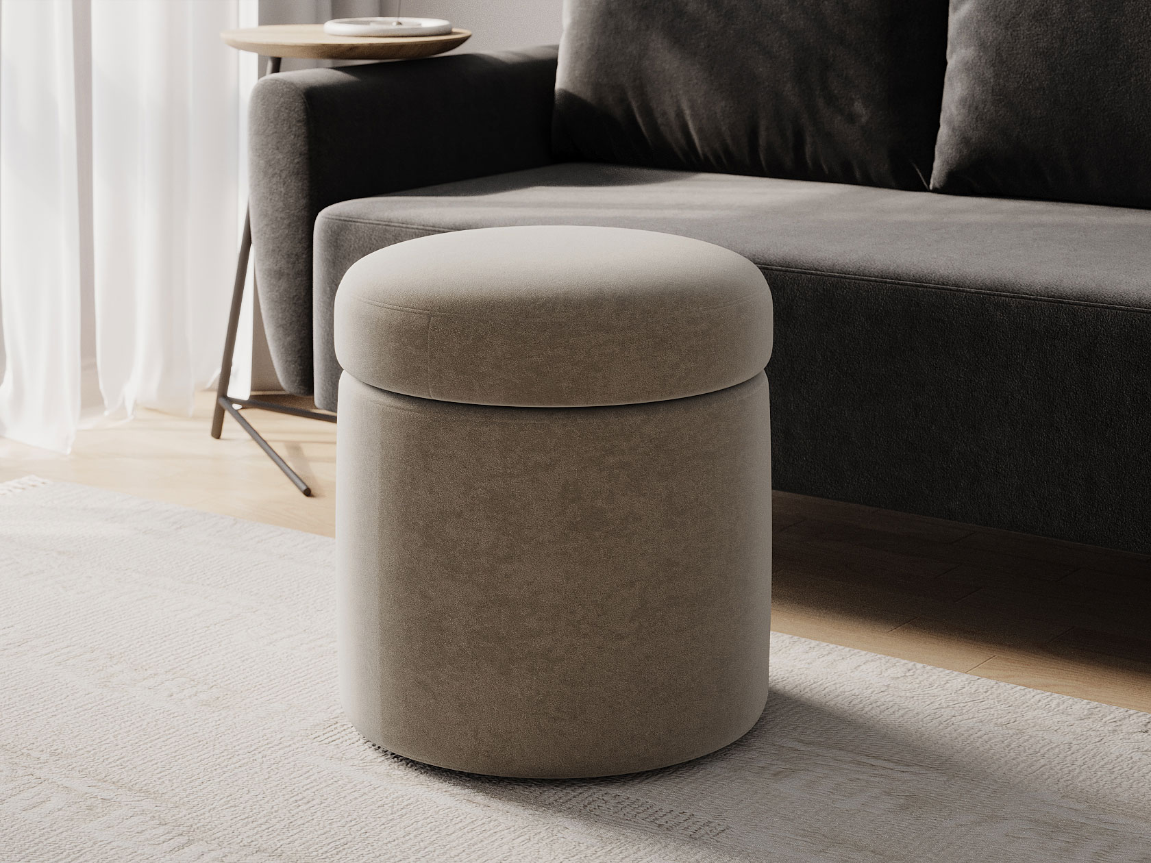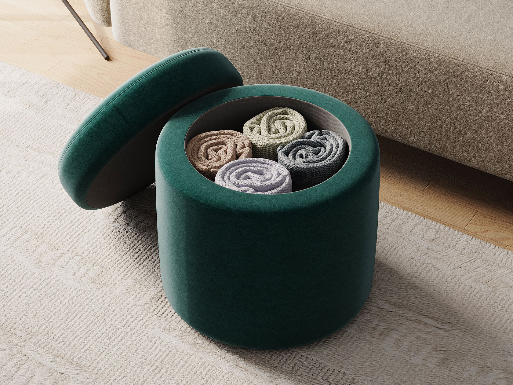 Пуфик Тондо Мини можно поставить рядом с креслом или диваном, использовать в качестве банкетки в прихожей либо спальне. Обивка устойчива к износу, а также легко чистится от пыли и пятен. Ниша для хранения делает модель еще удобнее.