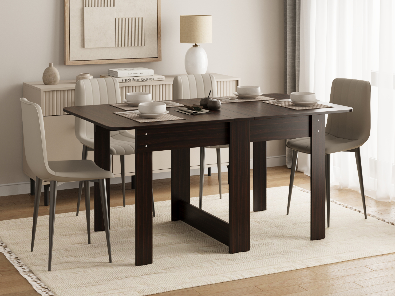 Чтобы разложить стол, нужно приподнять столешницу за края и установить ее на выдвигающиеся ножки.