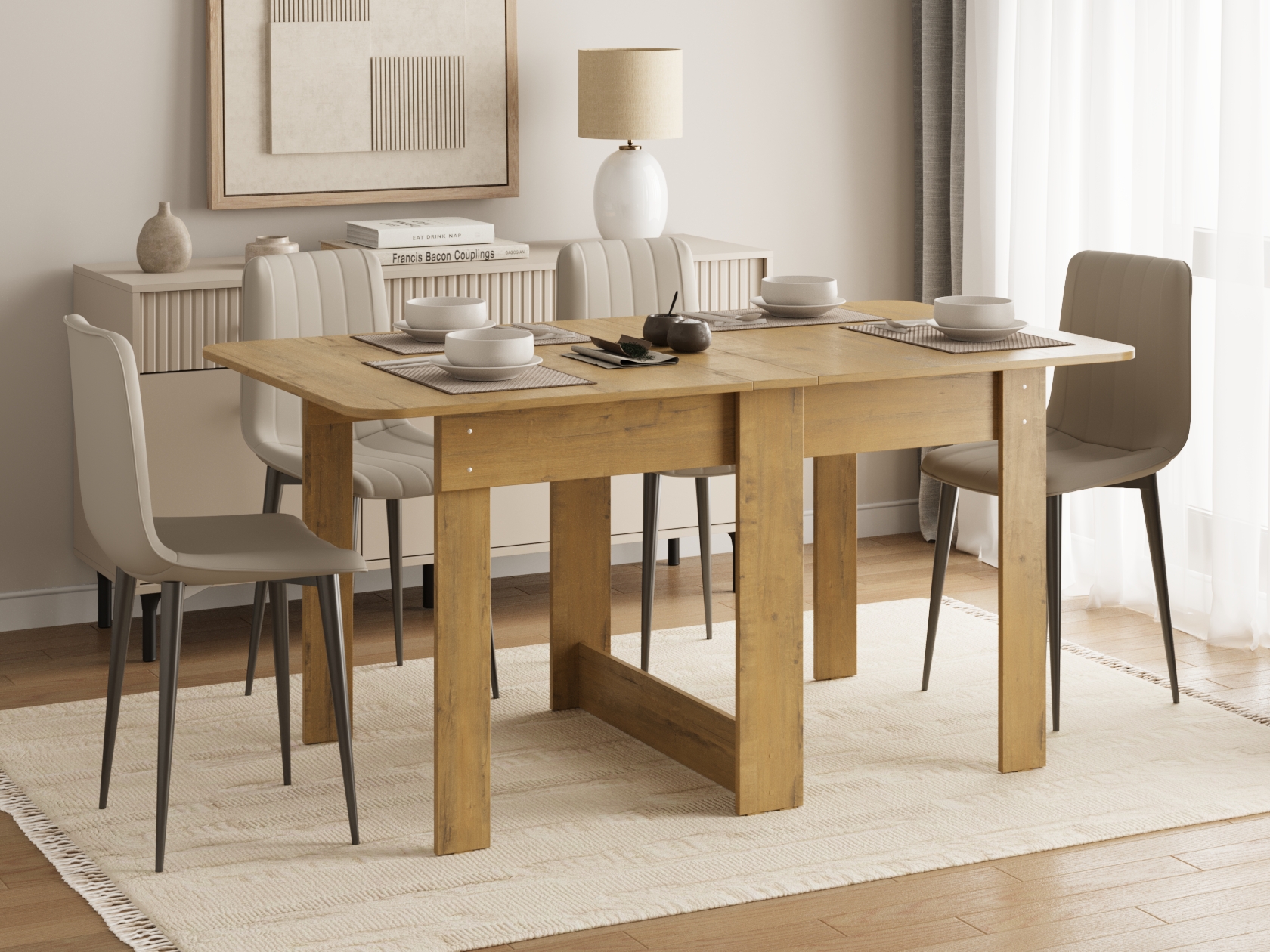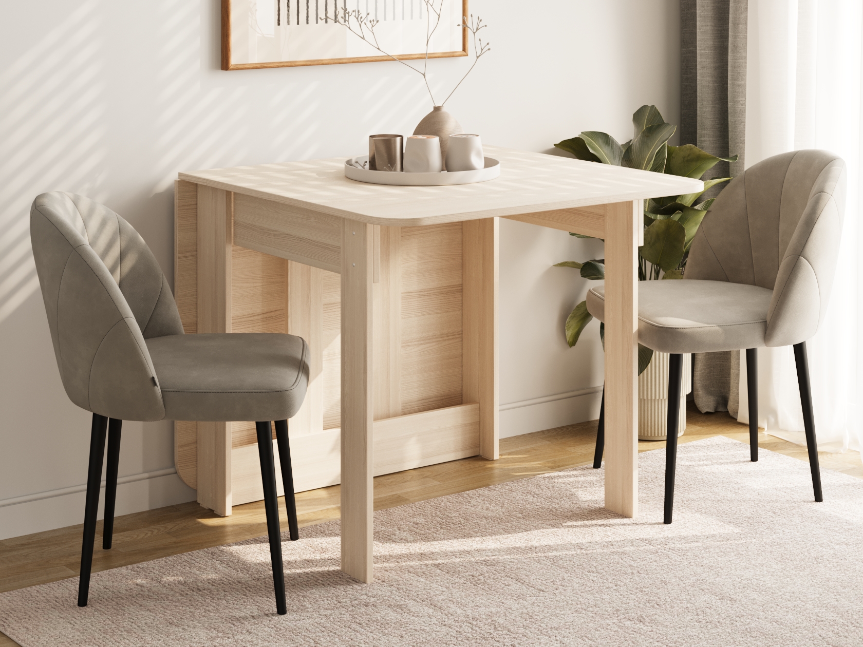 Стол-книжка Тайга Миди станет практичным решением для небольшой квартиры. В сложенном виде прямоугольная модель не занимает много места, а с помощью простого механизма трансформации легко превращается в более просторную. Отсутствие острых углов обеспечивает безопасную эксплуатацию, а надежные опоры гарантируют устойчивость.