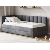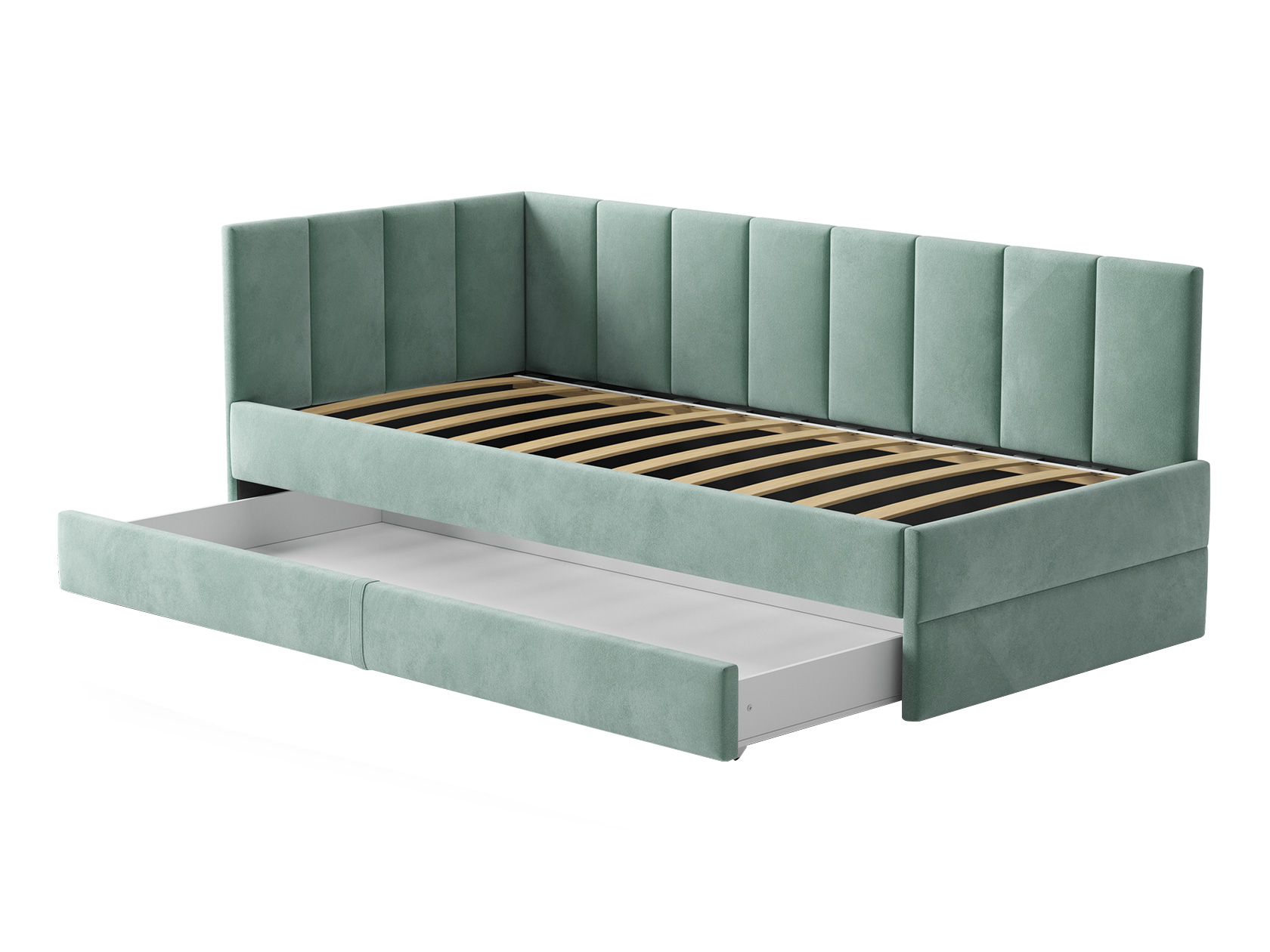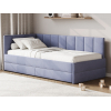 Тахта Астра позволит обустроить уютное место для сна, которое будет актуально смотреться в любом интерьере. Мягкая обивка приятна на ощупь и создает дополнительные безопасность и комфорт. Спинка украшена декоративной строчкой. Основание с ламелями обеспечивает приток воздуха к матрасу. Выкатной ящик на роликовых опорах поможет аккуратно хранить постельные принадлежности.