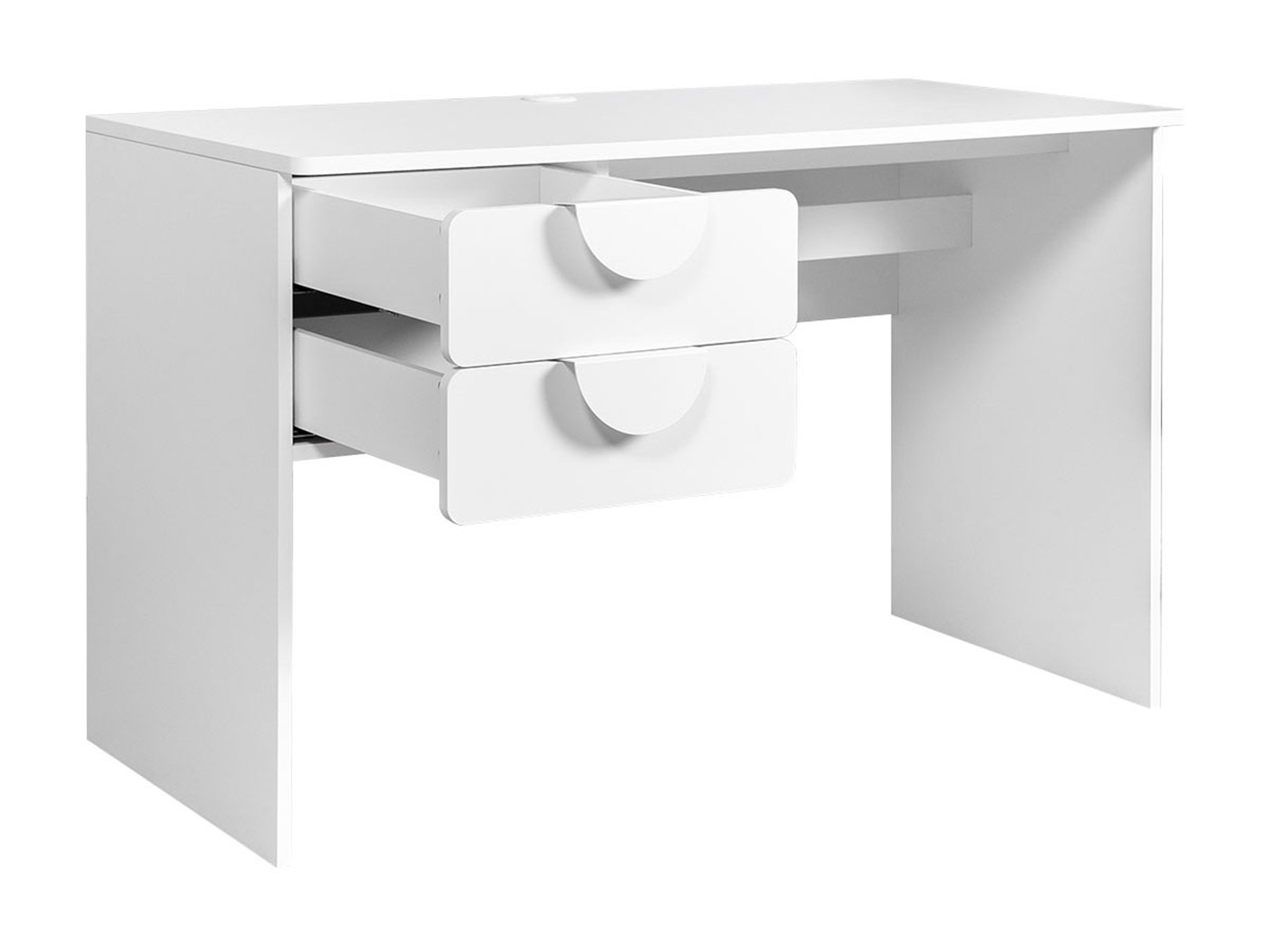 Детский письменный стол Пикси оснащен двумя выдвижными ящиками, где удобно хранить канцелярские принадлежности, тетради и любые нужные мелочи. Площадь столешницы позволяет установить лампу, монитор или ноутбук, при этом останется достаточно места для выполнения домашних заданий. Современный дизайн с оригинальными ручками на фасадах легко интегрировать в большинство интерьеров.