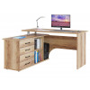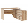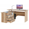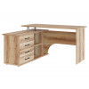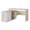 Угловой компьютерный стол Порту с двумя рабочими поверхностями для организации рабочей зоны дома и в офисе. Основная столешница имеет ширину позволяющую разместить компьютер и рабочие материалы. На малой столешнице удобно держать под рукой книги, папки, канцелярию. Стол оборудован тумбой с четырьмя ящиками на роликовых направляющих, открытыми полками и нишей под системный блок. Такая модель компьютерного стола позволяет организовать функциональную рабочую зону как в домашнем кабинете, так и в офисе.