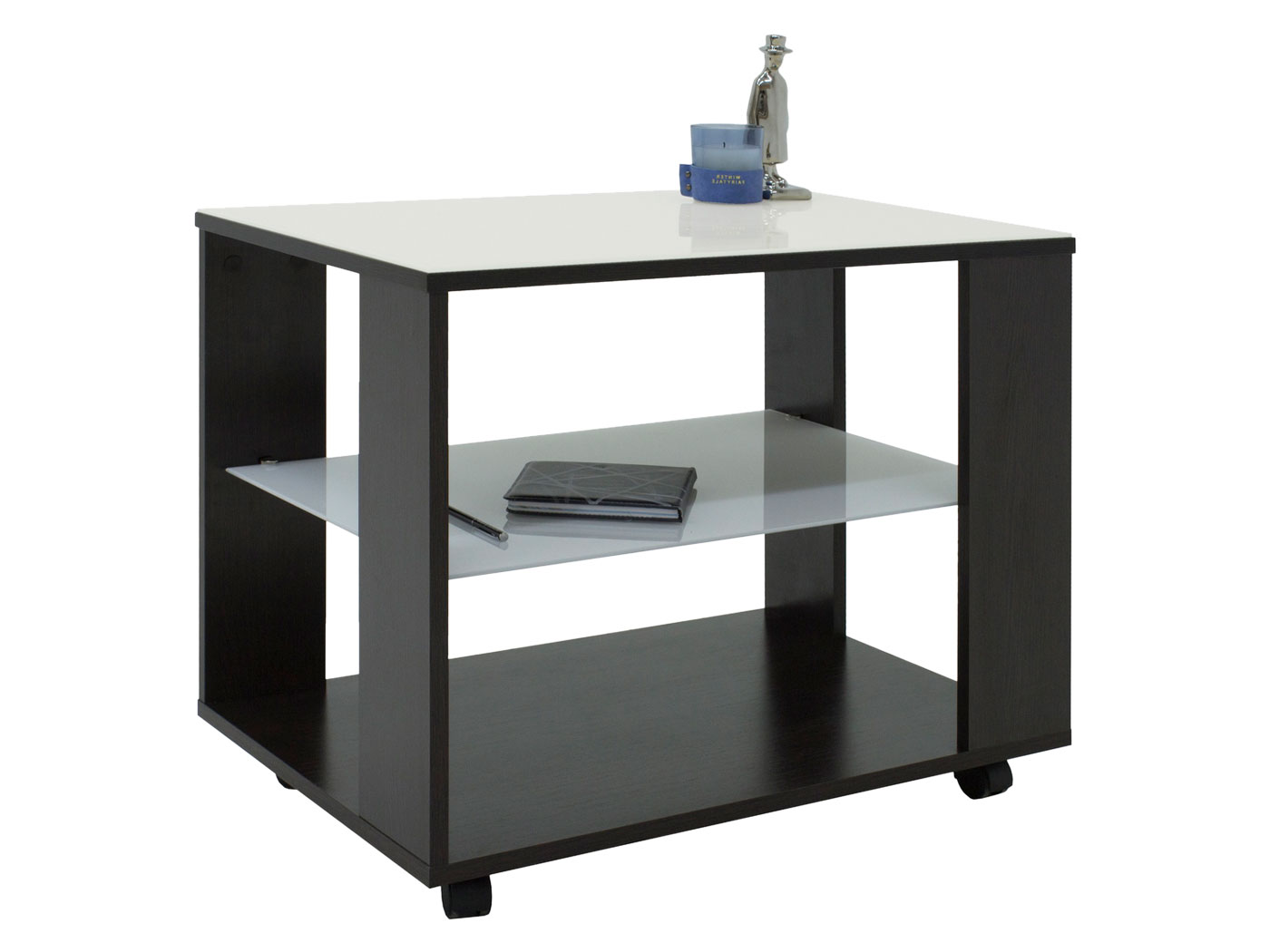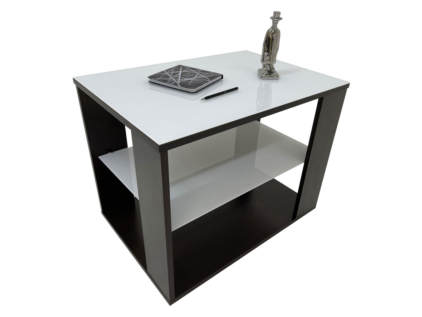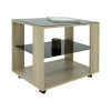 Современный журнальный столик Бьюти 5, выполненный в сочетании деревянных и стеклянных элементов, отлично дополнит интерьер гостиной или спальни. Модель имеет широкую столешницу и две полки для самых разных мелочей. В основании есть четыре колесика, которые позволяют легко перемещать столик по комнате.