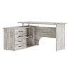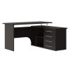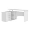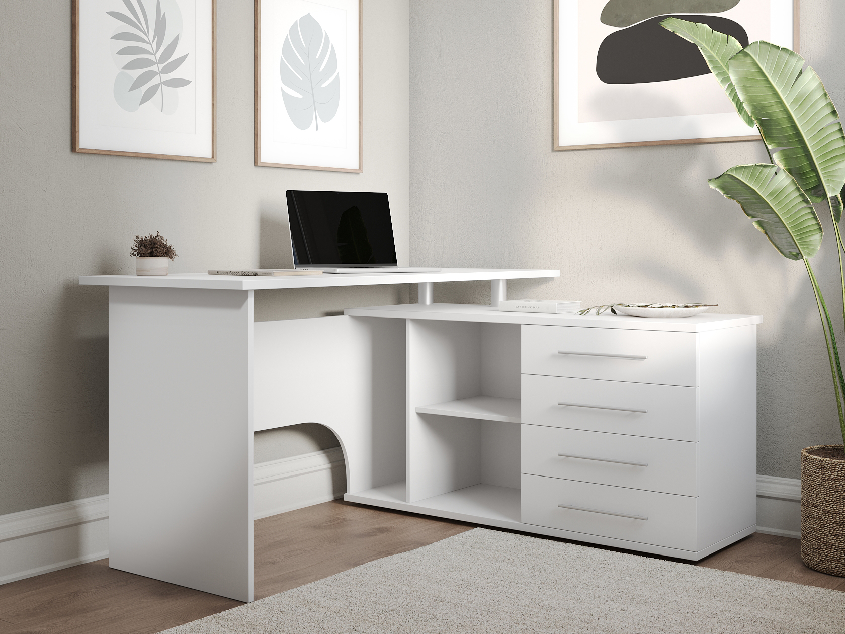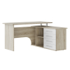 Угловой компьютерный стол Порту с двумя рабочими поверхностями для организации рабочей зоны дома и в офисе. Основная столешница имеет ширину позволяющую разместить компьютер и рабочие материалы. На малой столешнице удобно держать под рукой книги, папки, канцелярию. Стол оборудован тумбой с четырьмя ящиками на роликовых направляющих, открытыми полками и нишей под системный блок. Такая модель компьютерного стола позволяет организовать функциональную рабочую зону как в домашнем кабинете, так и в офисе.