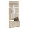 Маленькая прихожая Моренго 11 позволит разместить сезонную одежду всей семьи. Вешалка состоит из трех панелей, соединенных металлическими вставками. На верхней панели есть четыре металлических трехрожковых крючка для одежды. Полка, закрепленная над крючками и предназначена специально для головных уборов и зонтов.