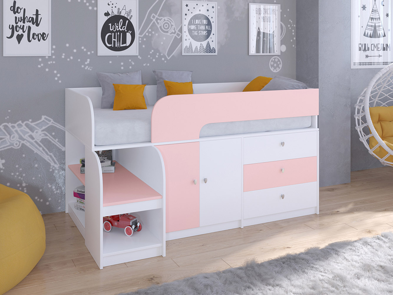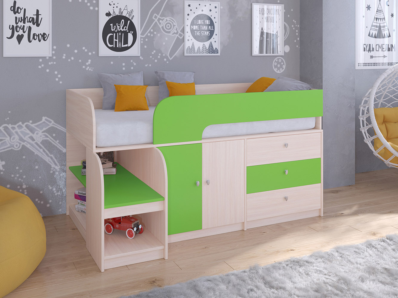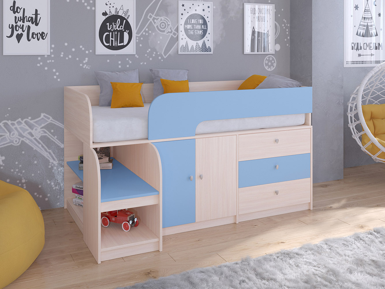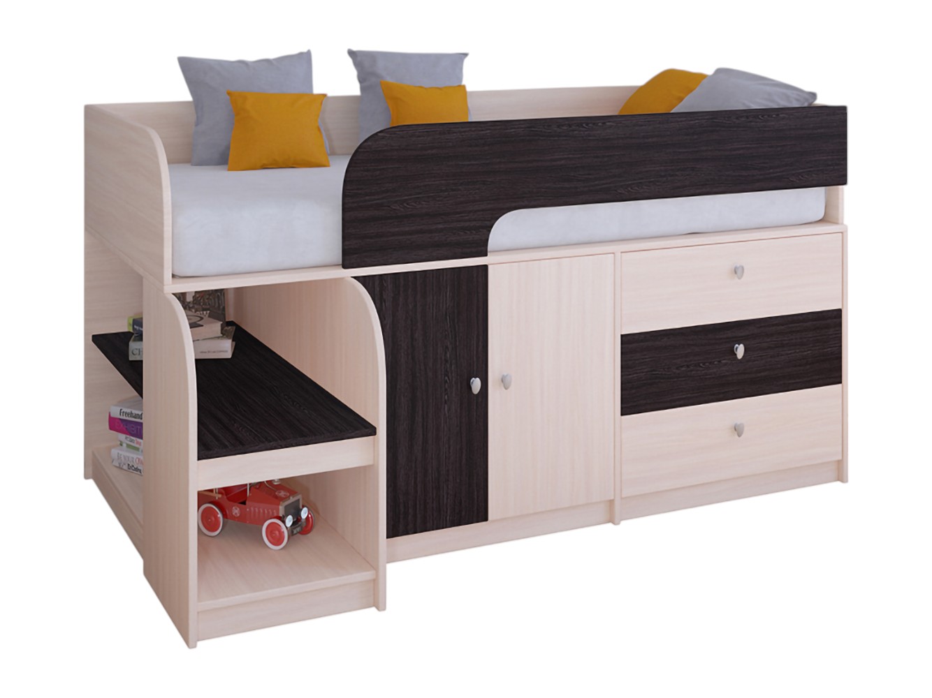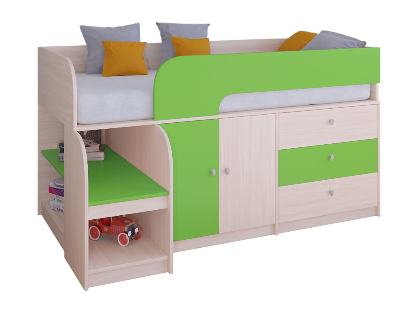 Кровать-чердак Астра-9/1 станет роскошной находкой для ценителей компактности, практичности и функциональности. Большое количество мест для хранения вещей и игрушек поможет малышу самому научиться наводить порядок. Все края имеют безопасные скругления.