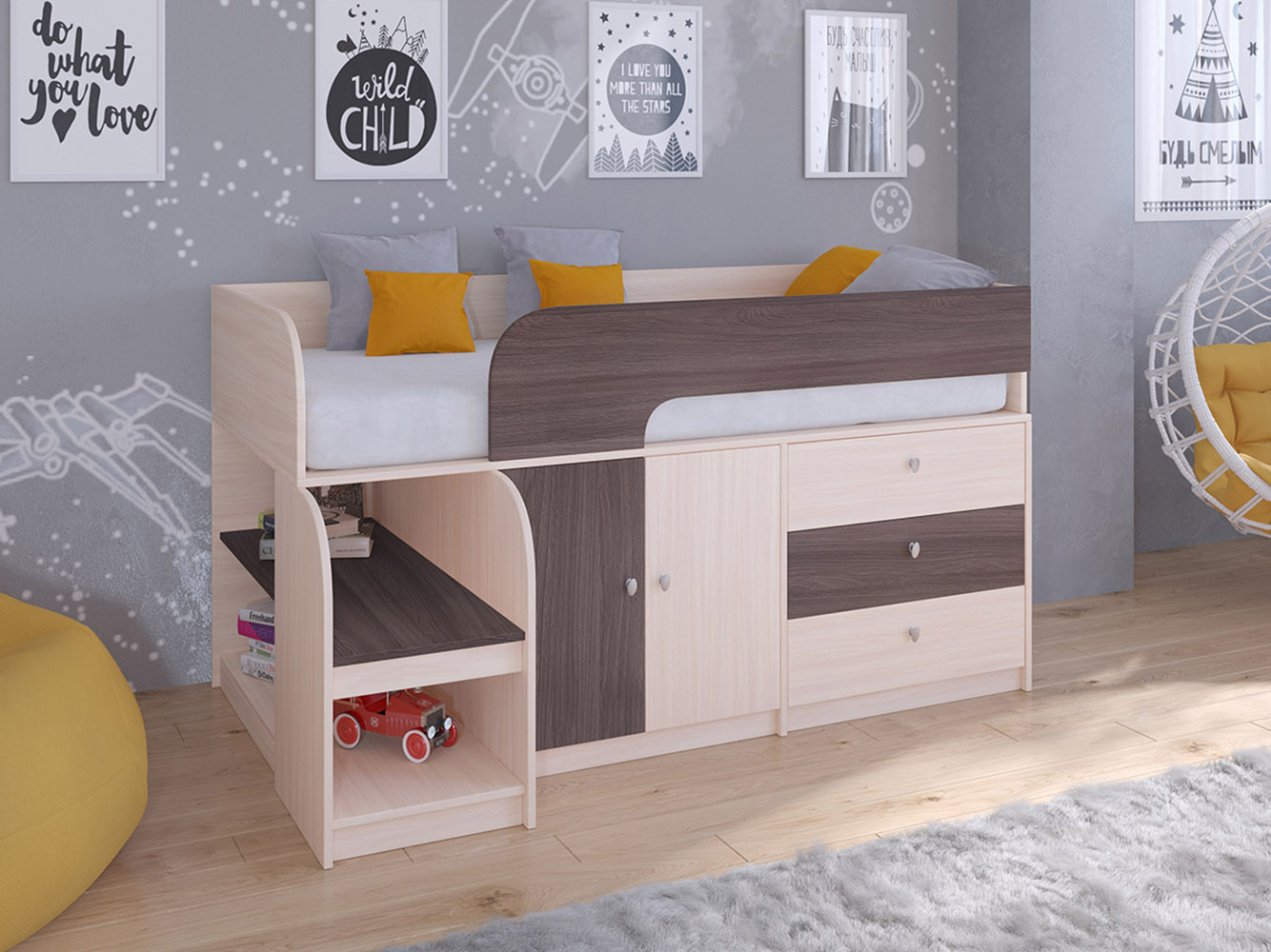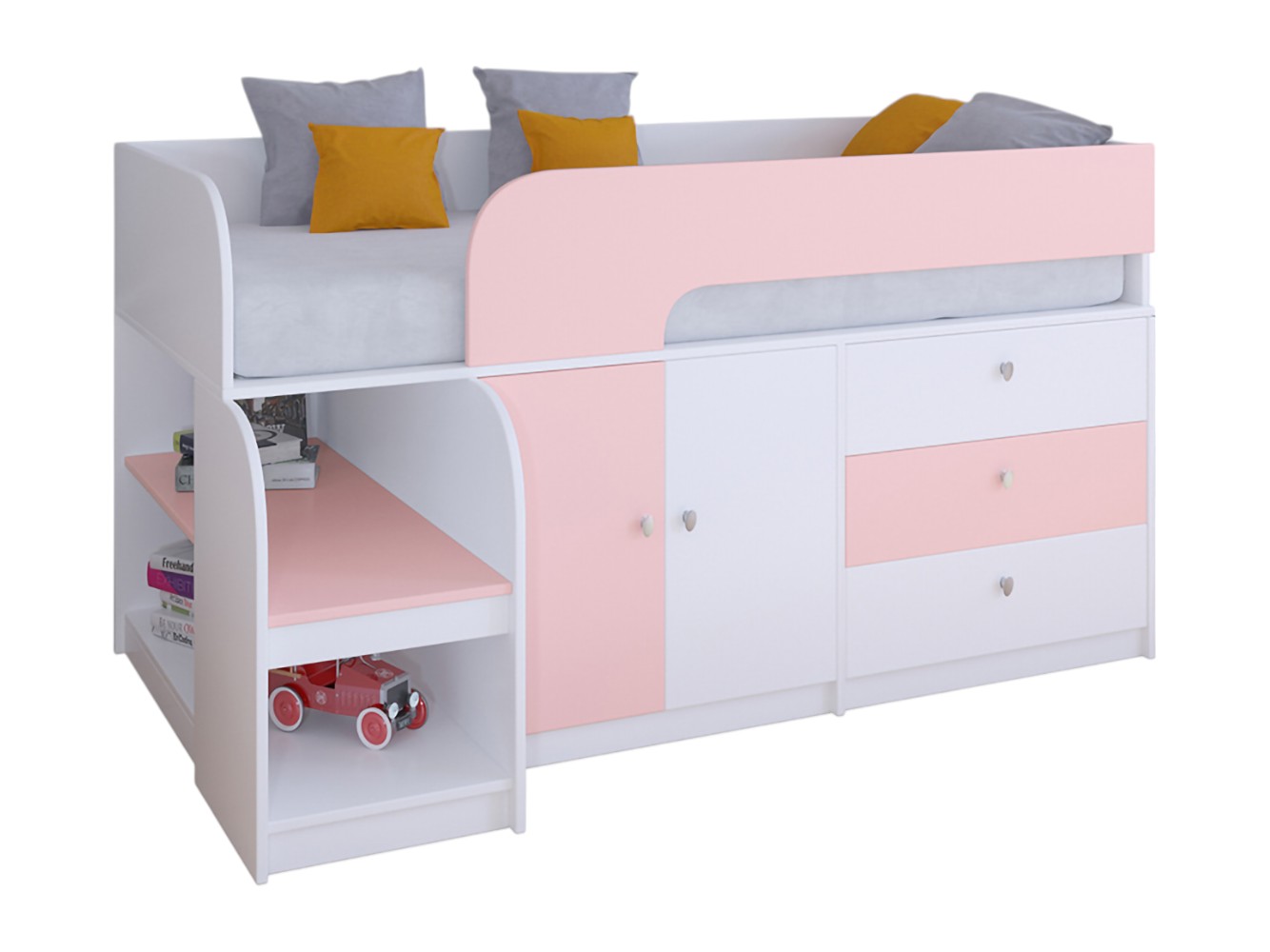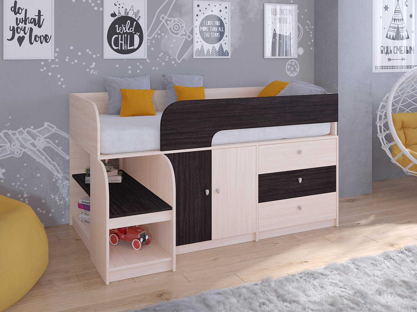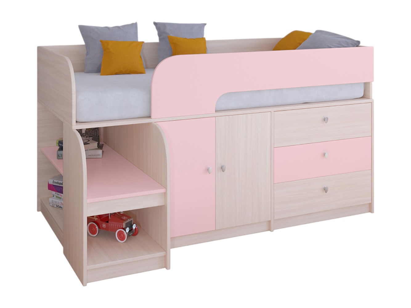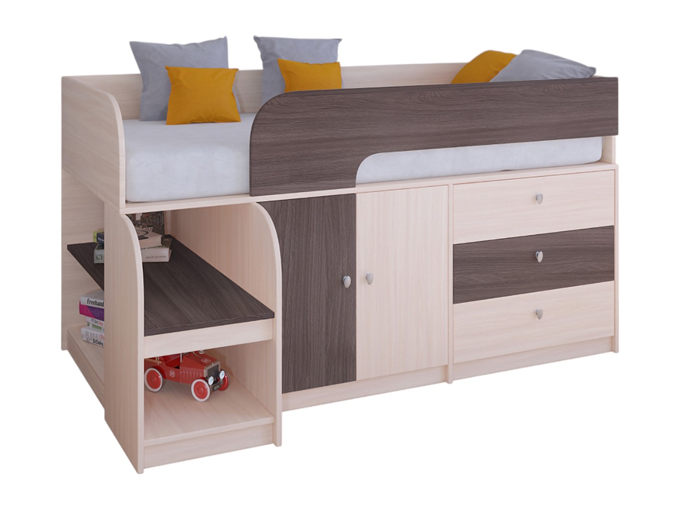 Кровать-чердак Астра-9/1 станет роскошной находкой для ценителей компактности, практичности и функциональности. Большое количество мест для хранения вещей и игрушек поможет малышу самому научиться наводить порядок. Все края имеют безопасные скругления.