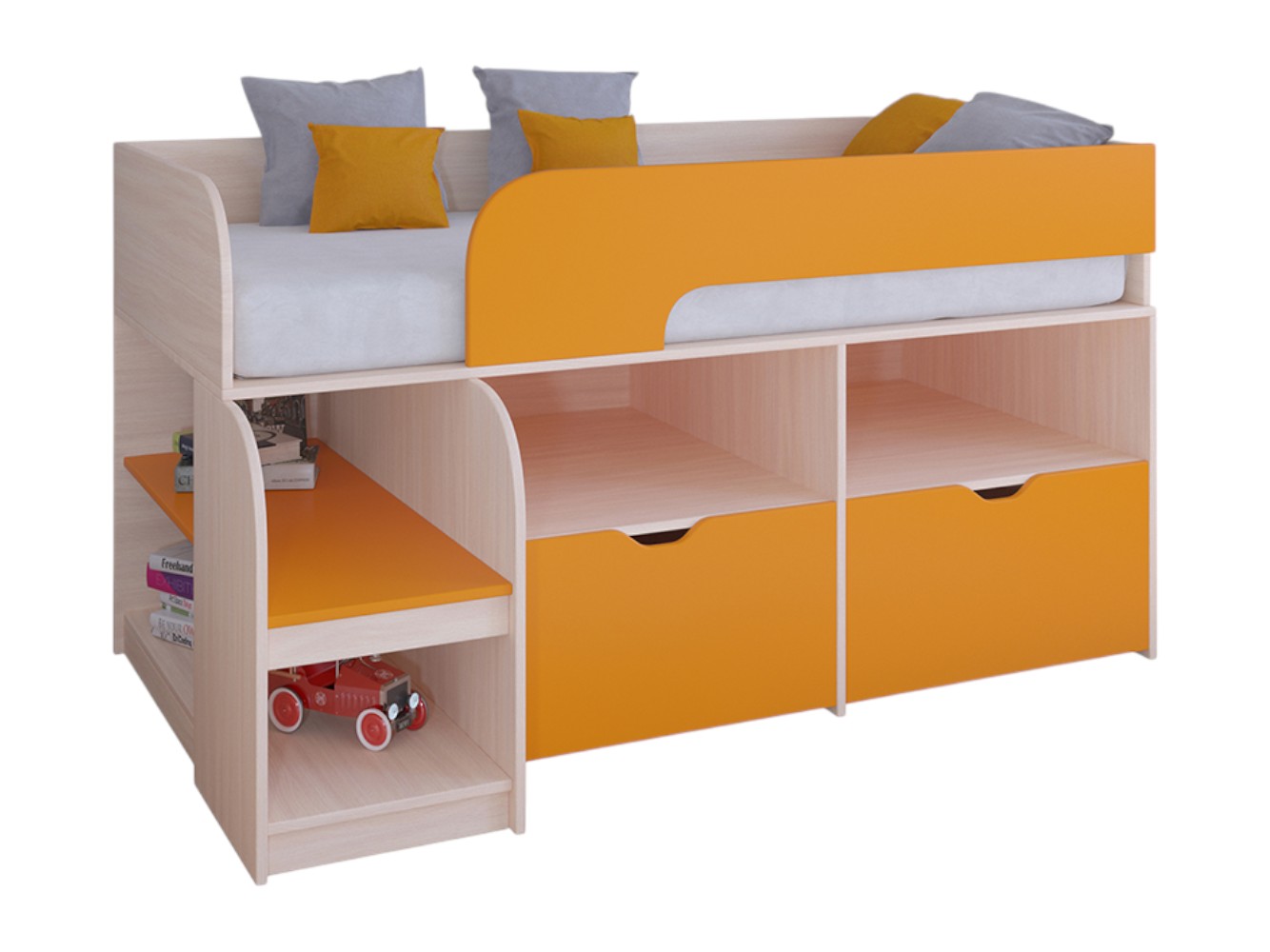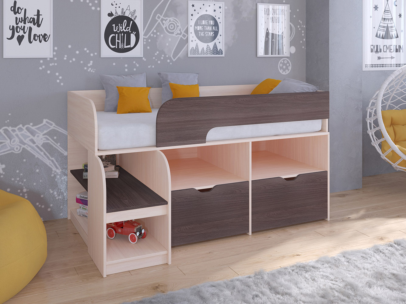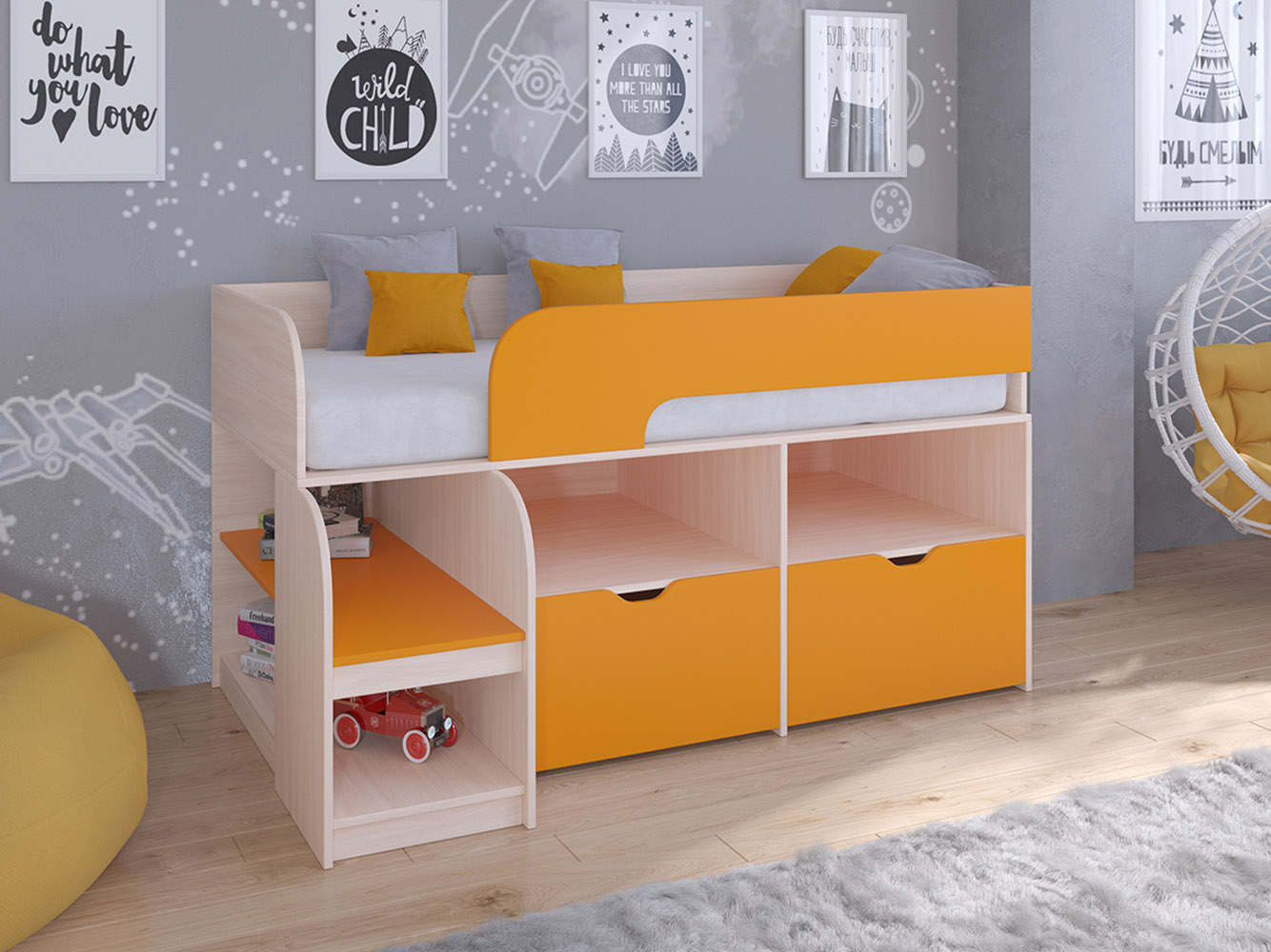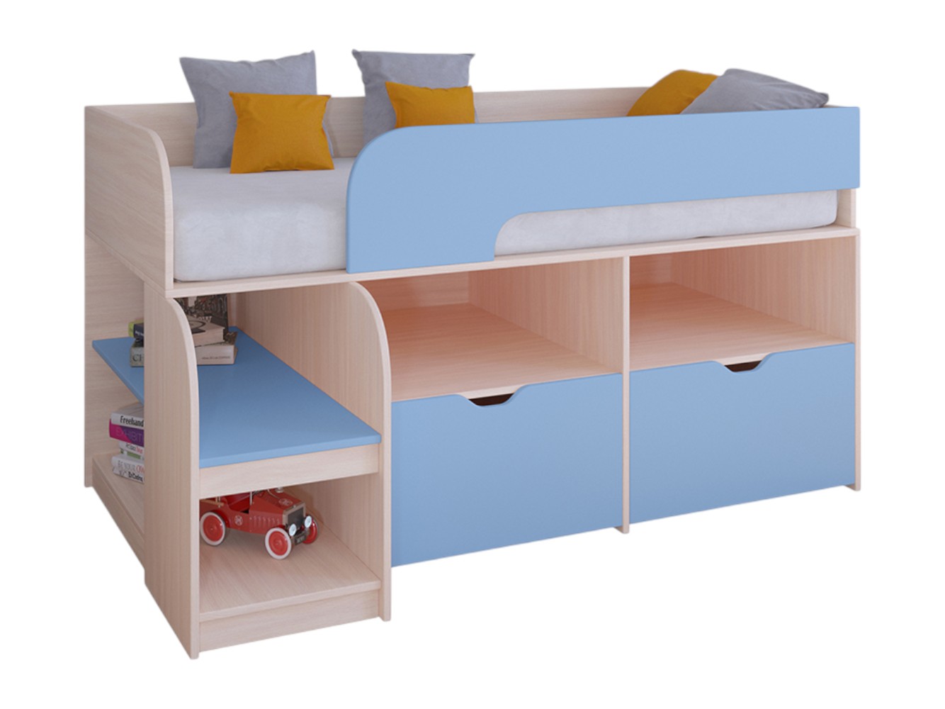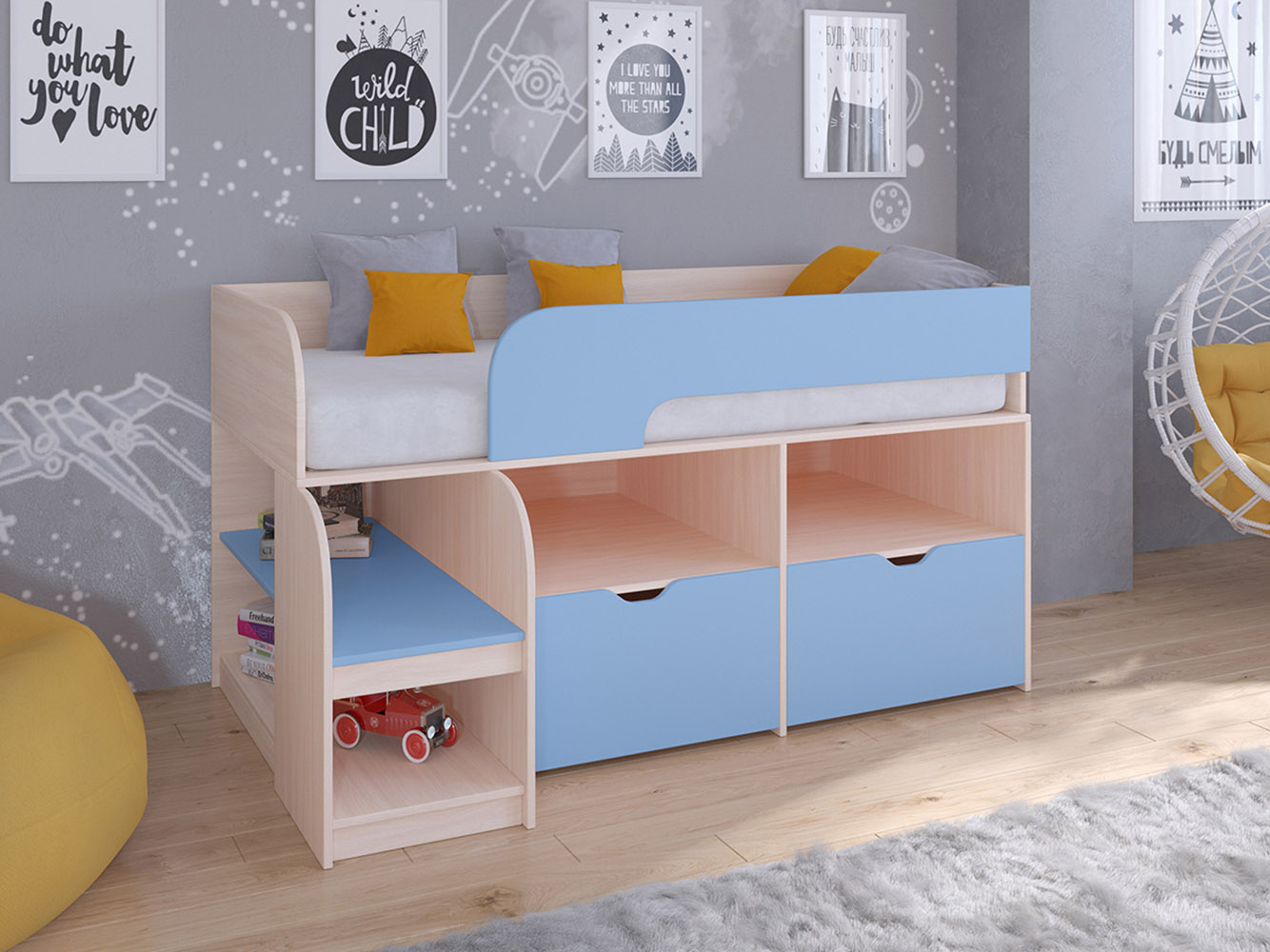 Кровать-чердак Астра-9/6 является функциональным предметом мебели, выполненным в ярком и привлекательном стиле. Комплекс имеет небольшой размер и станет идеальным вариантом для маленькой детской комнаты.