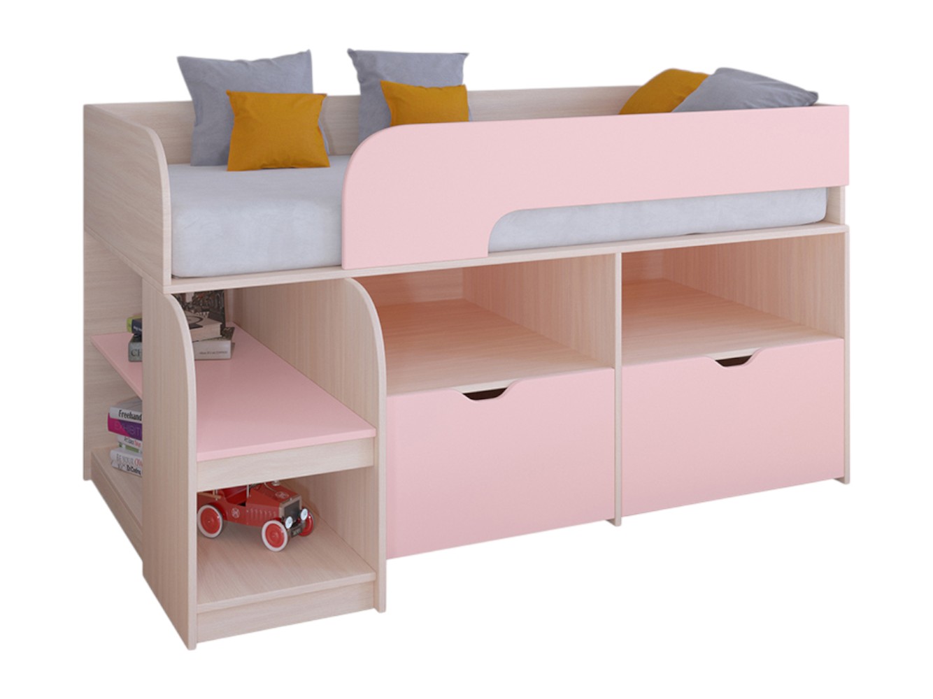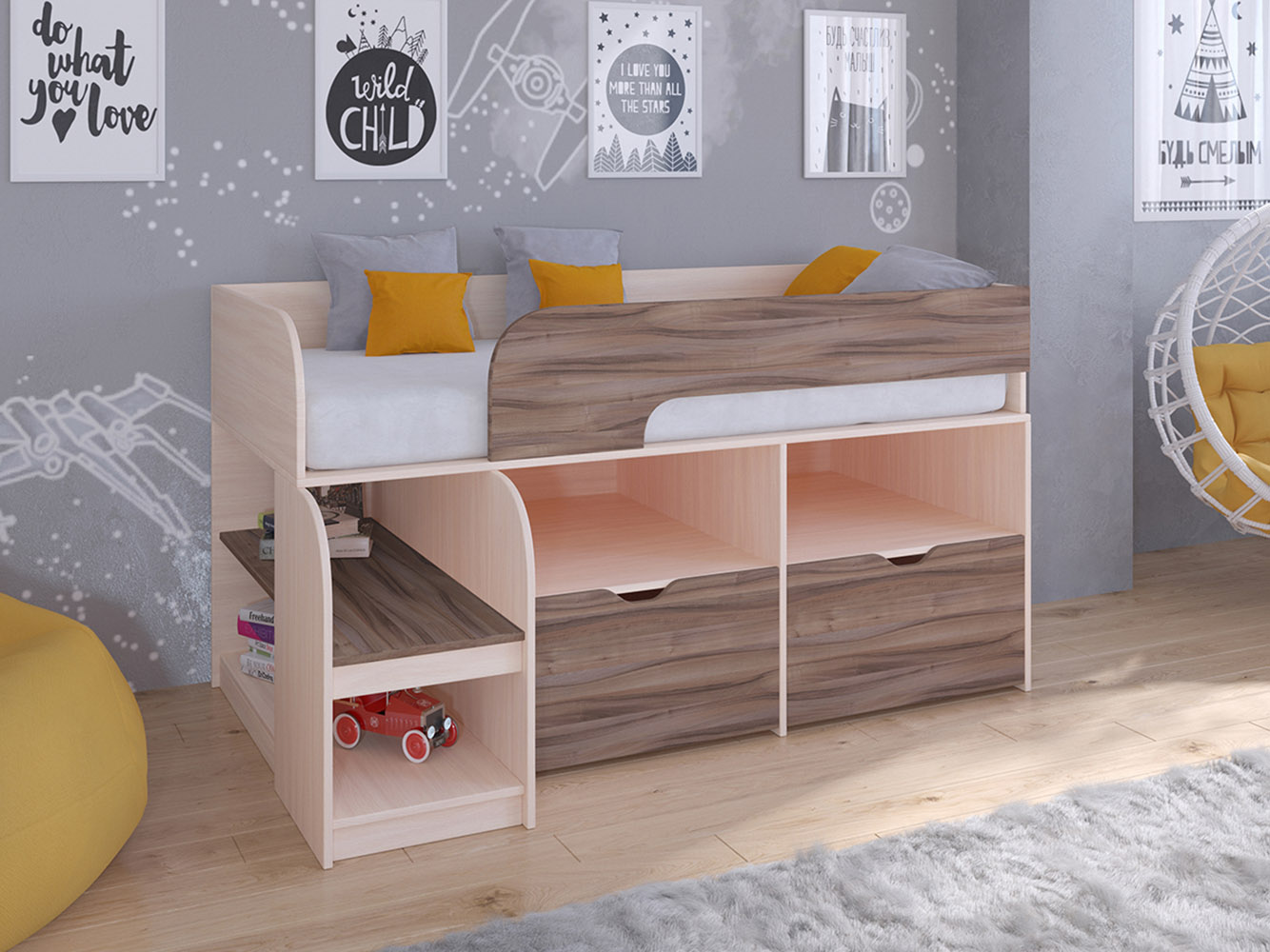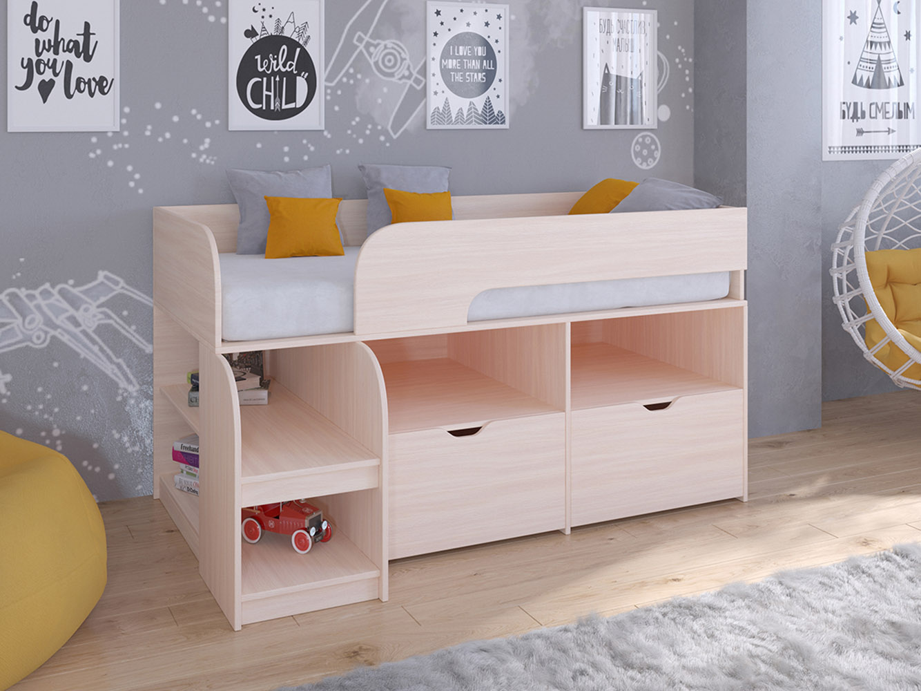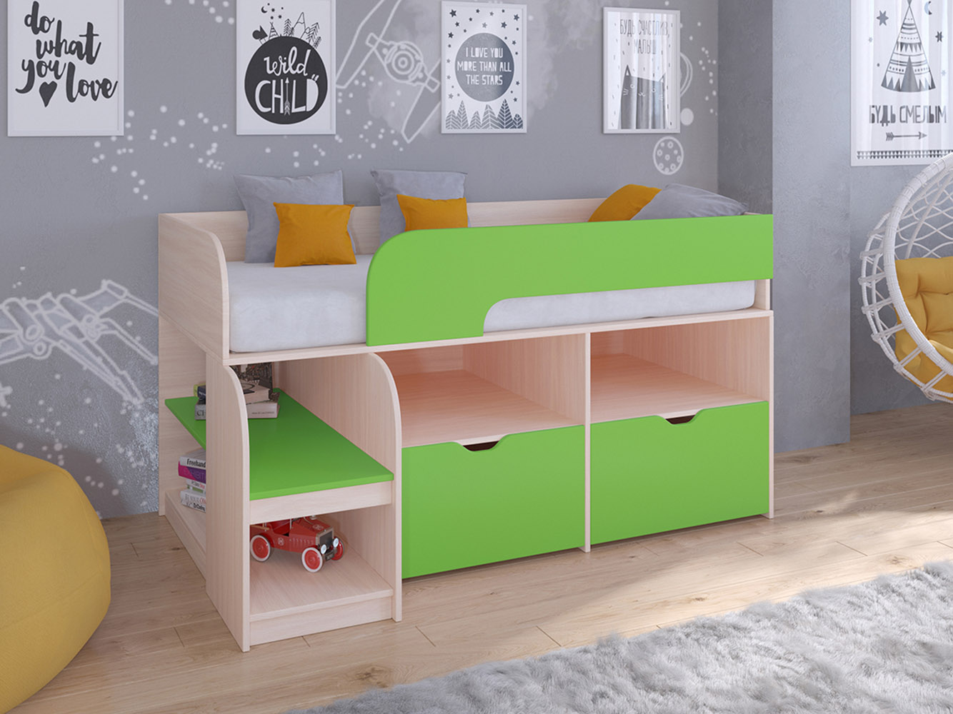 Кровать-чердак Астра-9/6 является функциональным предметом мебели, выполненным в ярком и привлекательном стиле. Комплекс имеет небольшой размер и станет идеальным вариантом для маленькой детской комнаты.