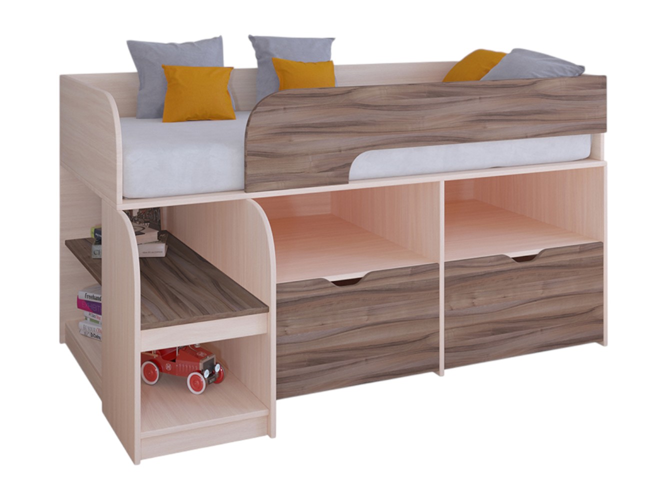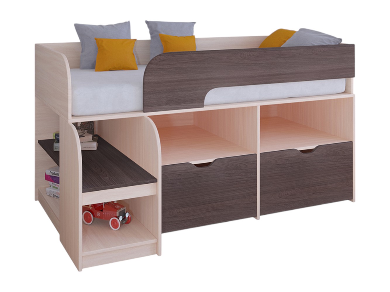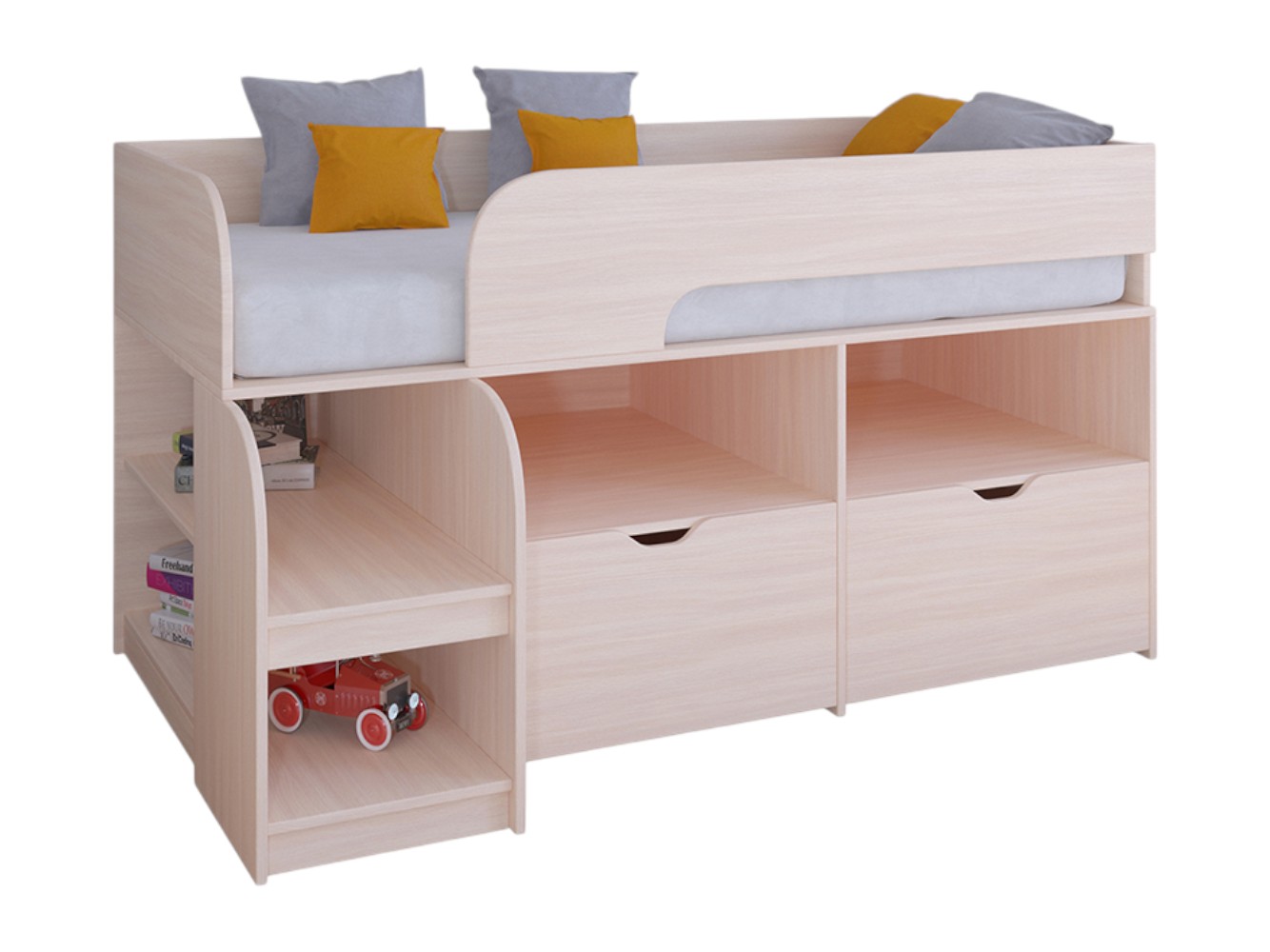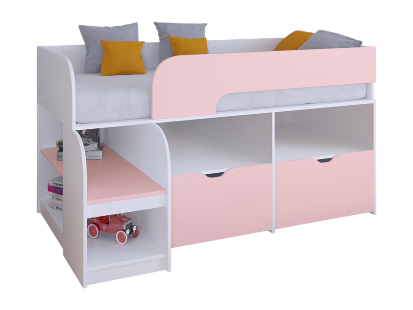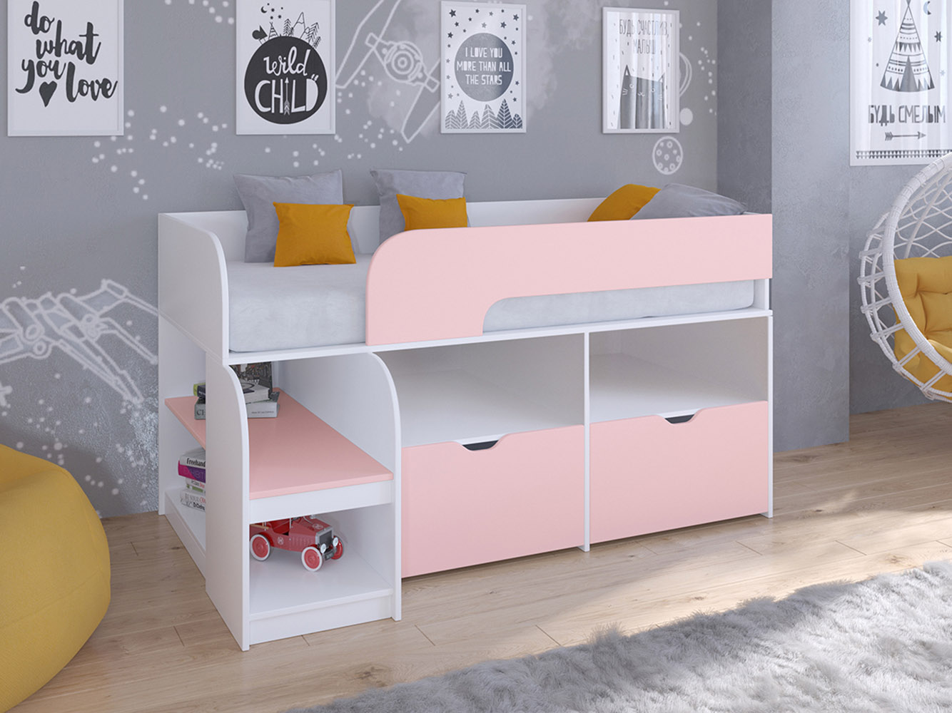Кровать-чердак Астра-9/6 является функциональным предметом мебели, выполненным в ярком и привлекательном стиле. Комплекс имеет небольшой размер и станет идеальным вариантом для маленькой детской комнаты.