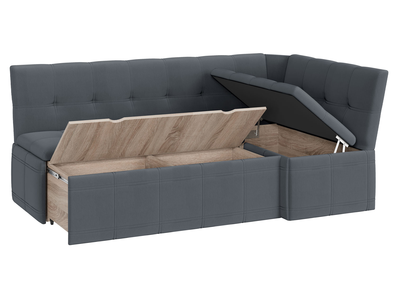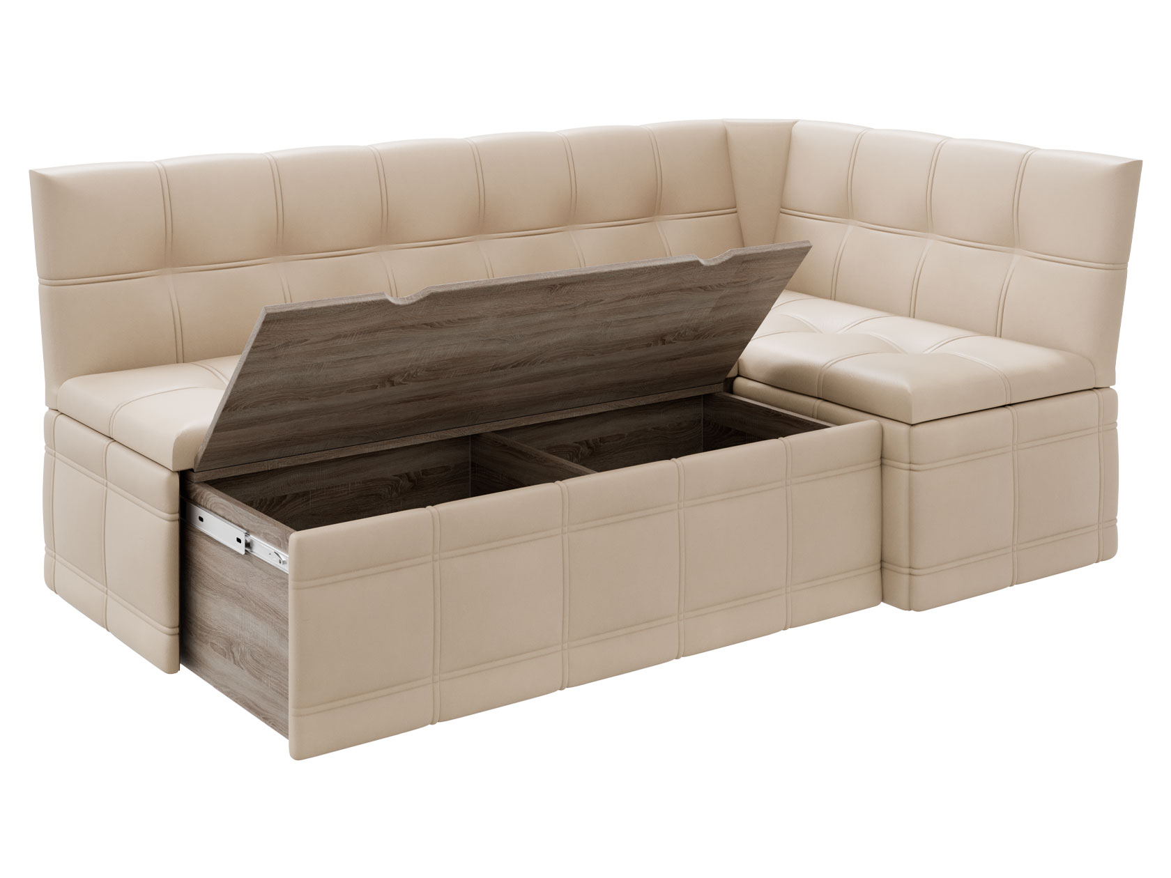 Угловая скамья Квадро — просторная и элегантная модель, которая поможет оборудовать пространство для отдыха в гостиной, на кухне, на даче. Выдвижной ящик быстро трансформирует диван в комфортное место для сна. Во внутреннем коробе удобно хранить белье, посуду и другие необходимые вещи.