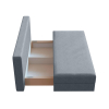 Компактный прямой диван Челси станет удачным приобретением для небольшой квартиры, дома или дачи. С помощью простого и надежного механизма он легко превращается в удобное место для сна. В бельевых ящиках можно хранить приспинные подушки, постельные принадлежности и другие нужные вещи.