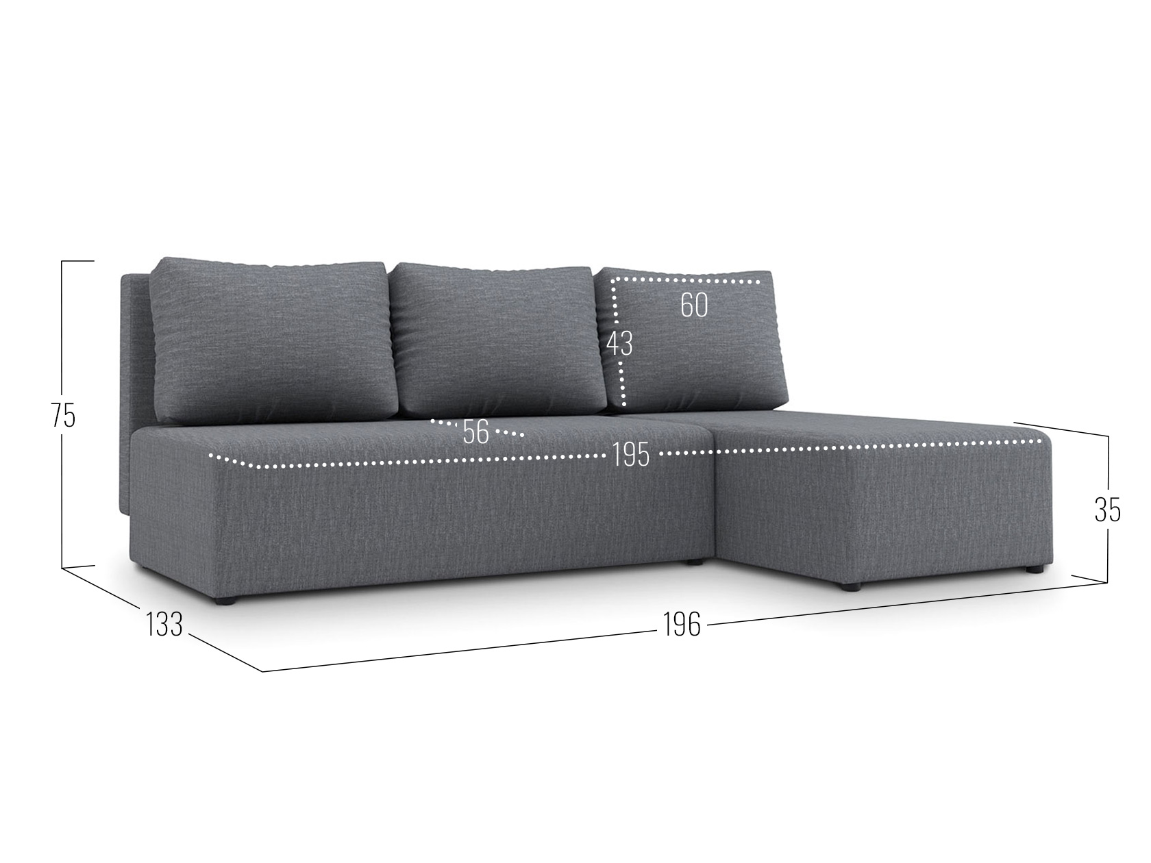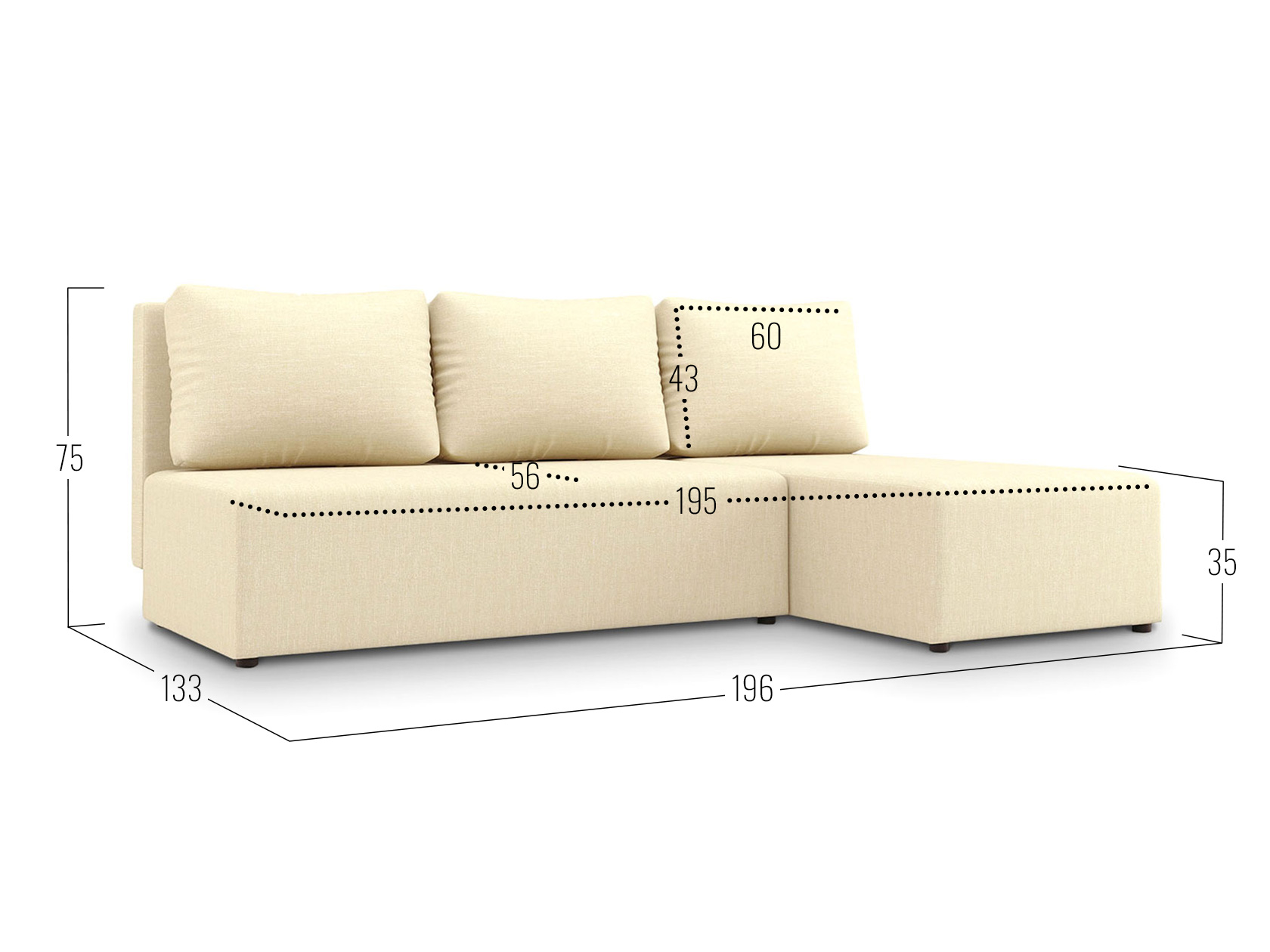 Стильный угловой диван Комо — прекрасный вариант для гостиной или спальни. Модель будет отлично смотреться в любом современном интерьере. Отсутствие подлокотников и декоративных излишеств станет преимуществом в небольшом пространстве.