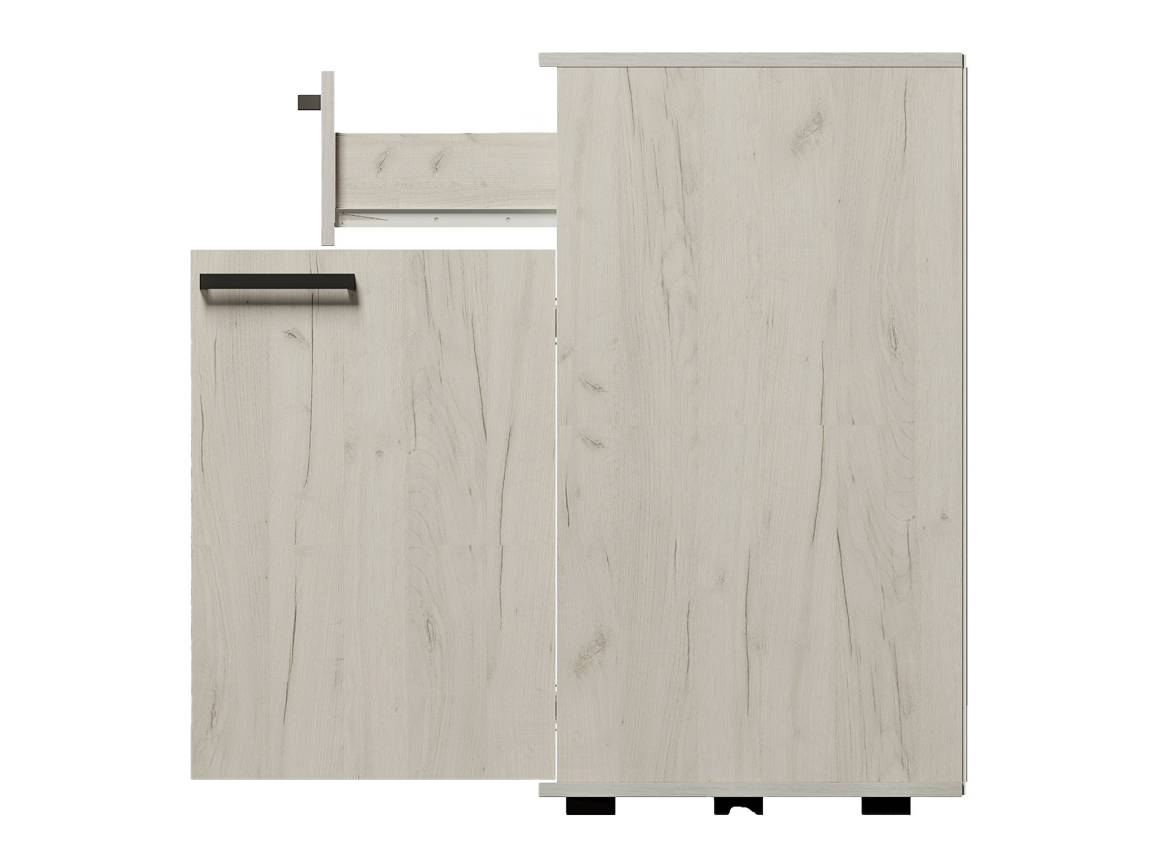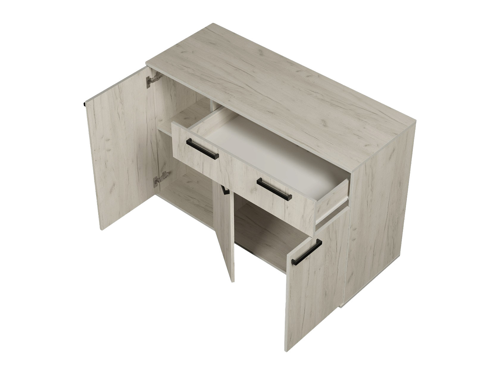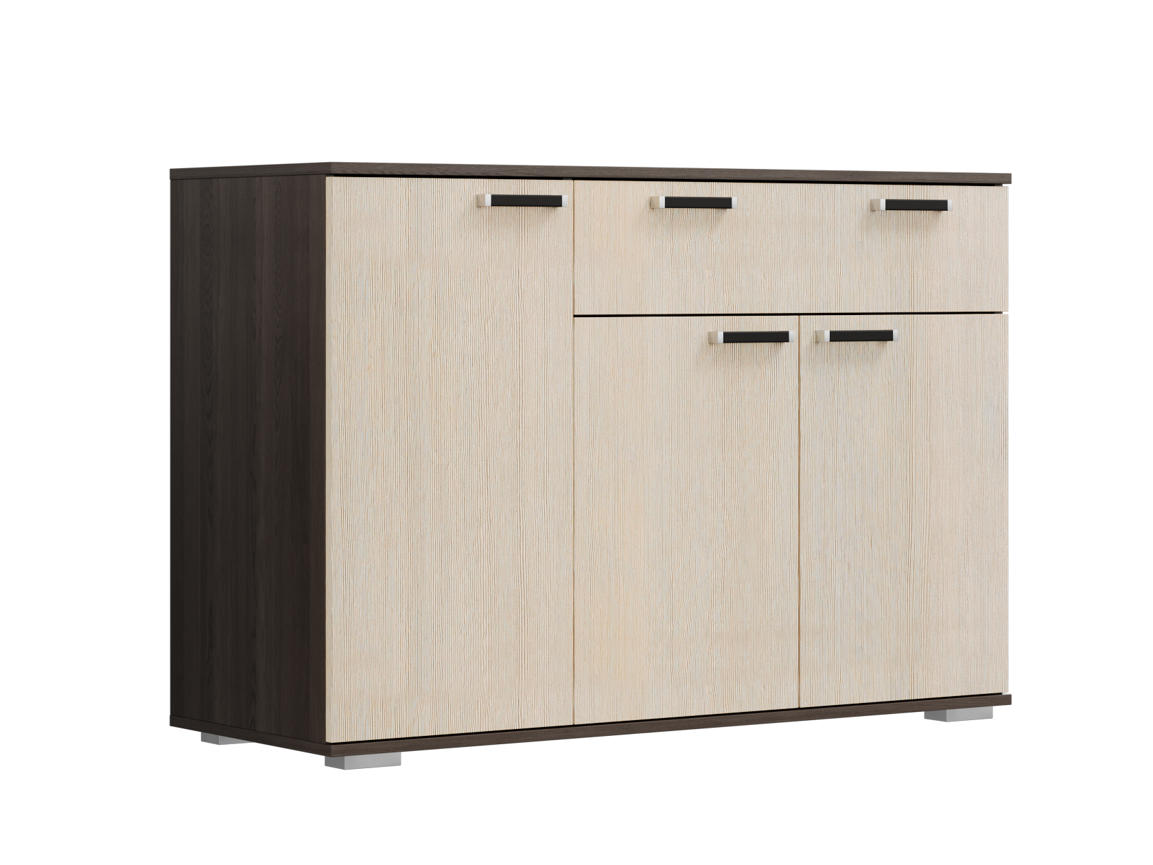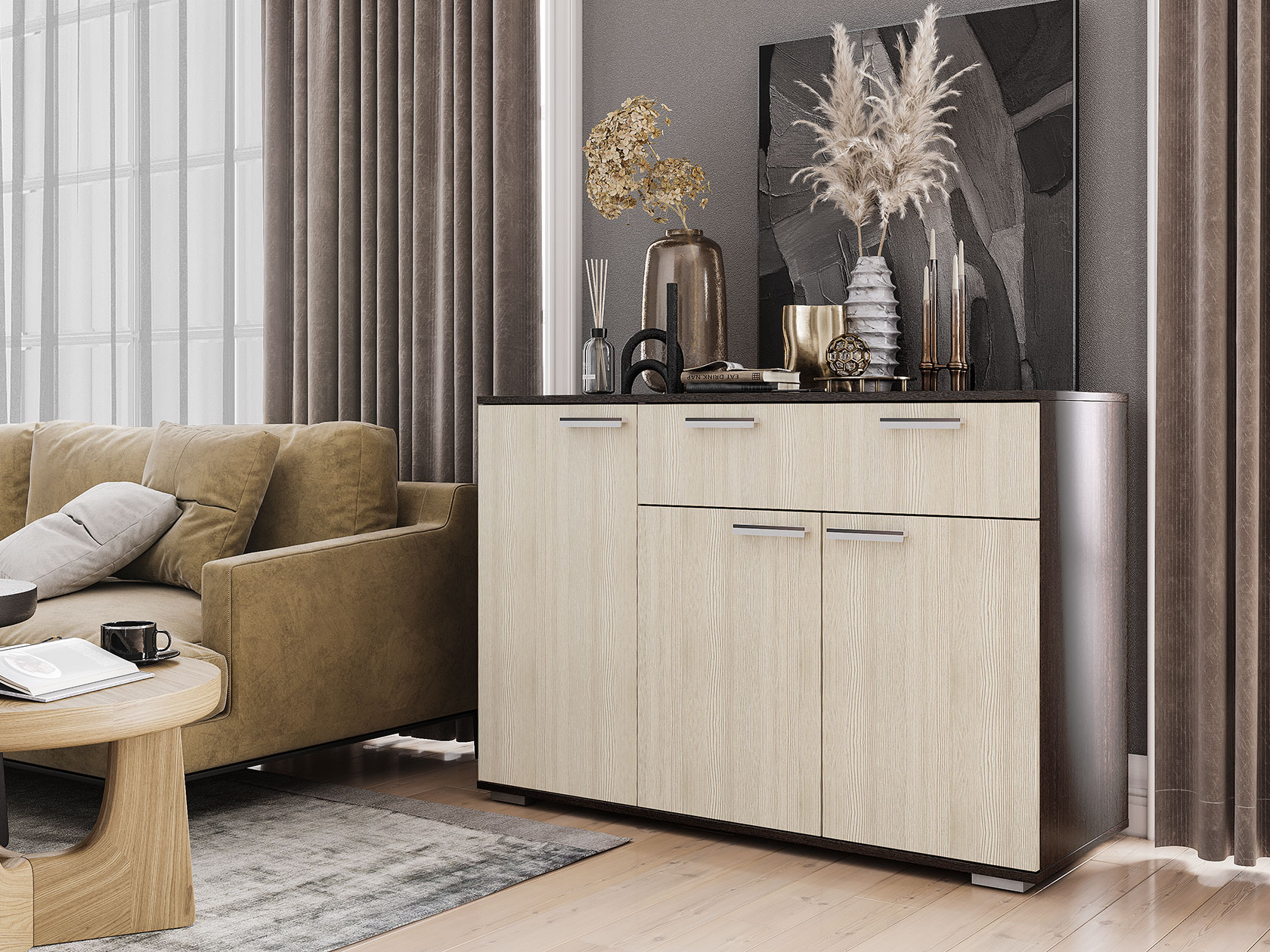 Комод Стандарт 4 расширит систему хранения и украсит современный интерьер. Закрытая система хранения представлена двумя отделениями с полками за распашными дверцами и выдвижным ящиком. Такое наполнение позволяет удобно разместить любые вещи и предметы обихода. Древесные оттенки придают модели привлекательный вид.