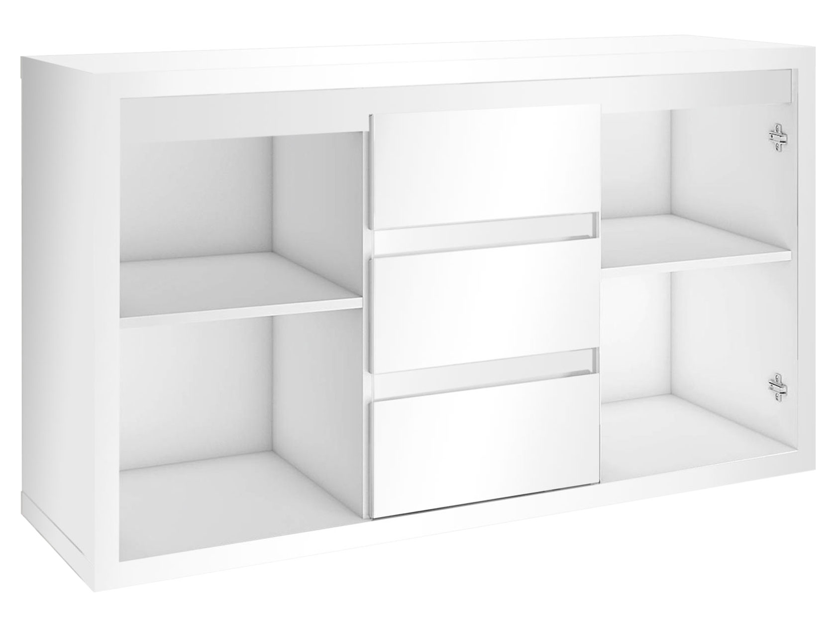 Вместительный комод Норд белоснежного цвета с глянцевыми лакированными фасадами. Благодаря современному дизайну в лучших традициях минимализма модель станет изюминкой любого помещения. Система хранения представлена двумя закрытыми отделениями с распашными дверцами и тремя выдвижными ящиками. В комоде удобно хранить одежду, белье, игрушки и нужные мелочи.