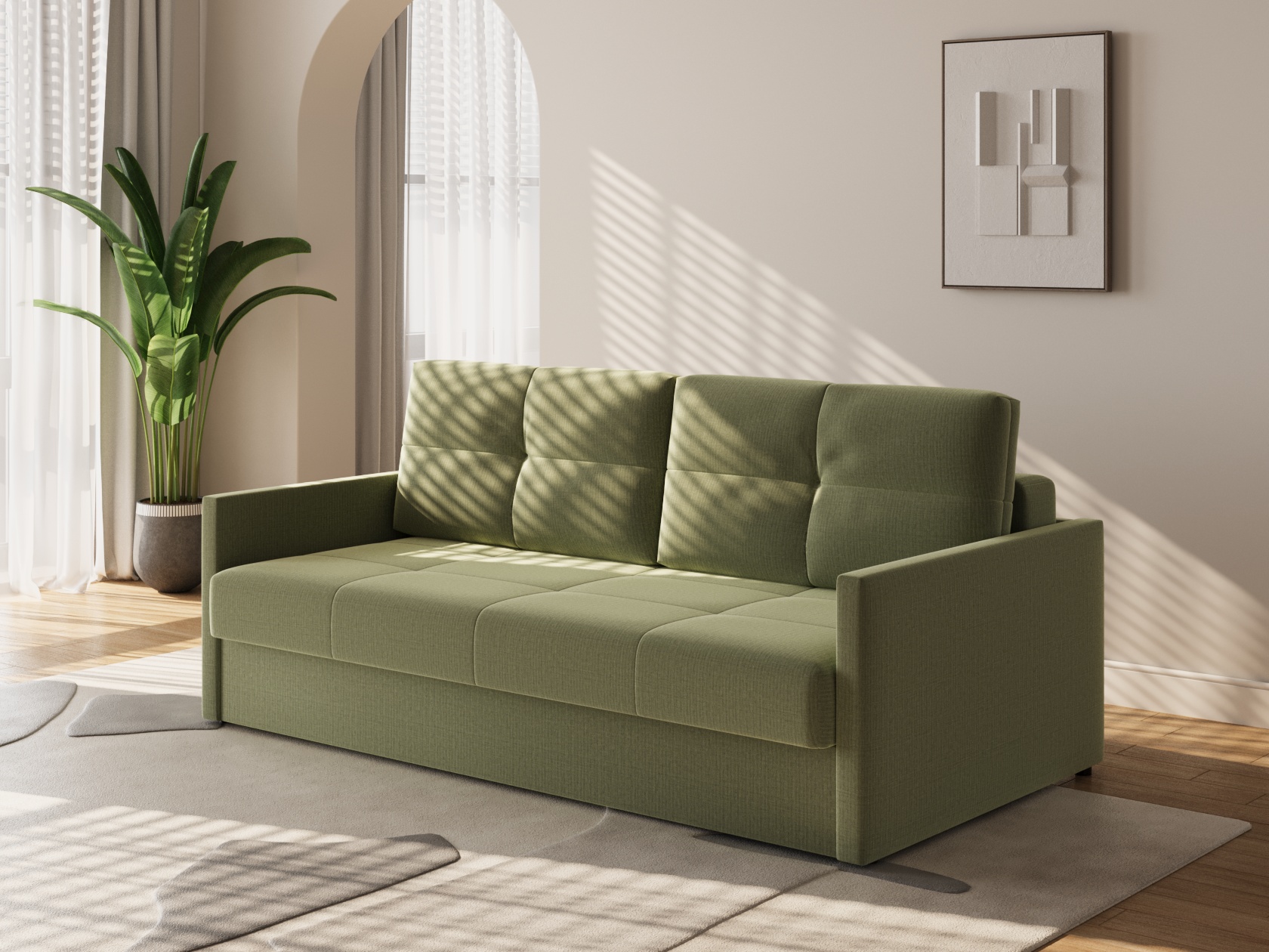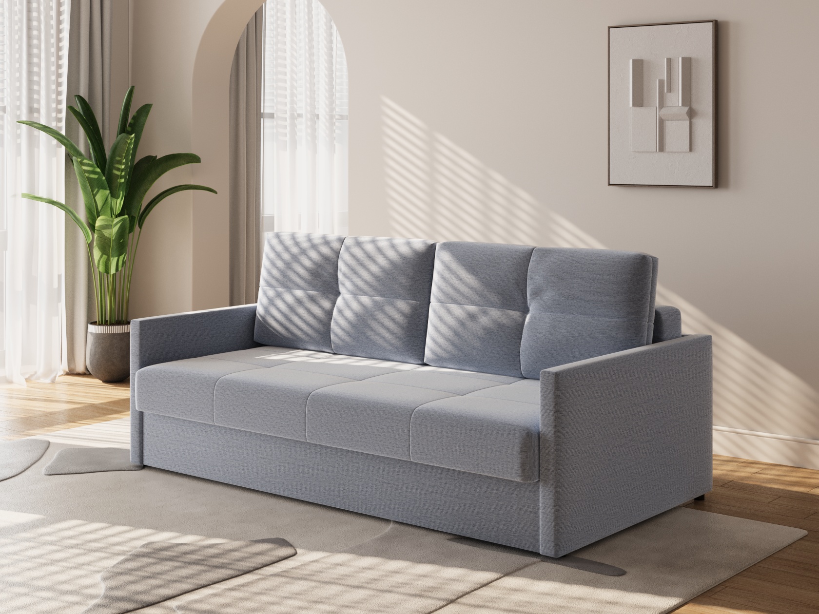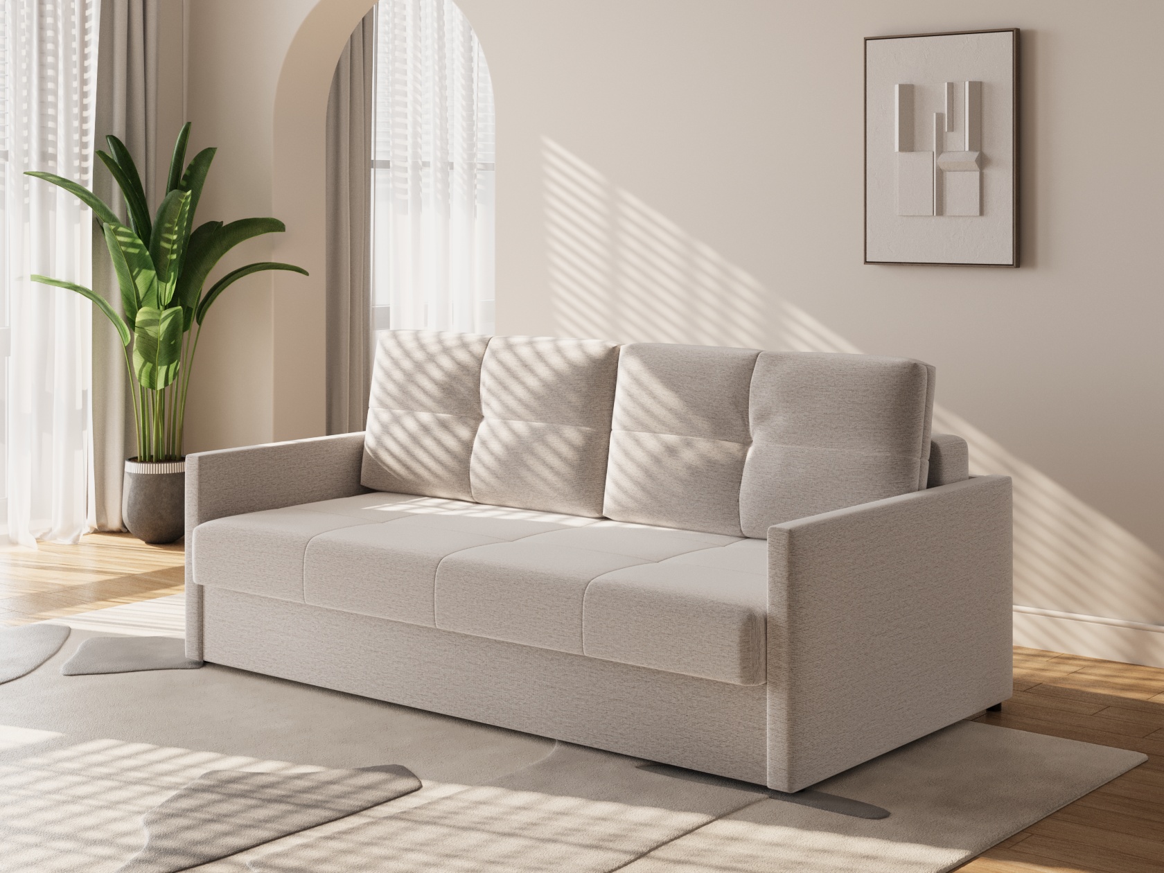 Прямой диван Ливерпуль по достоинству оценят любители минималистичного дизайна и комфорта. Уникальная система синхронизации позволяет с легкостью разложить диван, потянув за сиденье с любого удобного края. В результате образуется ровное спальное место. Для постельных принадлежностей предусмотрен вместительный бельевой короб. Съемные чехлы всех элементов дивана облегчают уход за изделием и позволяют при необходимости быстро сменить дизайн или цветовое решение модели.
