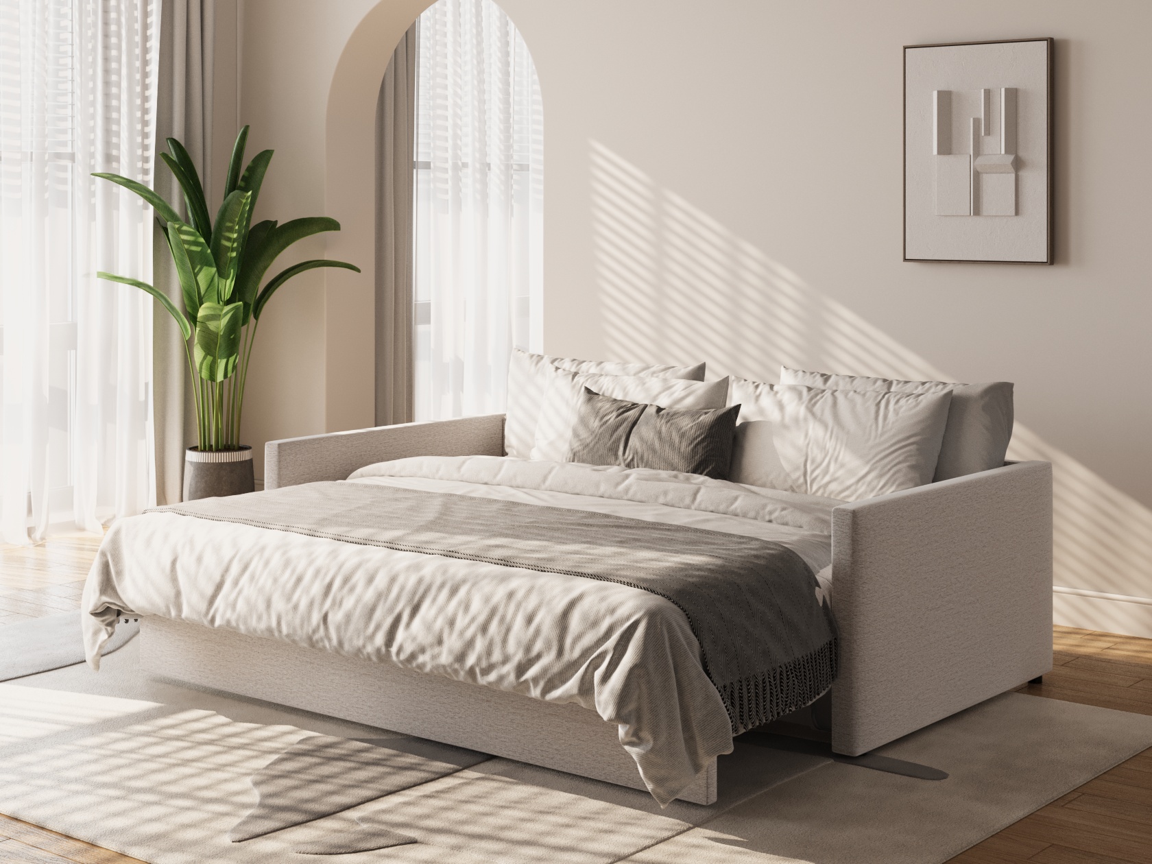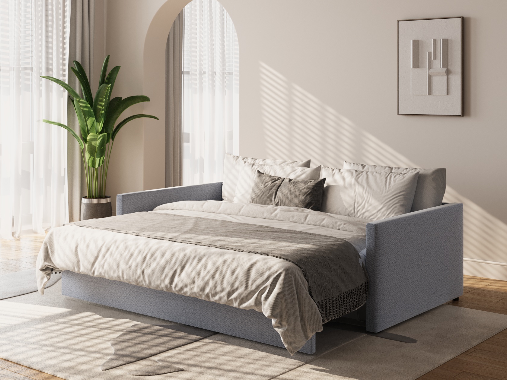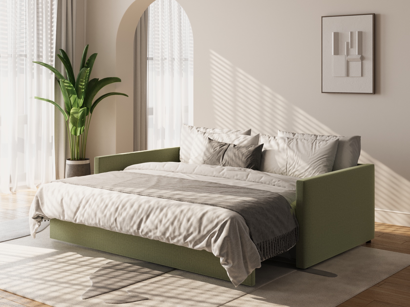 Прямой диван Ливерпуль по достоинству оценят любители минималистичного дизайна и комфорта. Уникальная система синхронизации позволяет с легкостью разложить диван, потянув за сиденье с любого удобного края. В результате образуется ровное спальное место. Для постельных принадлежностей предусмотрен вместительный бельевой короб. Съемные чехлы всех элементов дивана облегчают уход за изделием и позволяют при необходимости быстро сменить дизайн или цветовое решение модели.